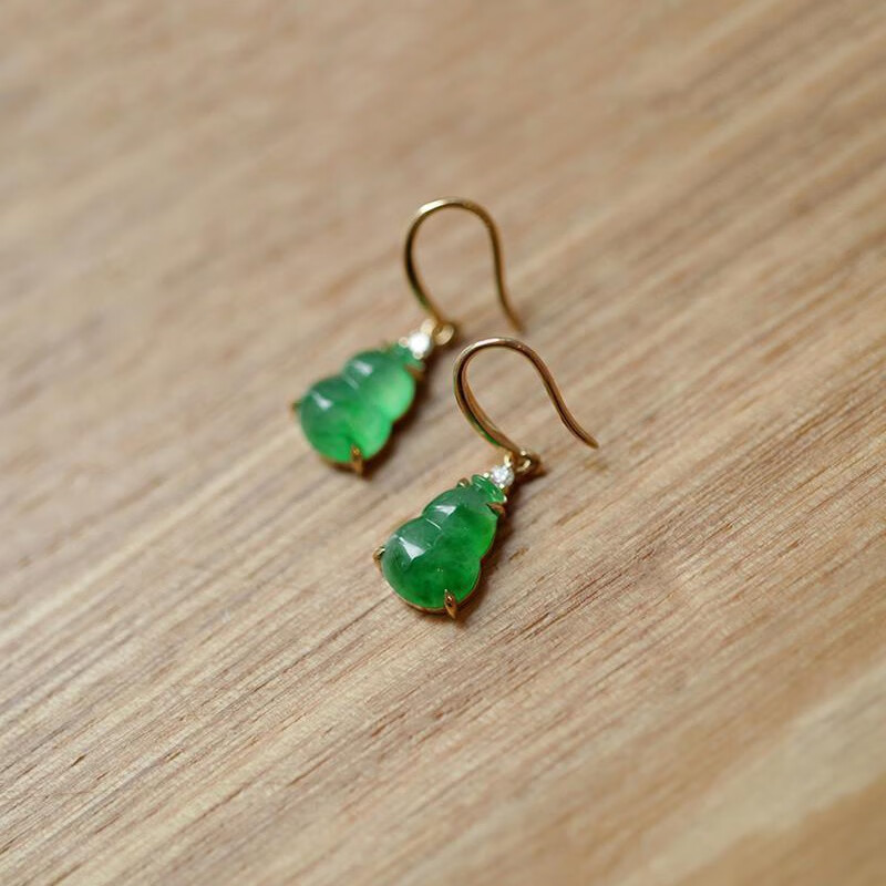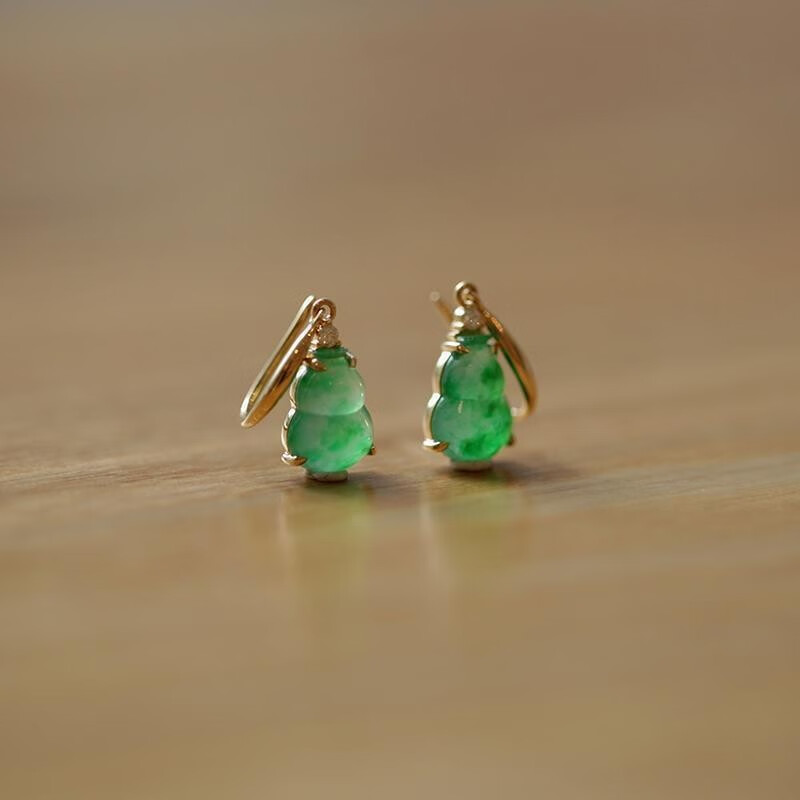 QUAMER spring is gloomy, national style green earrings, green ice penetrating chalcedony gourd earrings, 925 silver