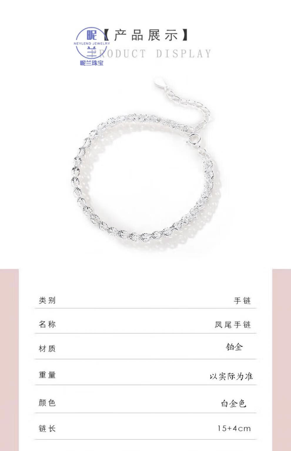 Nilan pt950 platinum bracelet PT950 phoenix tail women's niche design sparkling internet celebrity platinum platinum phoenix tail bracelet