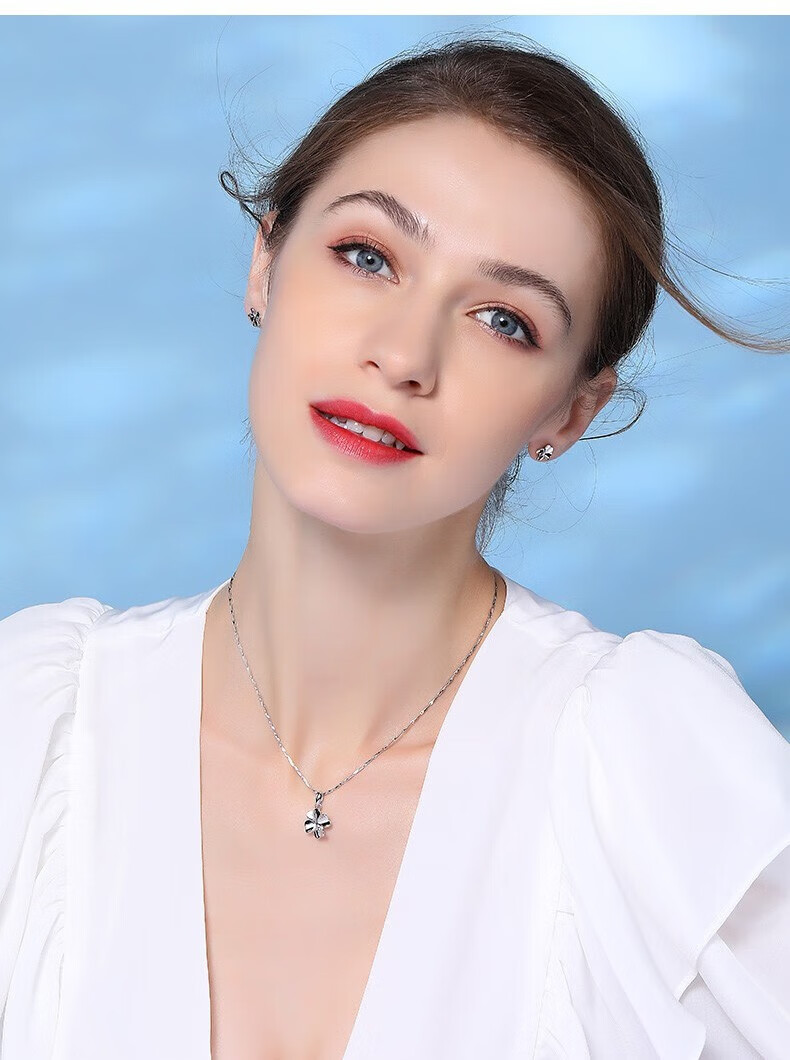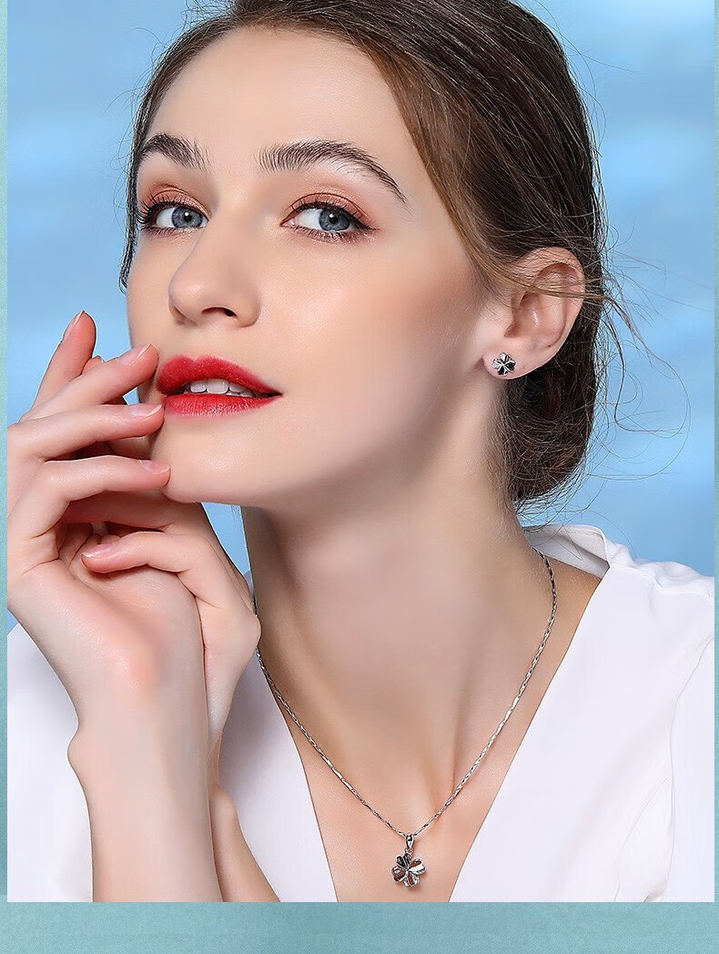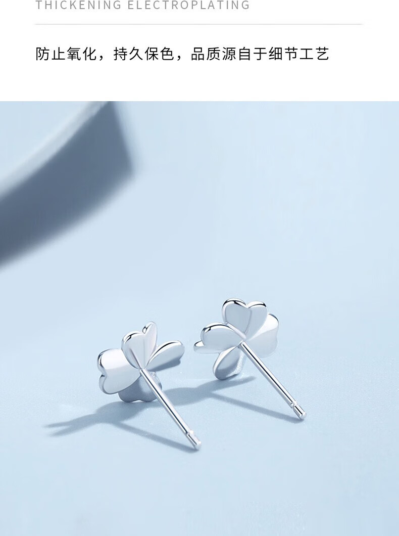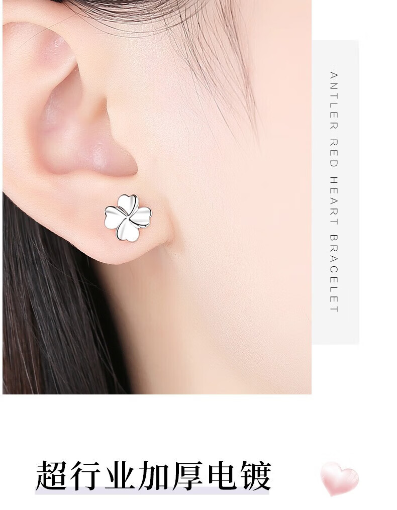 Chinese Gold Lucky Four-leaf Clover Platinum Earrings Women's Platinum Earrings Gift for Girlfriend and Wife's Birthday Jingsuda-Platinum Classic Four-leaf Clover Earrings
