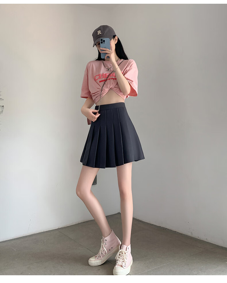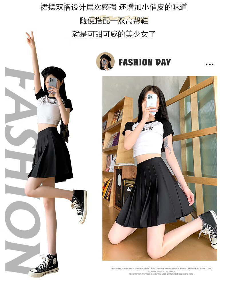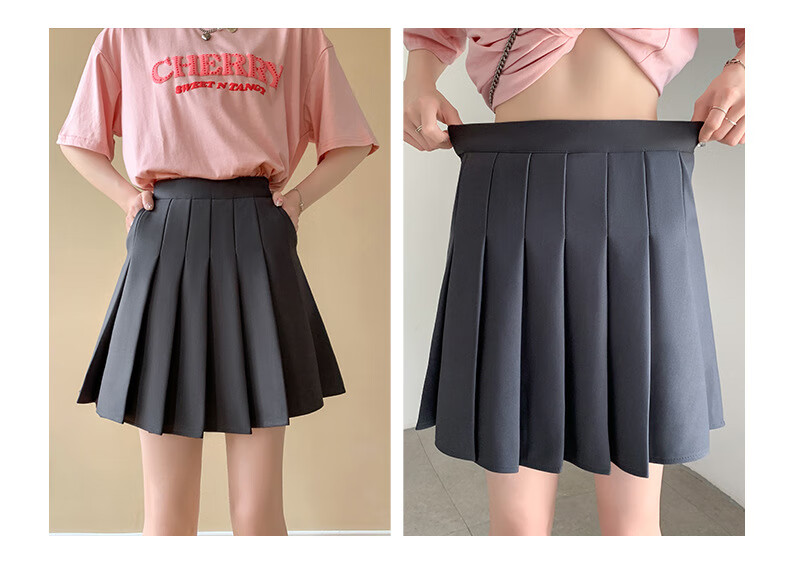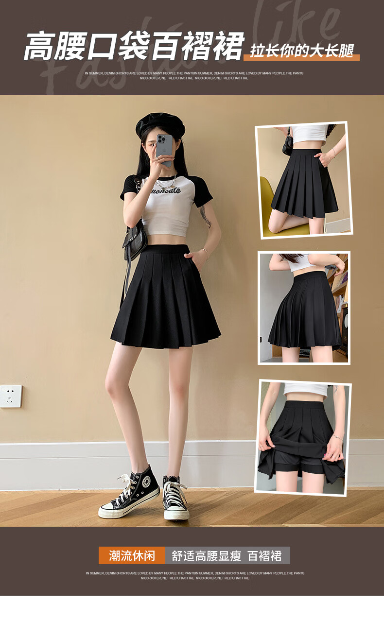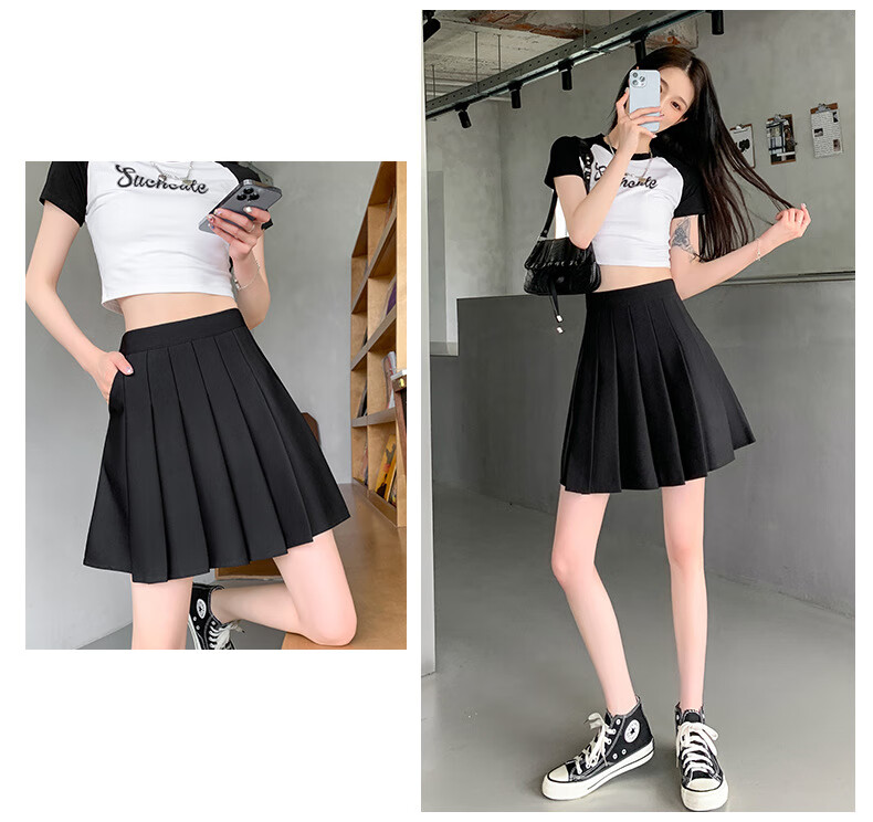 XINBUCKS Pocket Pleated Skirt Women's Short Skirt High Waist Slim A-Line Skirt Elastic Waist Skirt Spring Summer Autumn Student JK Skirt Black (Pocket Style) M Recommendation 85-105Jin Jin equals 0.5 kg