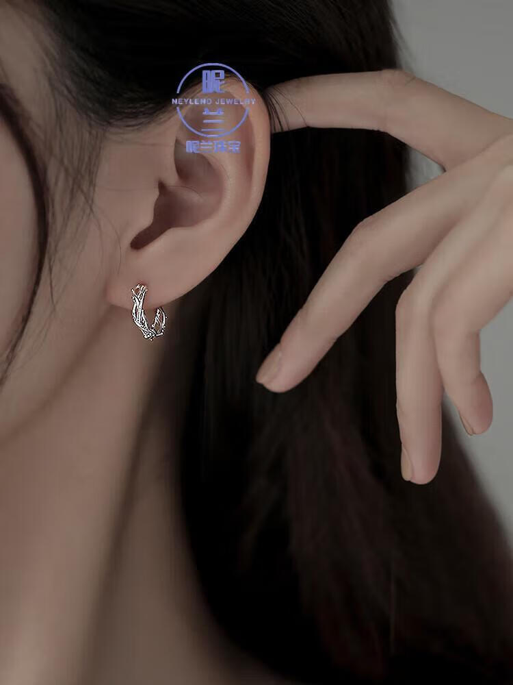 Nilan platinum earrings PT950 unique circle female sense light luxury niche design platinum earrings 2024 thorn earrings