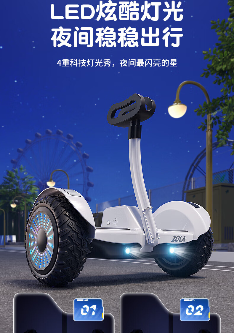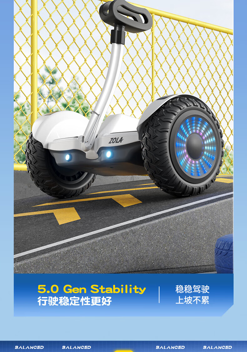 ZOLA electric balance car for children 16-12 years old, adult boys and girls somatosensory car for transportation and self-balancing, available for 7-10 years old K9 flagship white 54V three controls + APP + glare wheel