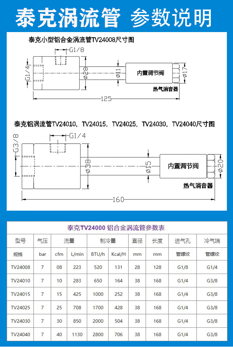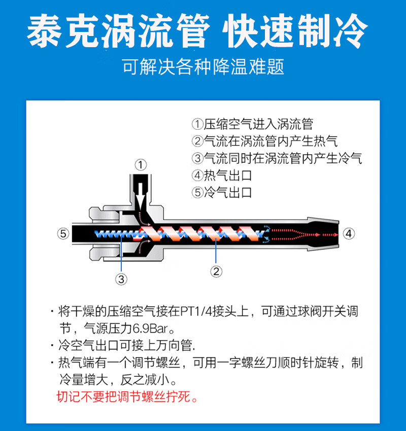 Vortex tube aluminum alloy vortex refrigerator vortex cooler compressed air cooler TV24008+ connector double-head universal tube