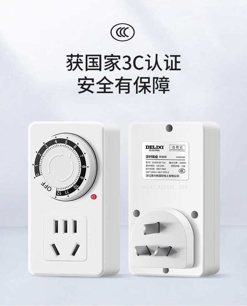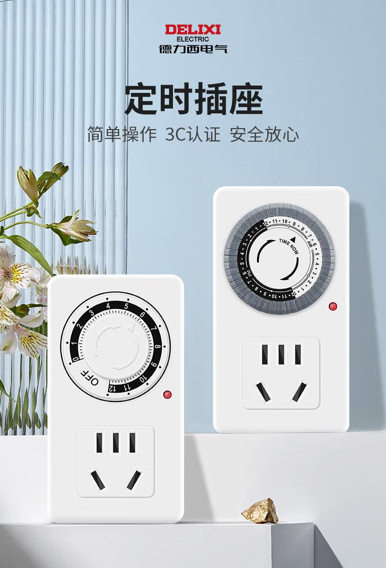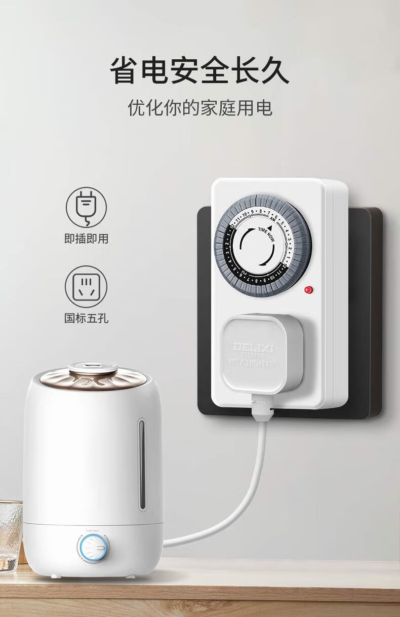 Delixi timer automatic power-off socket anti-overcharge switch timing electric vehicle charging protection plug-in board 12-hour timed power-off standard version simple and easy to use suitable for the elderly