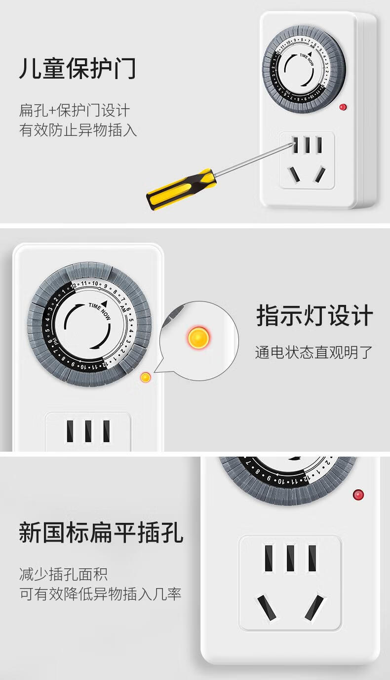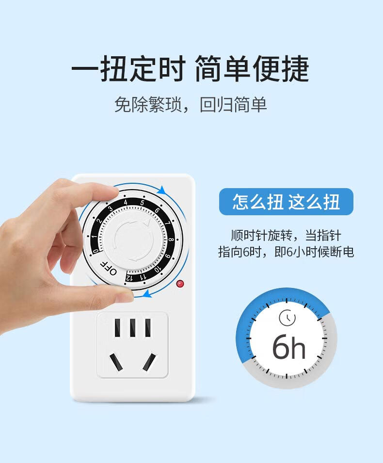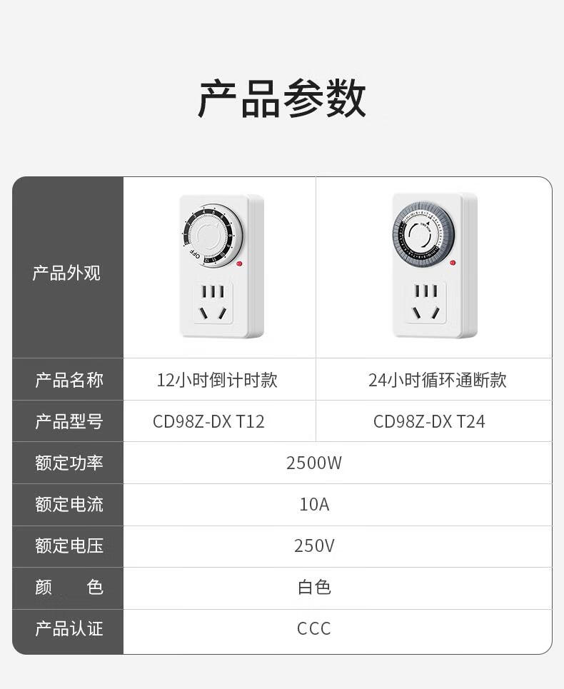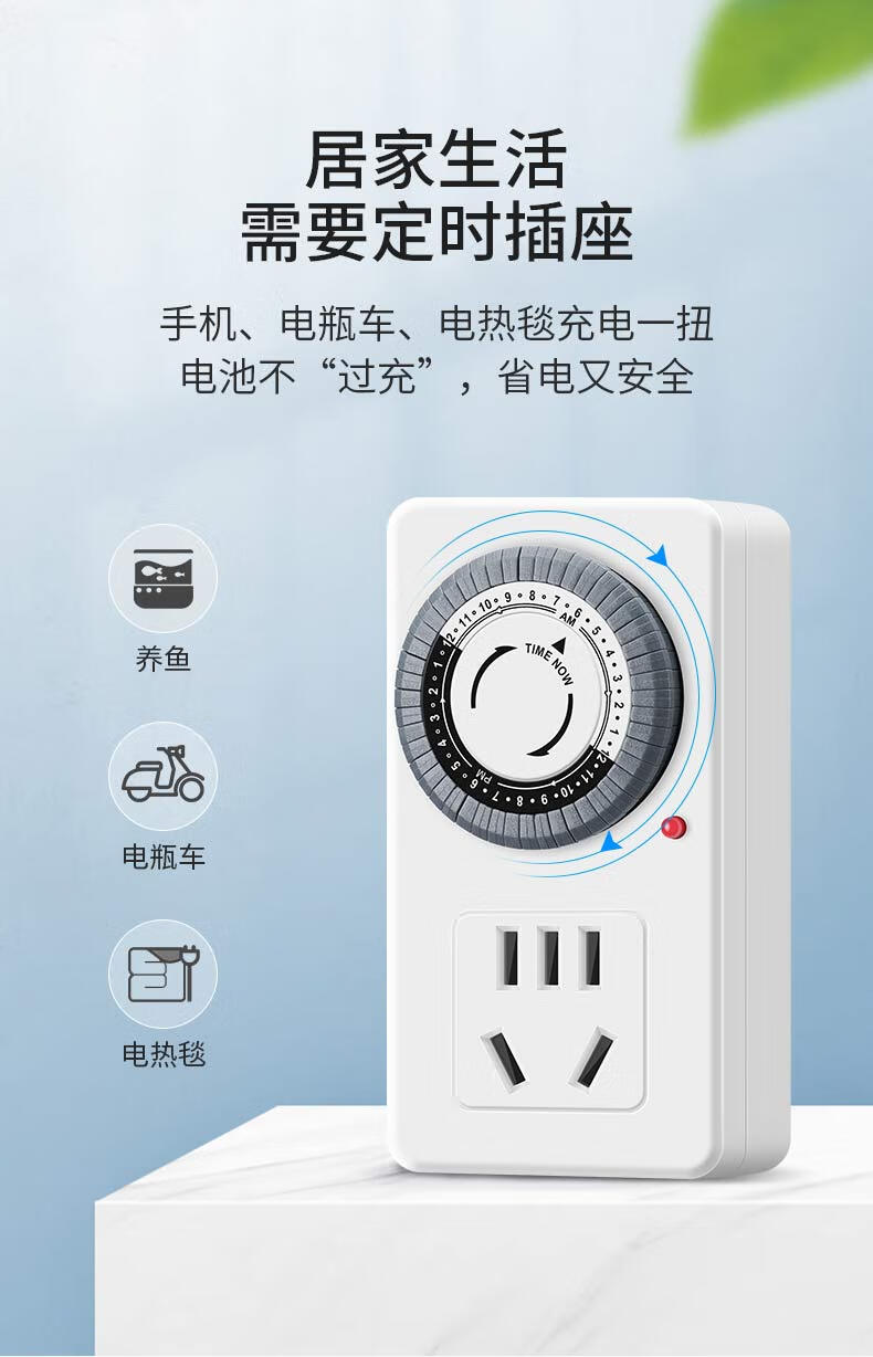 Delixi timer automatic power-off socket anti-overcharge switch timing electric vehicle charging protection plug-in board 12-hour timed power-off standard version simple and easy to use suitable for the elderly