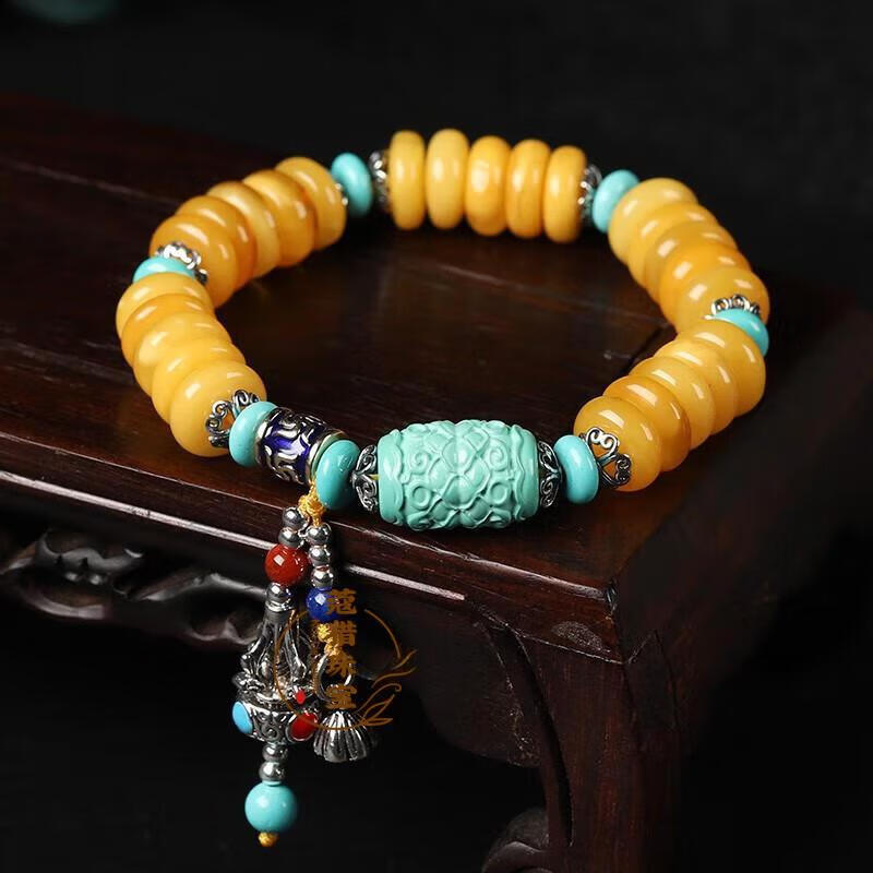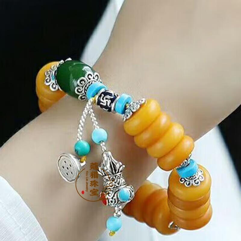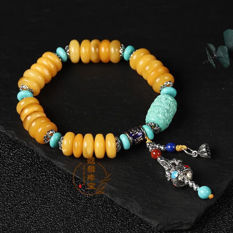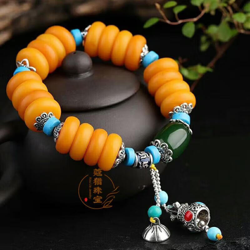 Fat Donglai's same old Russian beeswax bracelet for men and women, 925 silver bracelet, best friend couple's turquoise transfer bead diameter 12mm transfer bead bracelet