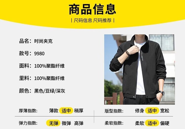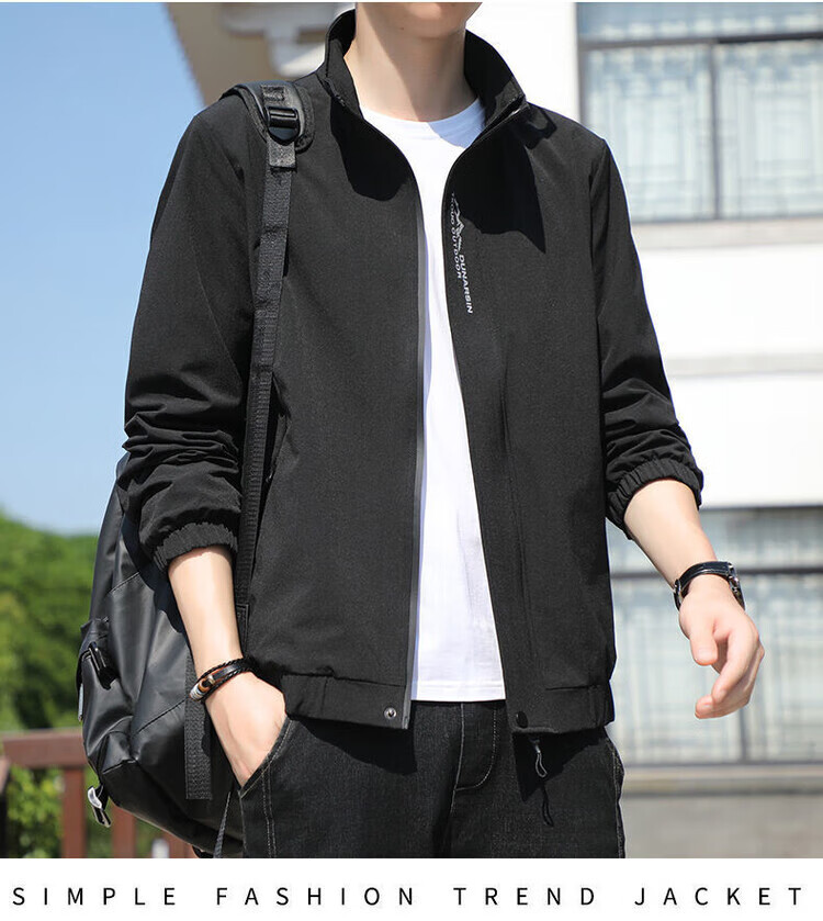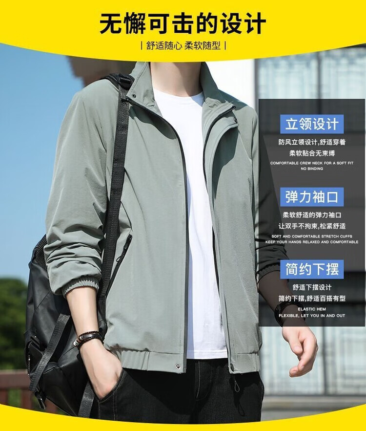 Donkey Fox Autumn Thin Men's Jacket Stand Collar 2024 New Tops Spring and Autumn Casual Pilot Jackets D9980 Dark Gray 3XL 145-160Jin Jin is equal to 0.5 kg