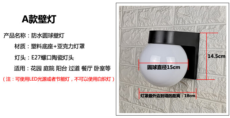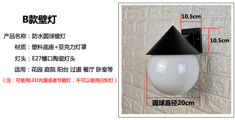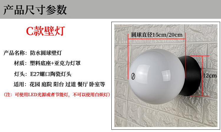 Wehuo Waterproof and Sunproof LED Ball Wall Lamp Simple Modern Balcony Aisle Staircase Exterior Wall Creative Spherical Outdoor Wall Lamp D Type 20cm Diameter White Light 5W