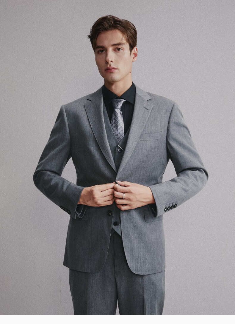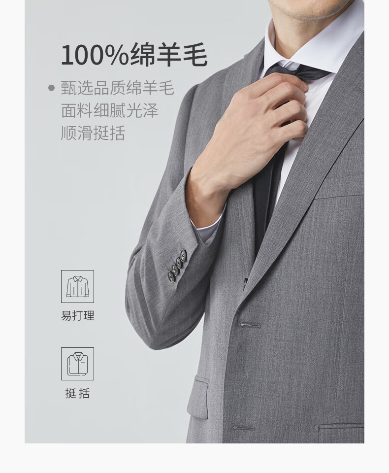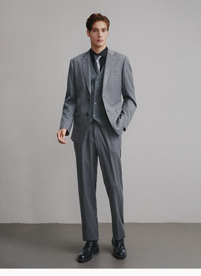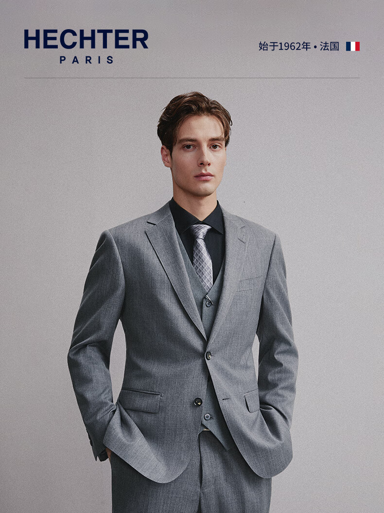 HECHTER suit men's 100% wool suit spring and autumn business formal wear comfortable and easy to care for men gray (trousers) 50