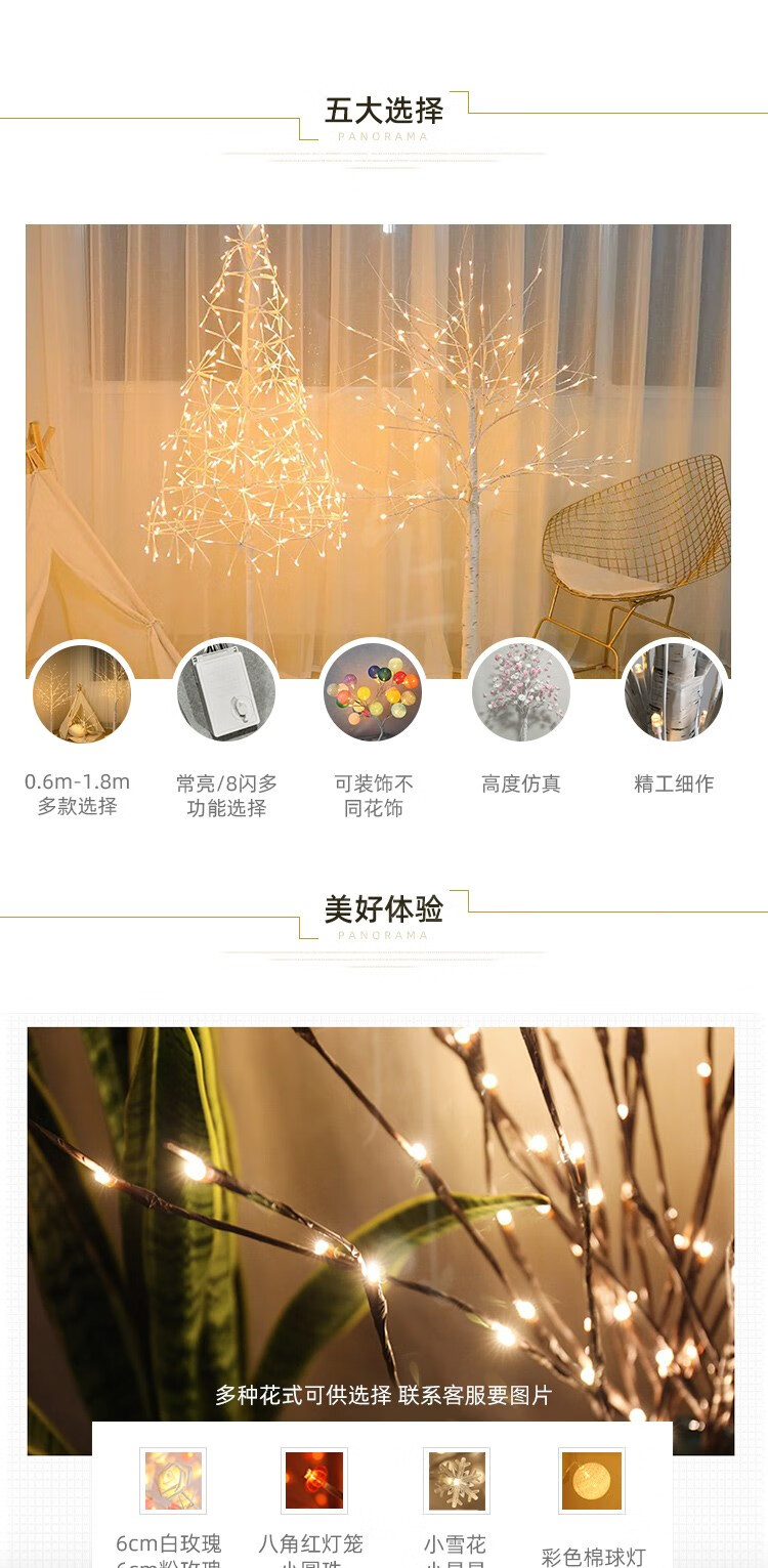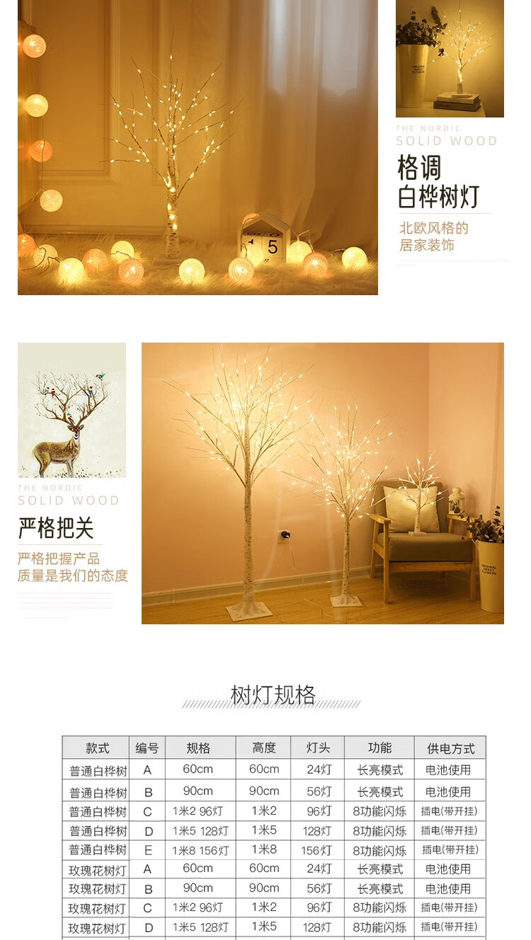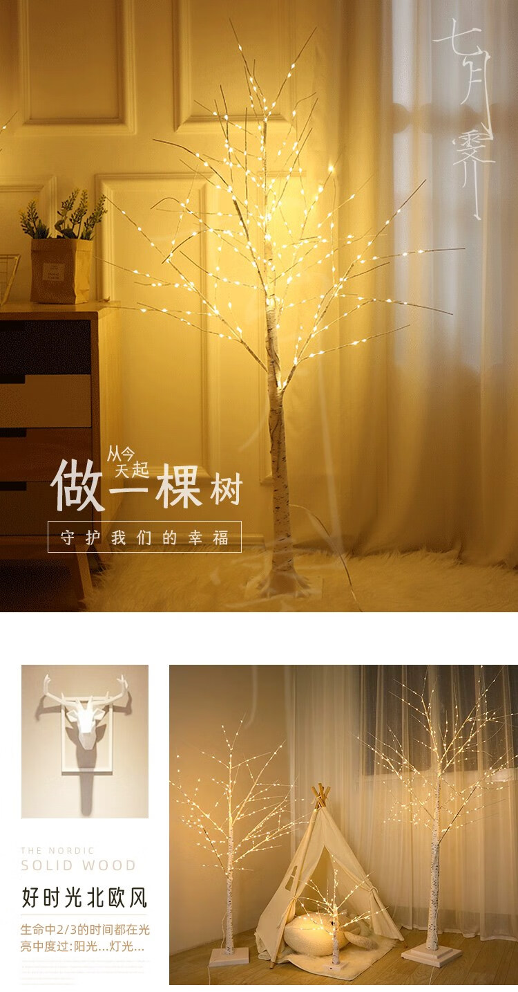Rongyu LED light-emitting tree firefly lamp room forest decoration Nordic style romantic arrangement white birch tree lamp floor-standing 1.8 meters 1.5 meters white birch tree lamp (96 USB always on Nordic style decorative tree
