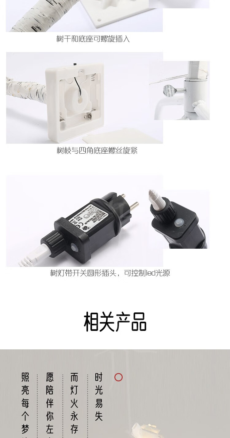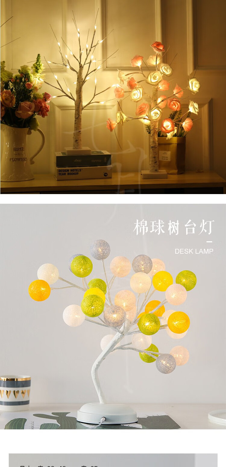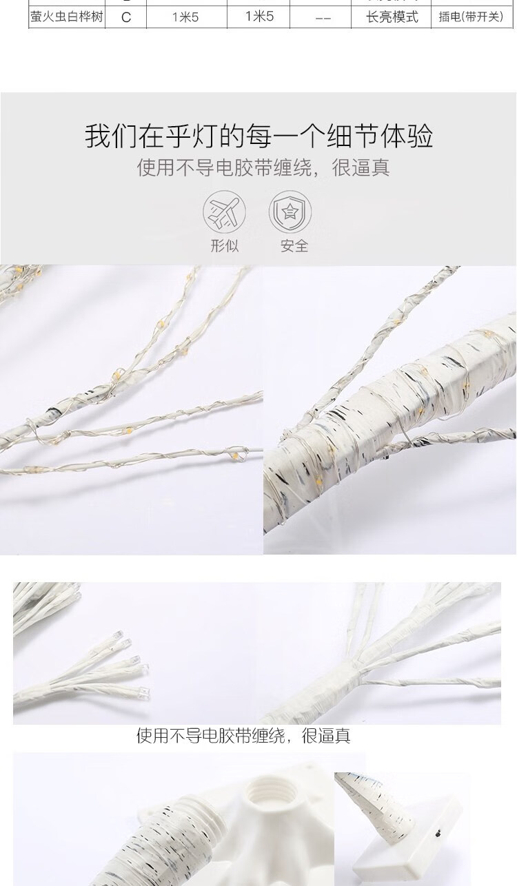 Rongyu LED light-emitting tree firefly lamp room forest decoration Nordic style romantic arrangement white birch tree lamp floor-standing 1.8 meters 1.5 meters white birch tree lamp (96 USB always on Nordic style decorative tree