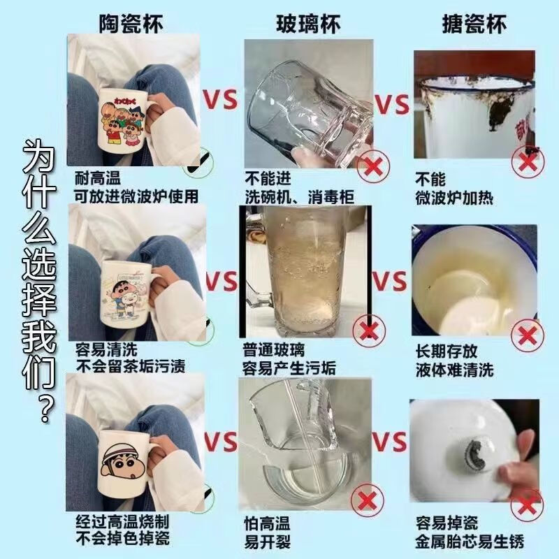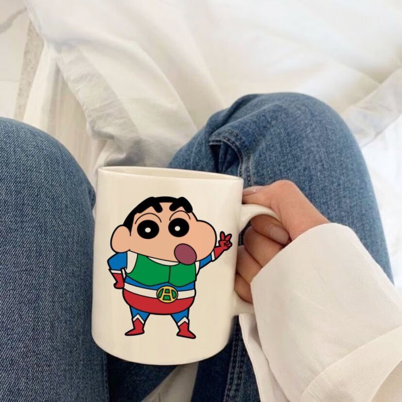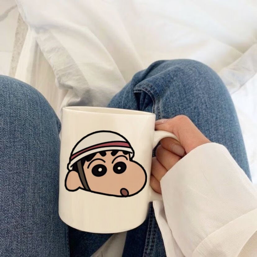Meikejie ins high-looking Japanese crayon Xiaoxin ceramic cup with lid and spoon for home new drinking couple Mark water cup Xiaoxin Xiaobai mug single cup + lid and spoon