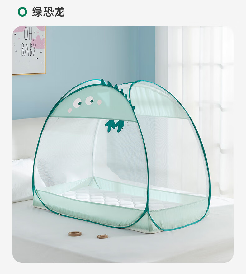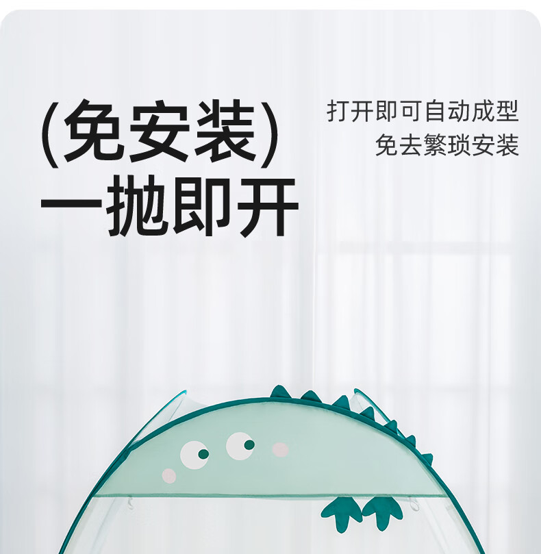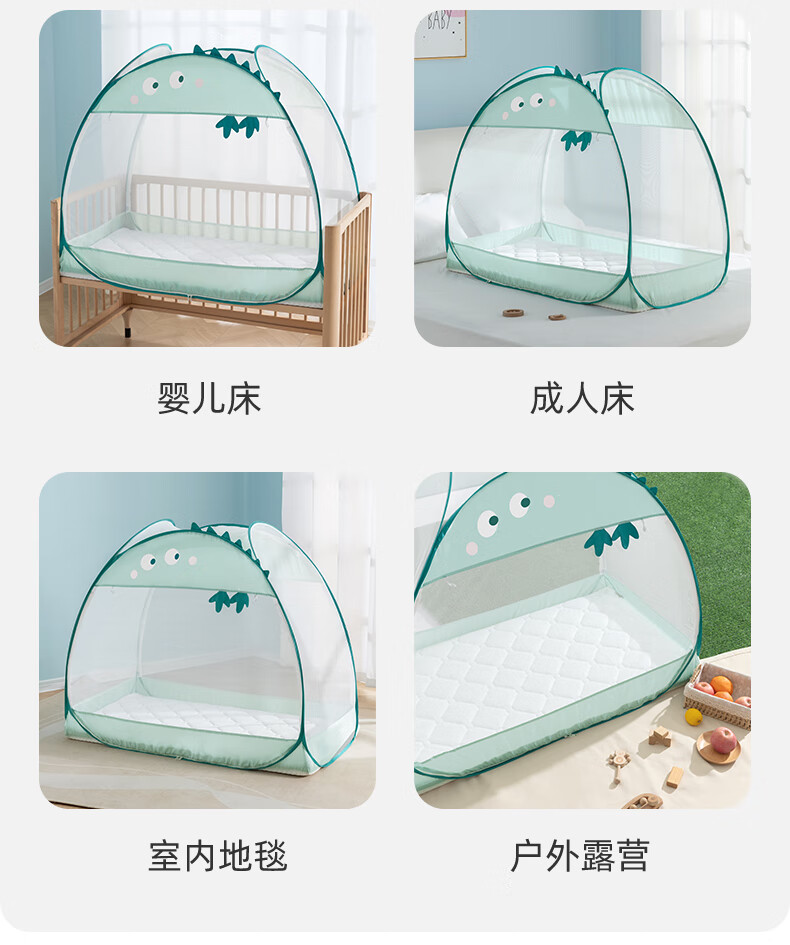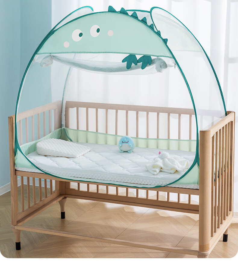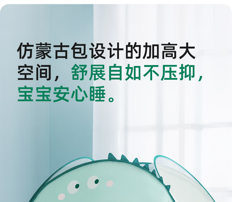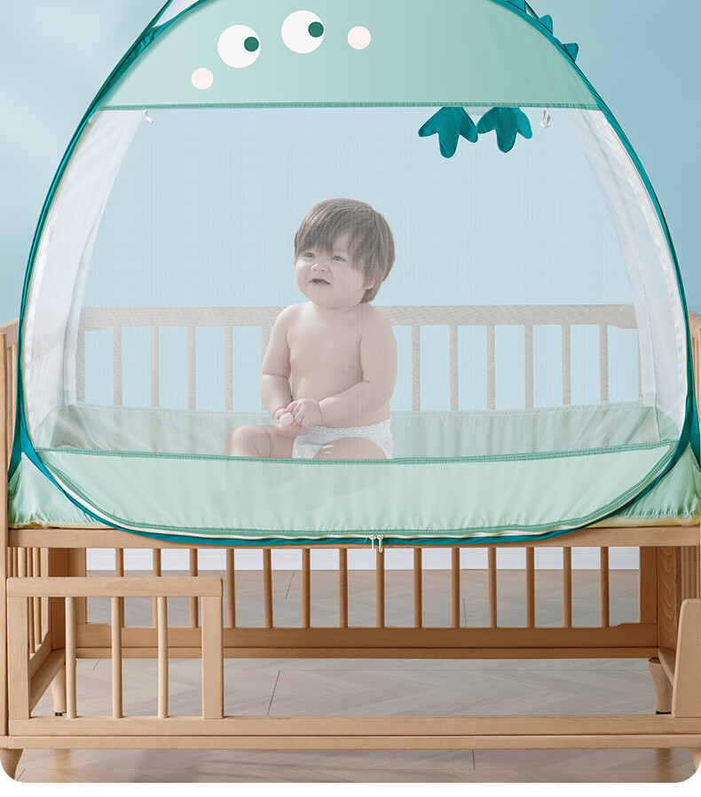 贝肽斯婴儿床蚊帐罩防摔新生儿宝宝专用免安装可折叠全罩式通用蒙古包 绿恐龙【长104*宽58*高100】