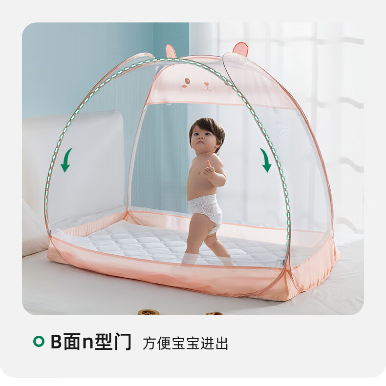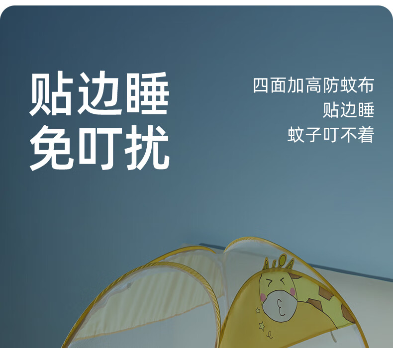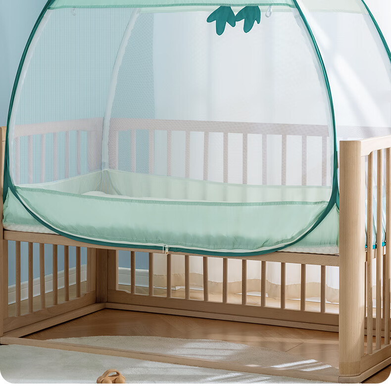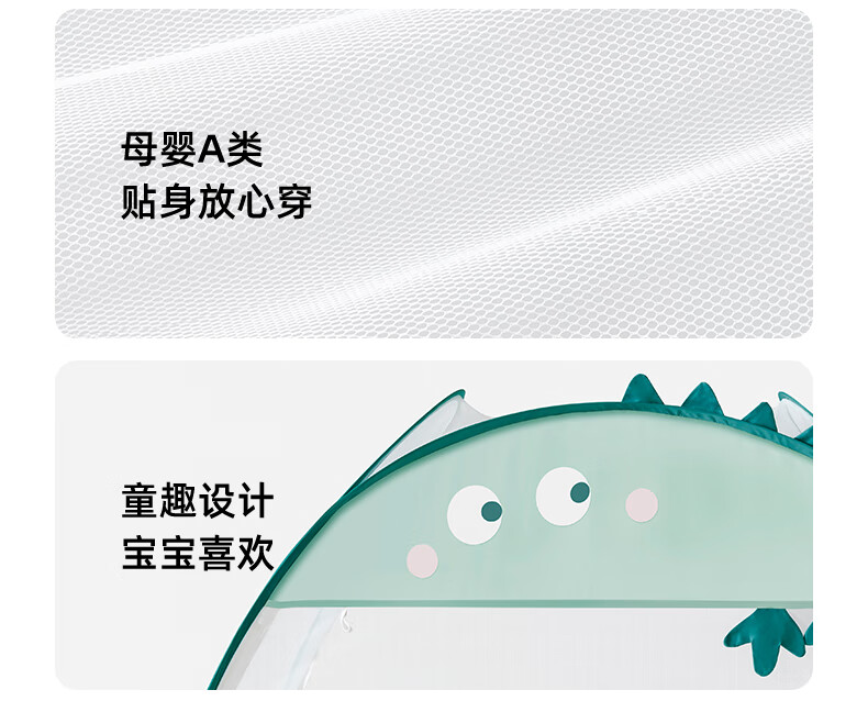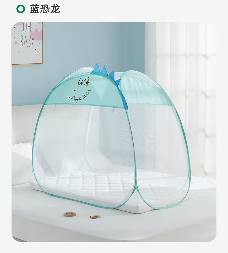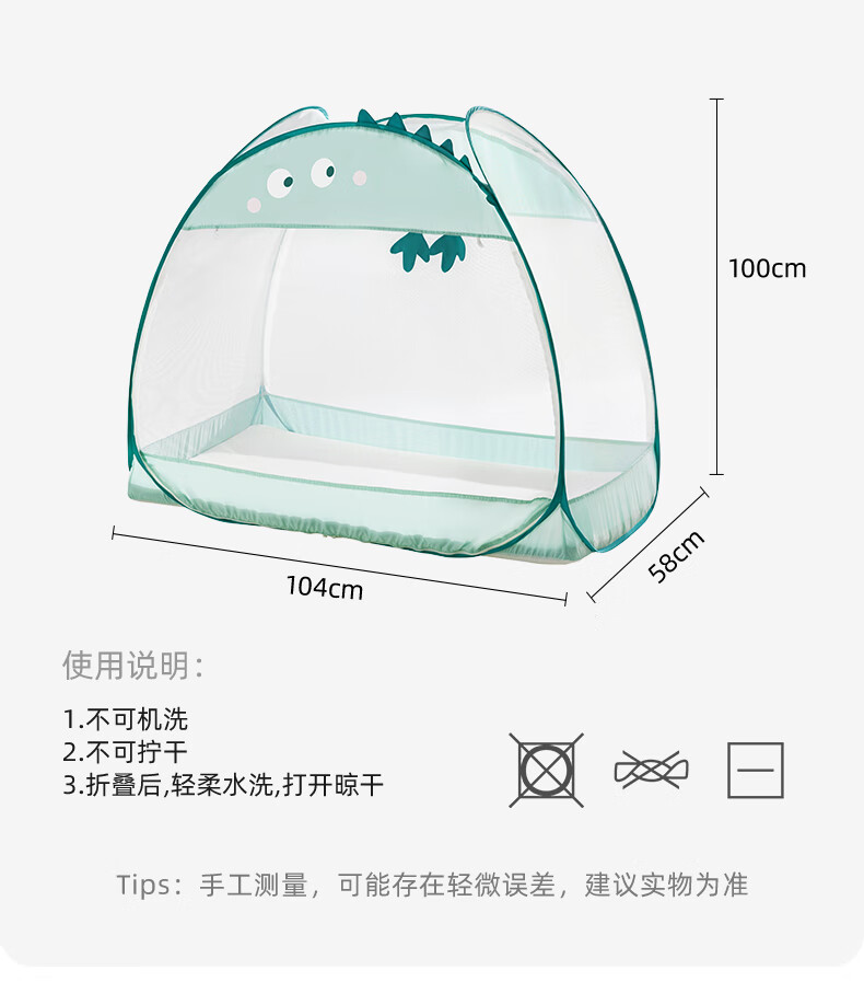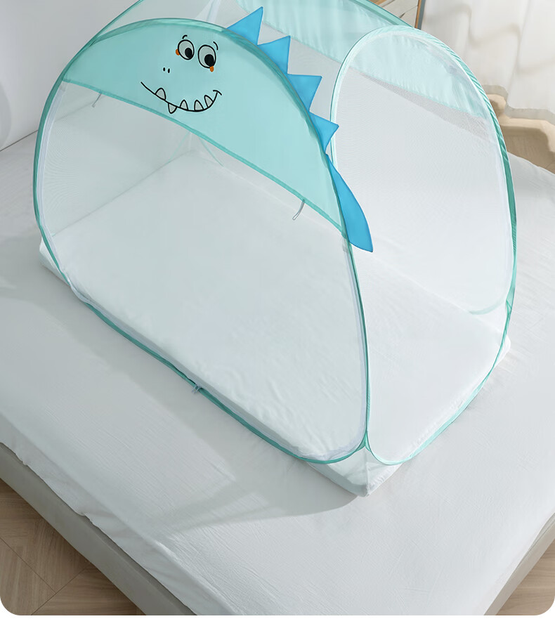 贝肽斯婴儿床蚊帐罩防摔新生儿宝宝专用免安装可折叠全罩式通用蒙古包 绿恐龙【长104*宽58*高100】