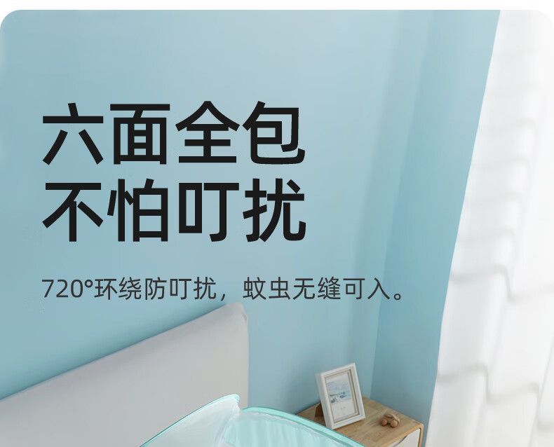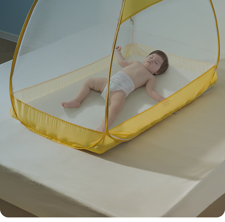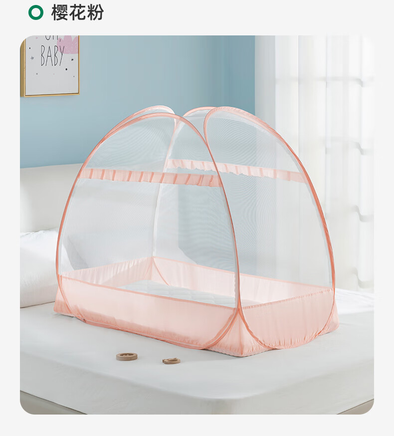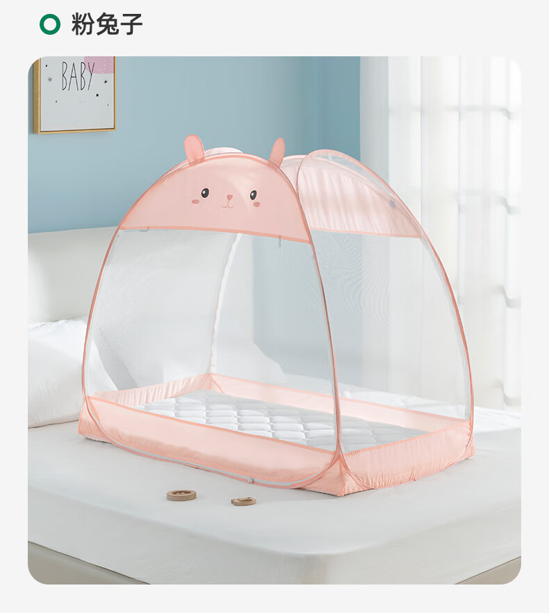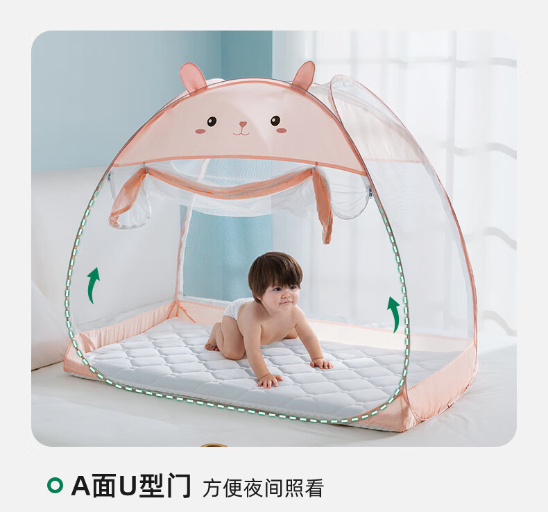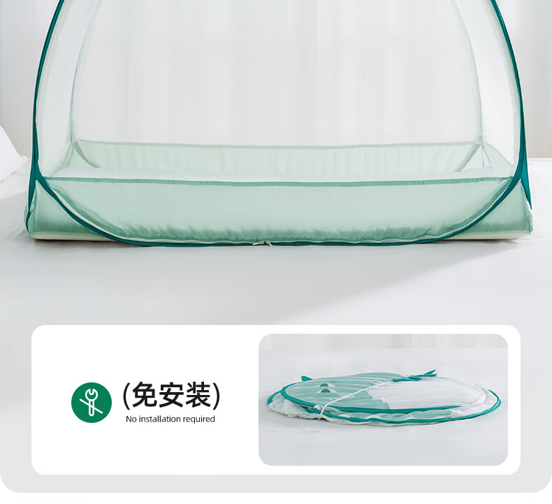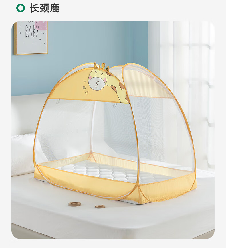 贝肽斯婴儿床蚊帐罩防摔新生儿宝宝专用免安装可折叠全罩式通用蒙古包 绿恐龙【长104*宽58*高100】