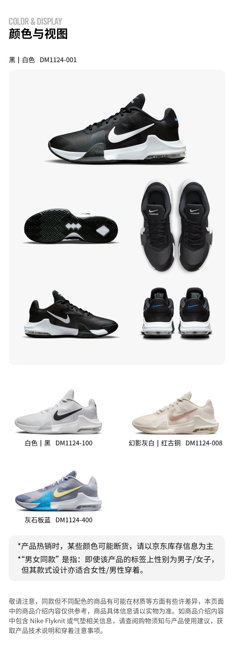 Nike Men's Breathable Lightweight Basketball Shoes Winter Practical Anti-torsion Cushioning Sports Mesh NIKE DM1124 100 White/Black/Platinum (DM1124-100) 42.5