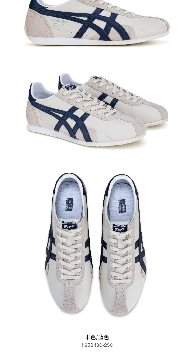 Onitsuka Tiger men's and women's unisex shoes retro comfortable sports casual shoes men's RUNSPARK beige/blue-103 42.5