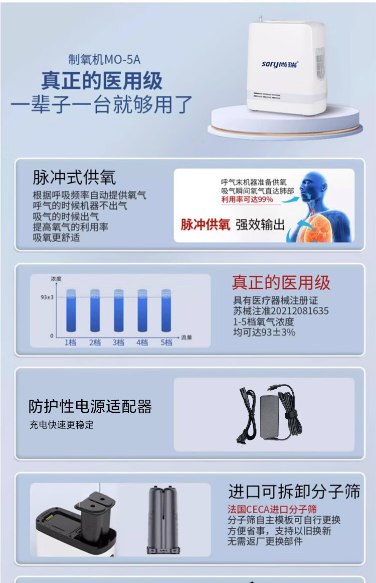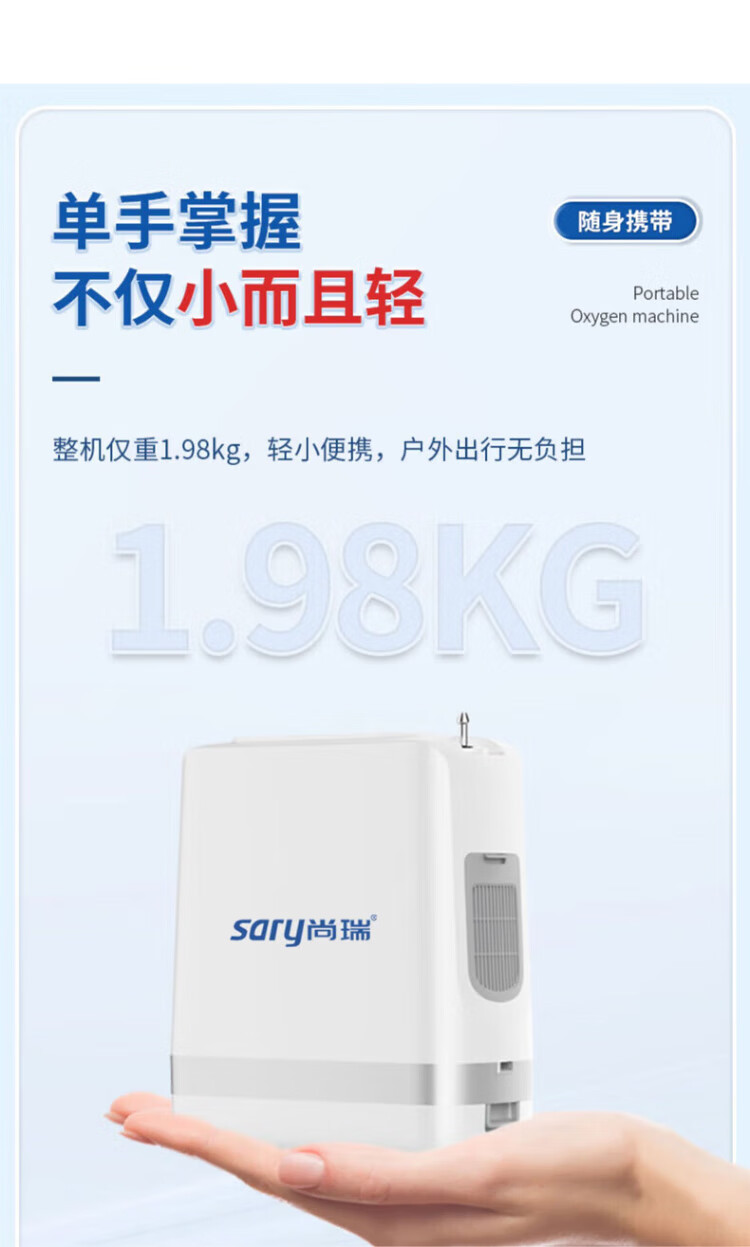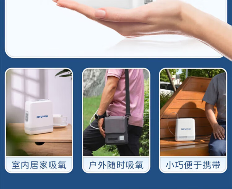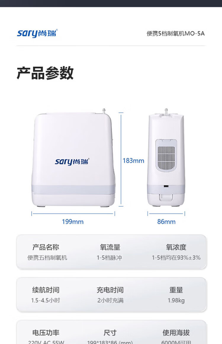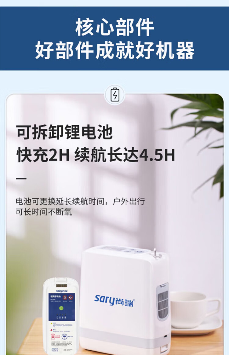 Shangrui Concentrador de oxígeno portátil médico 6 litros Máquina de oxígeno para el hogar para ancianos Inhalador de oxígeno pequeño para exteriores Montado en vehículo Tipo de respiración recargable Médico mejorado 8 litros OCN-7 (2 baterías en total 16 celdas)