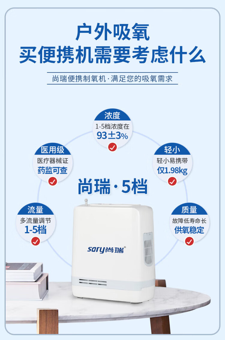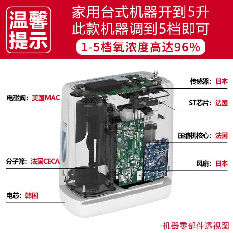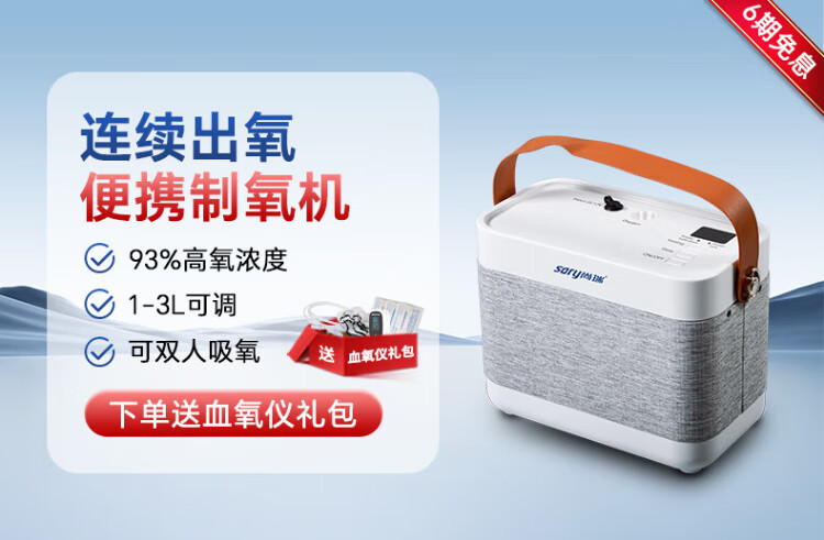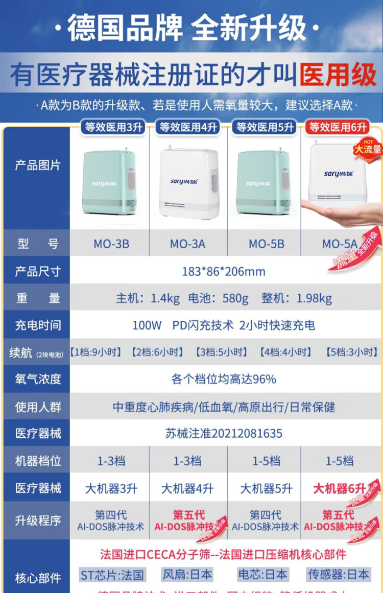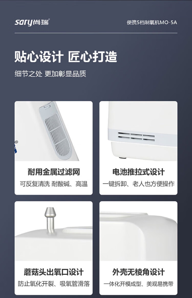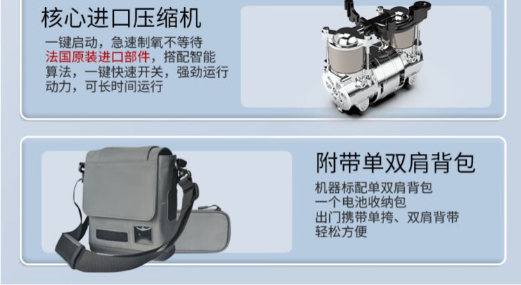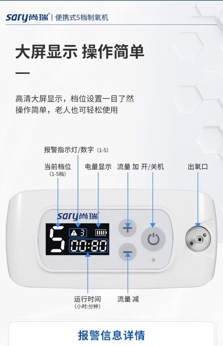 Shangrui Concentrador de oxígeno portátil médico 6 litros Máquina de oxígeno para el hogar para ancianos Inhalador de oxígeno pequeño para exteriores Montado en vehículo Tipo de respiración recargable Médico mejorado 8 litros OCN-7 (2 baterías en total 16 celdas)