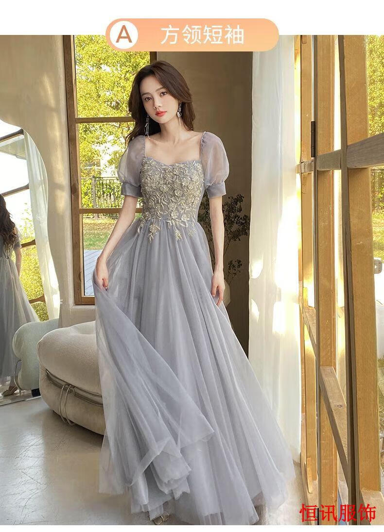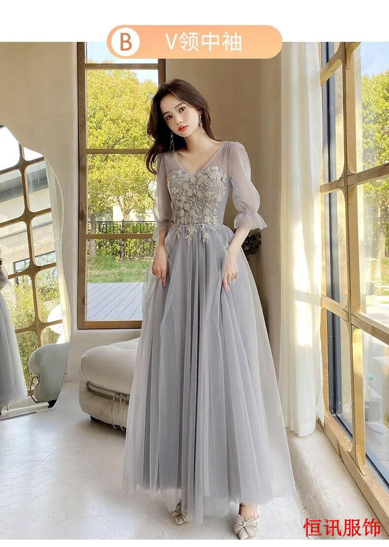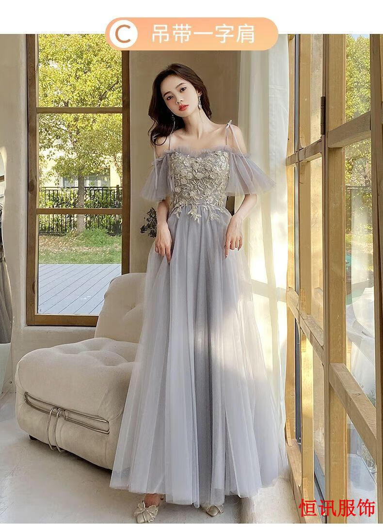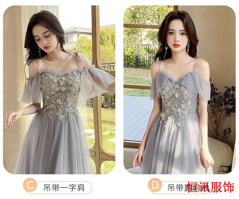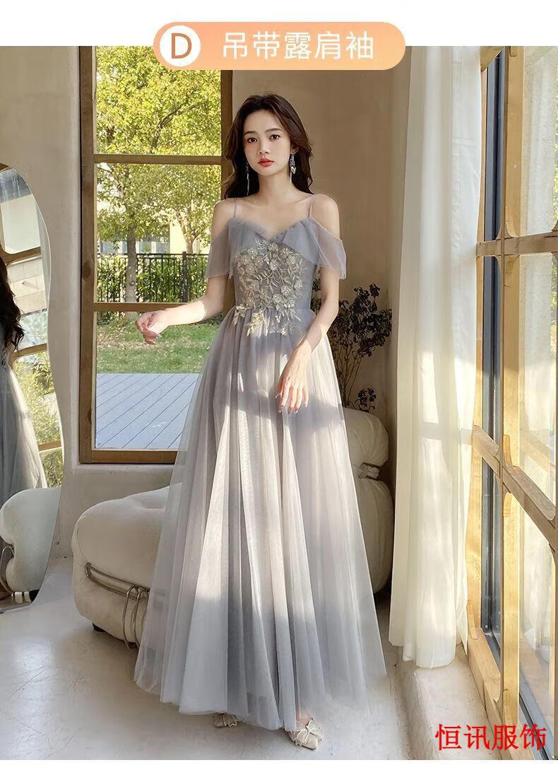 Meifanlang gray bridesmaid dress with fairy temperament new summer best friend sister group dress women can wear at ordinary times 028 gray long section A - adult ceremony dress XL - adult ceremony dress