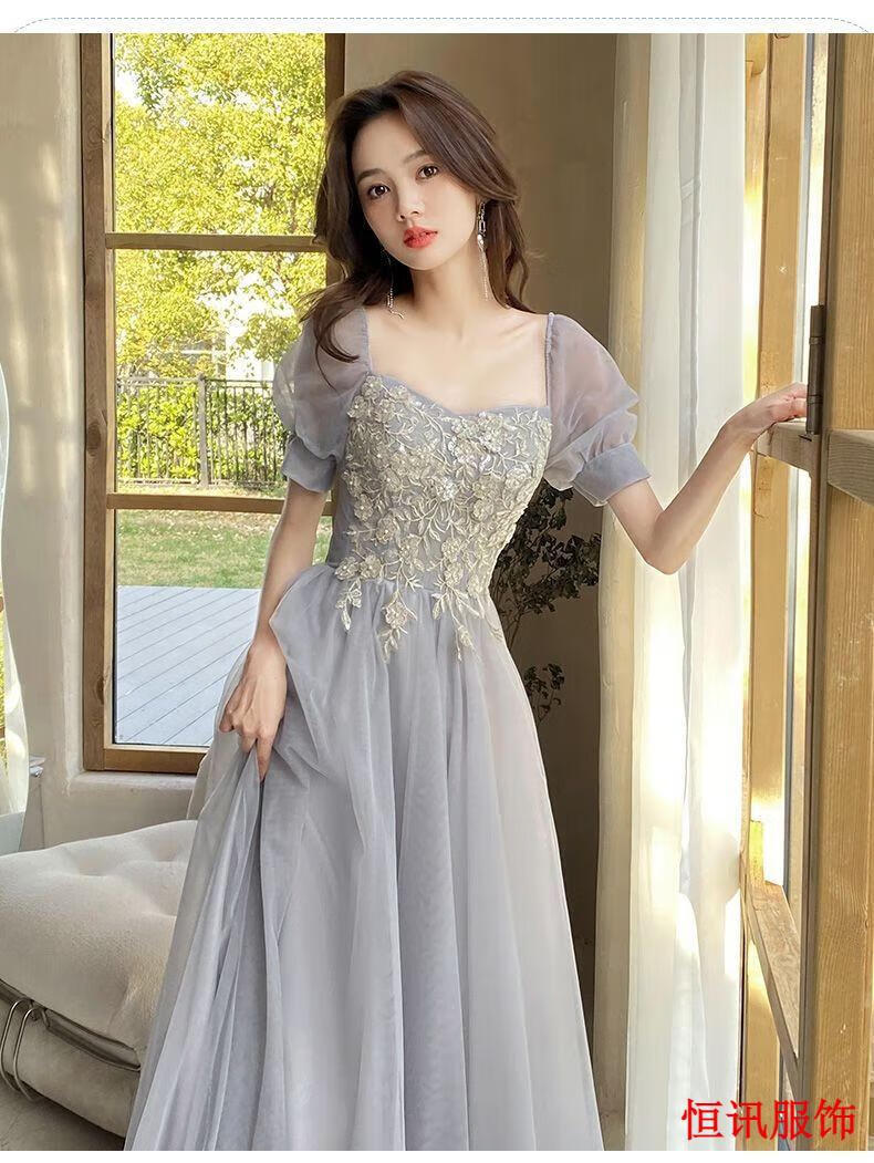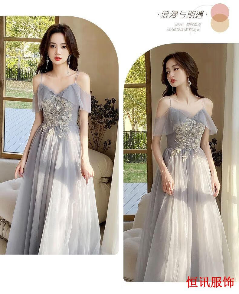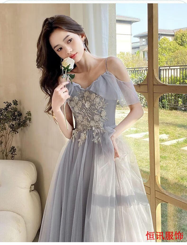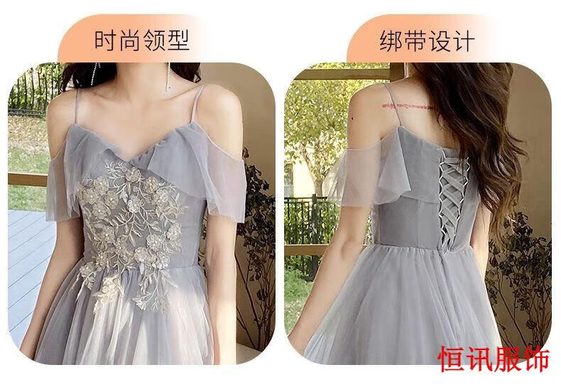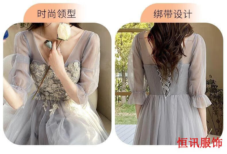Meifanlang gray bridesmaid dress with fairy temperament new summer best friend sister group dress women can wear at ordinary times 028 gray long section A - adult ceremony dress XL - adult ceremony dress