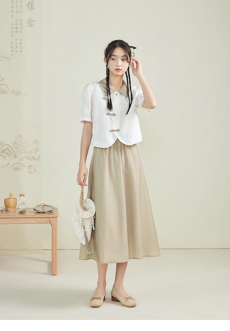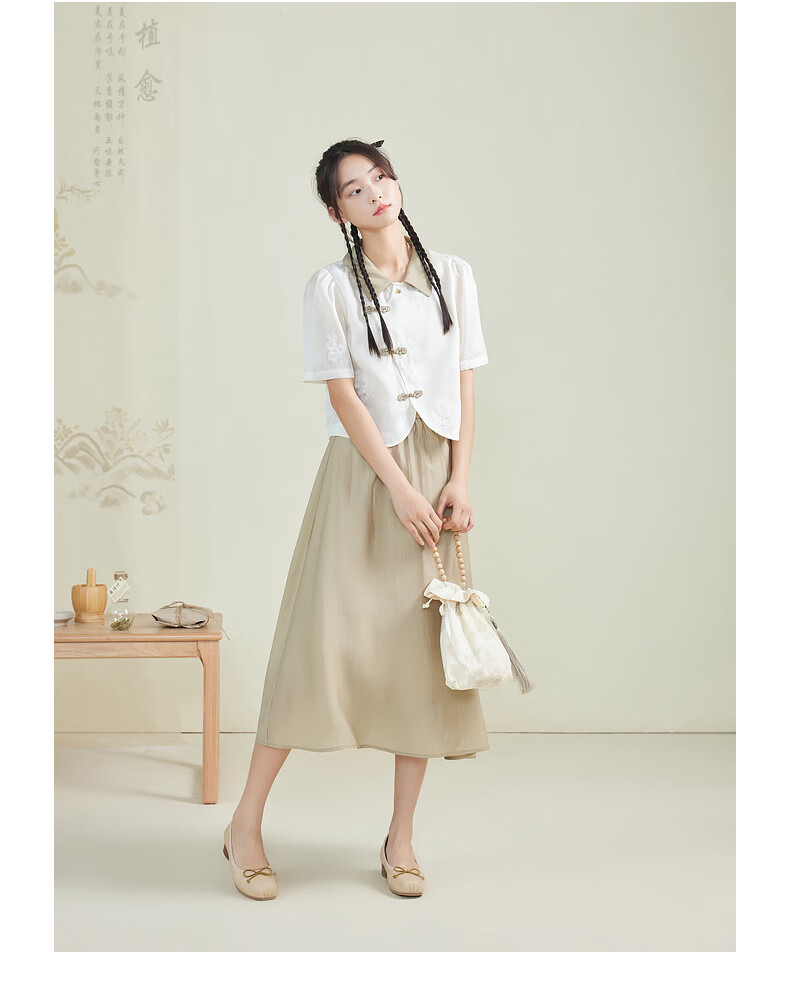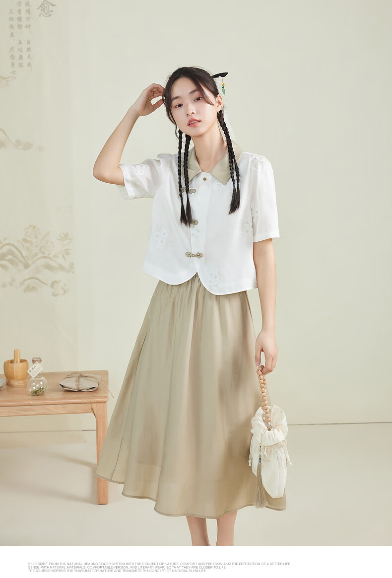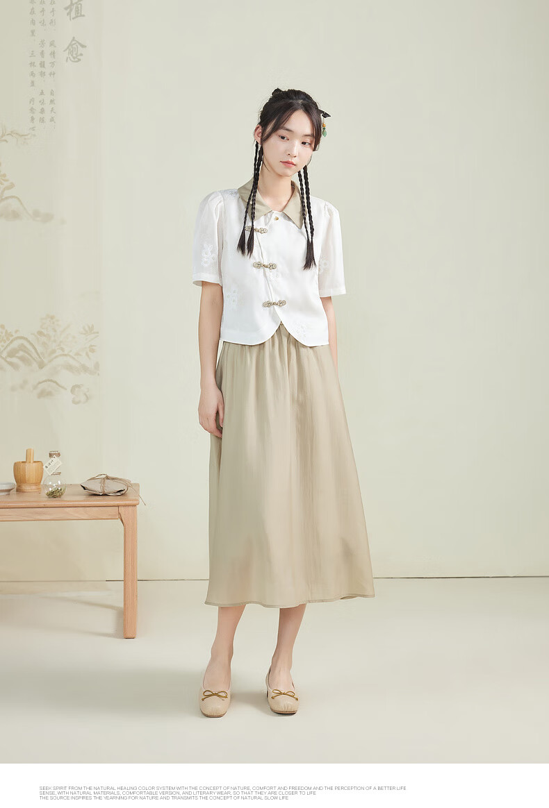 Zihan (ZIHAN) Zihan new Chinese style oblique buttoned top and skirt suit for women summer new national style embroidery two-piece set Khaki S