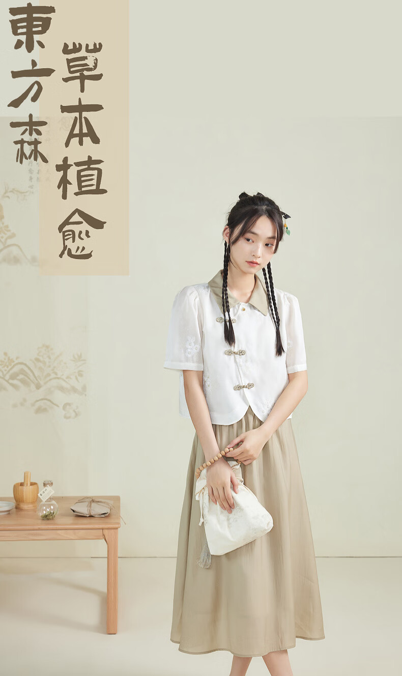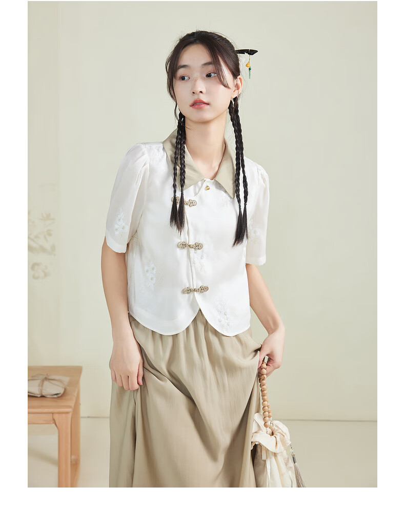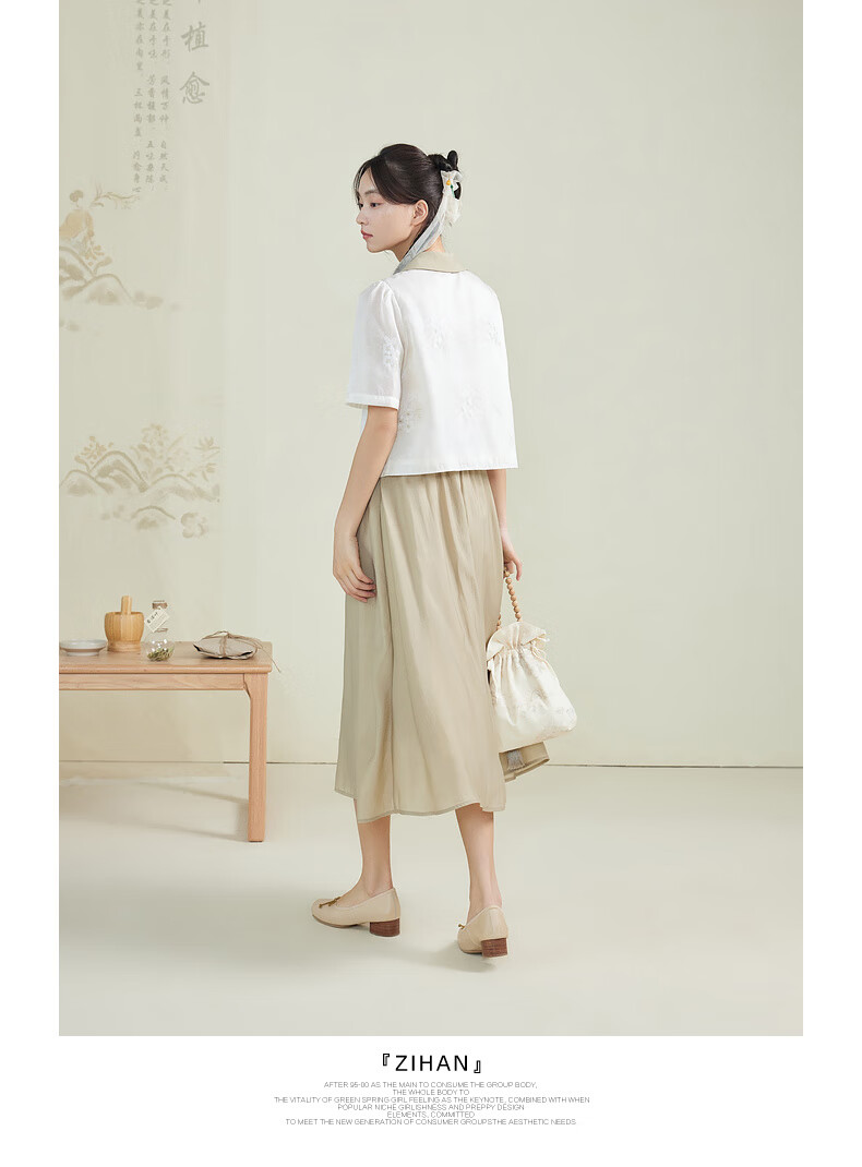 Zihan (ZIHAN) Zihan new Chinese style oblique buttoned top and skirt suit for women summer new national style embroidery two-piece set Khaki S