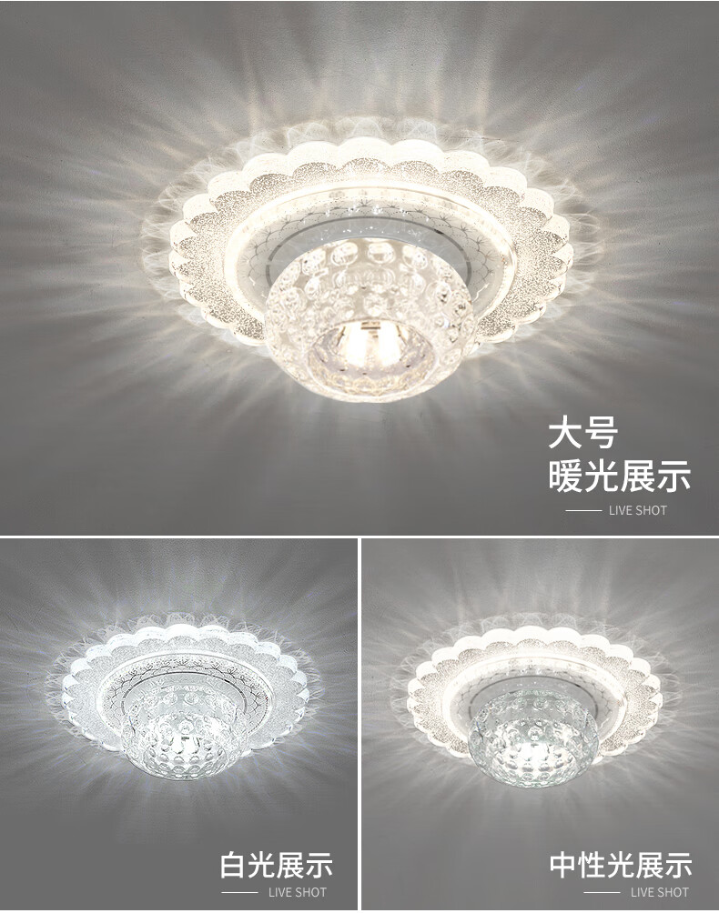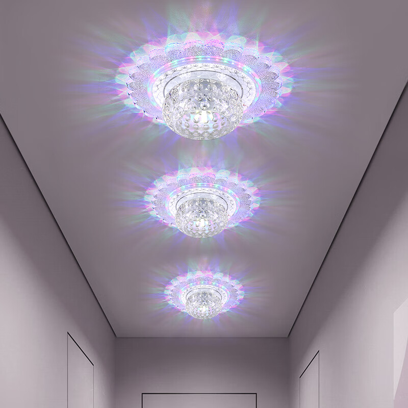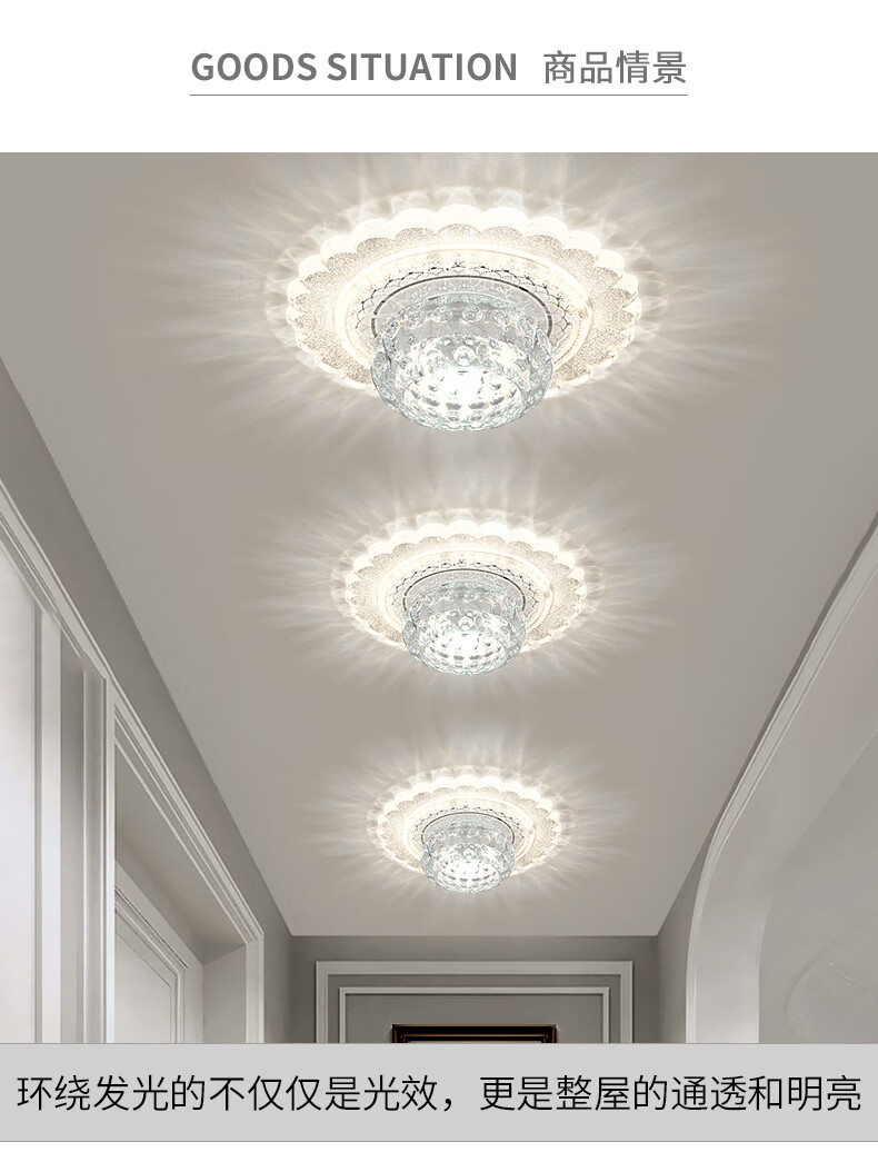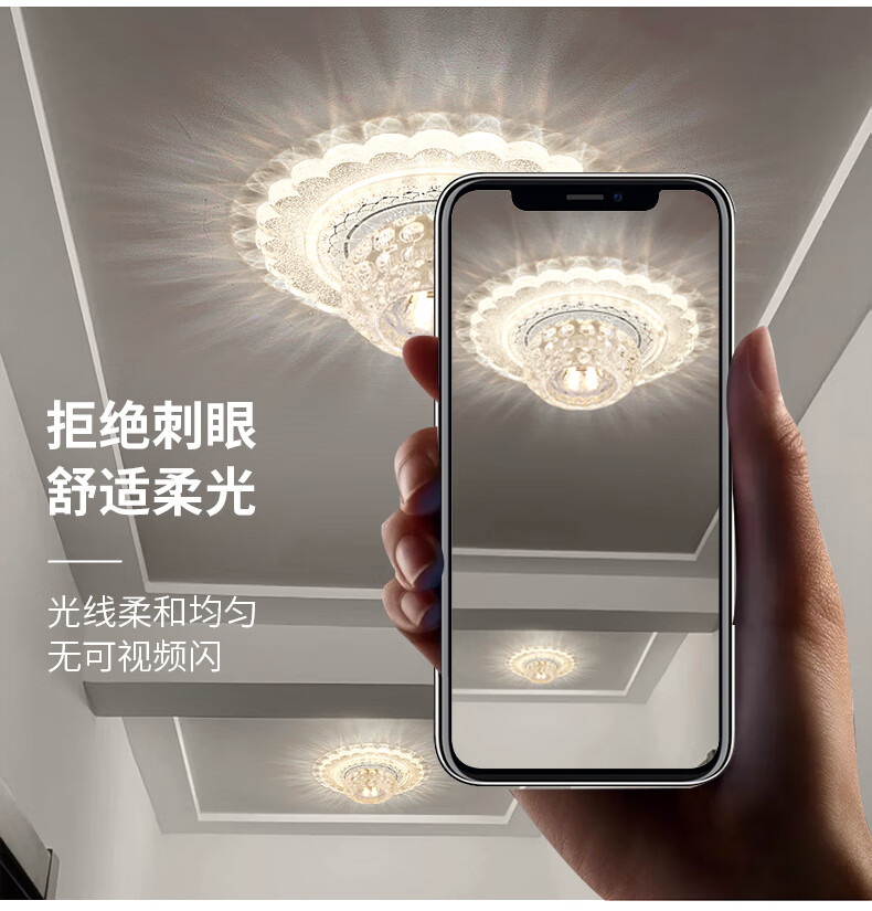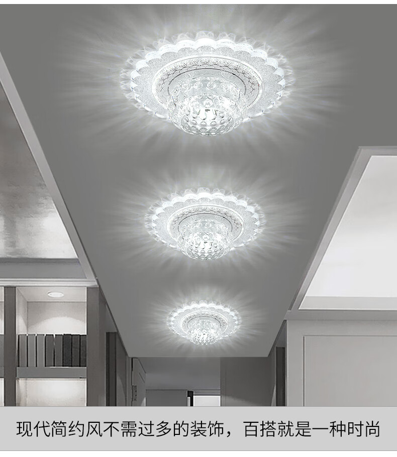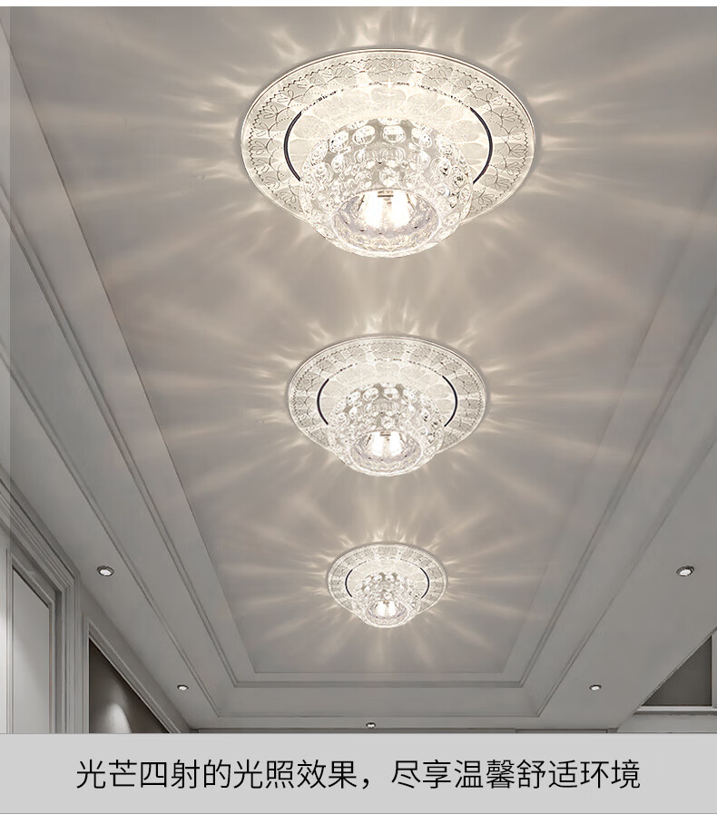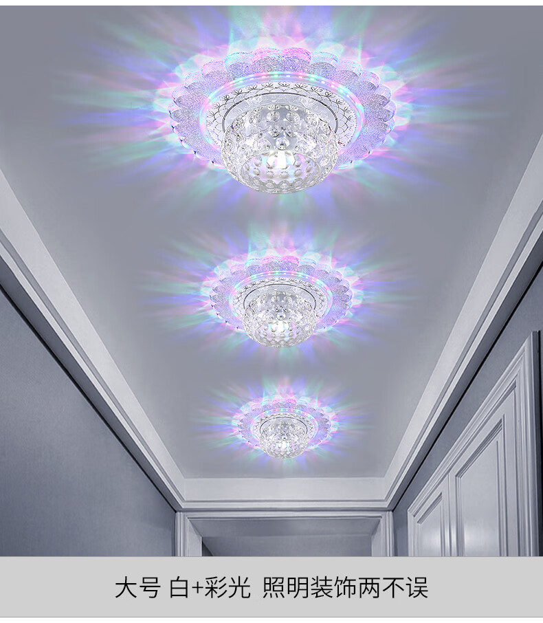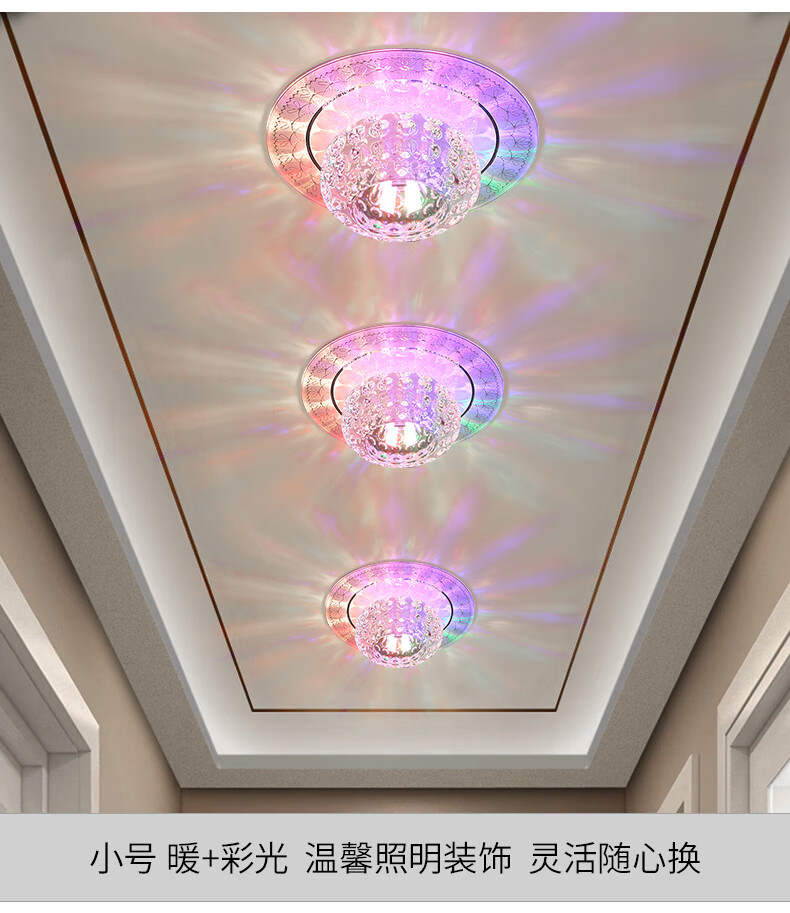 Moko Crystal Corridor Aisle Light Net Red Ceiling Light Entry Porch Light Surface-mounted Downlight Open Hole Embedded Balcony Light Large_LED 14W Three Color Light + White Light Concealed Model - The ceiling needs to have a hole of 5-10 cm