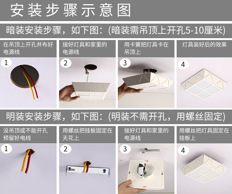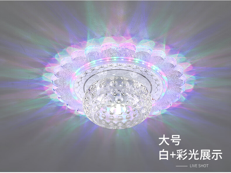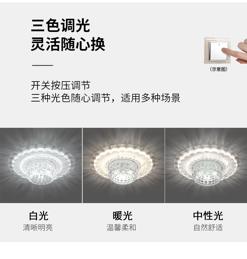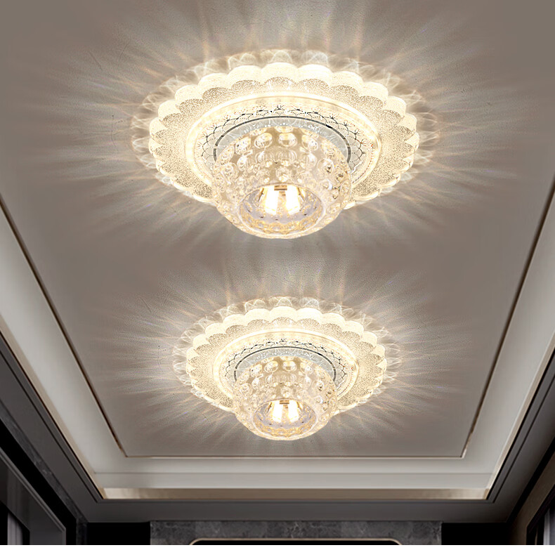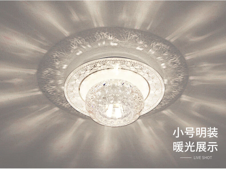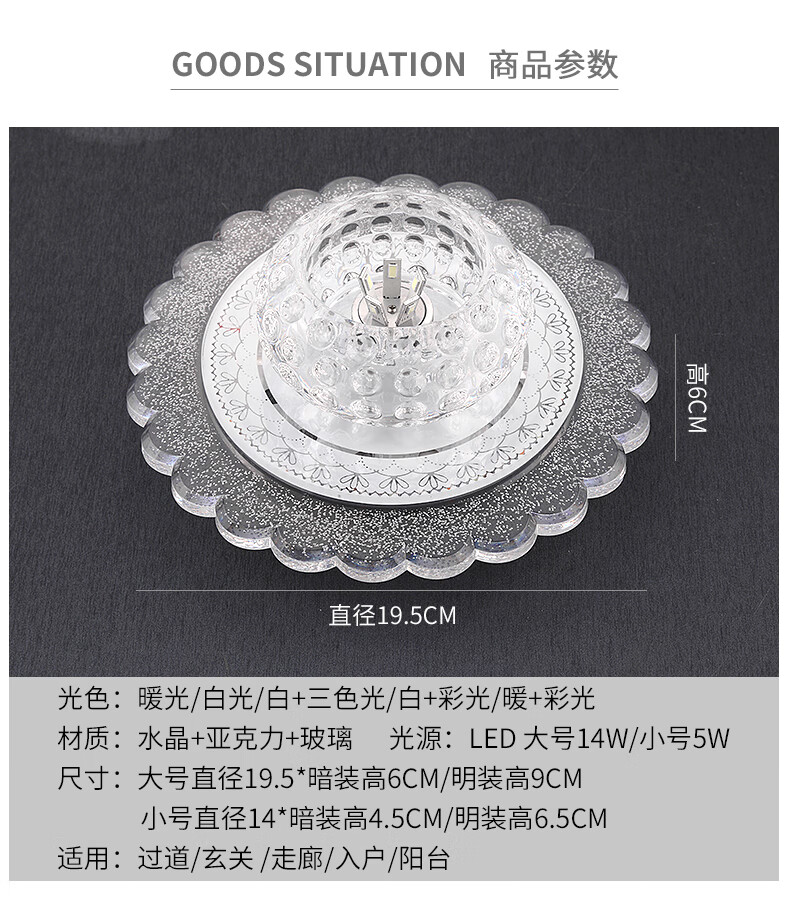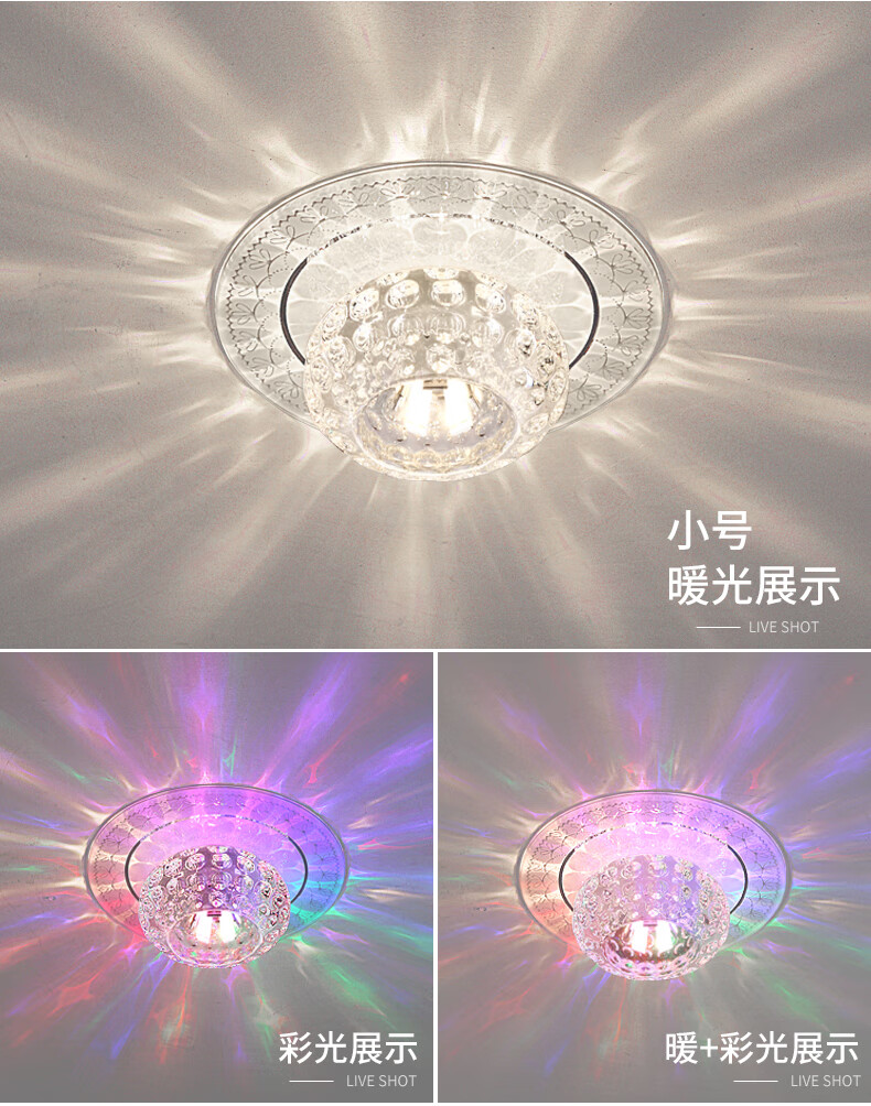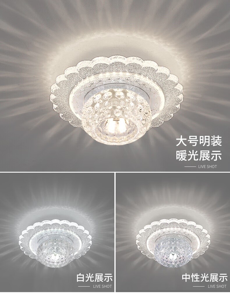 Moko Crystal Corridor Aisle Light Net Red Ceiling Light Entry Porch Light Surface-mounted Downlight Open Hole Embedded Balcony Light Large_LED 14W Three Color Light + White Light Concealed Model - The ceiling needs to have a hole of 5-10 cm