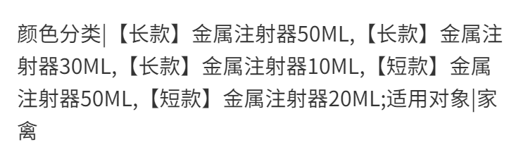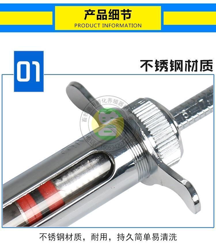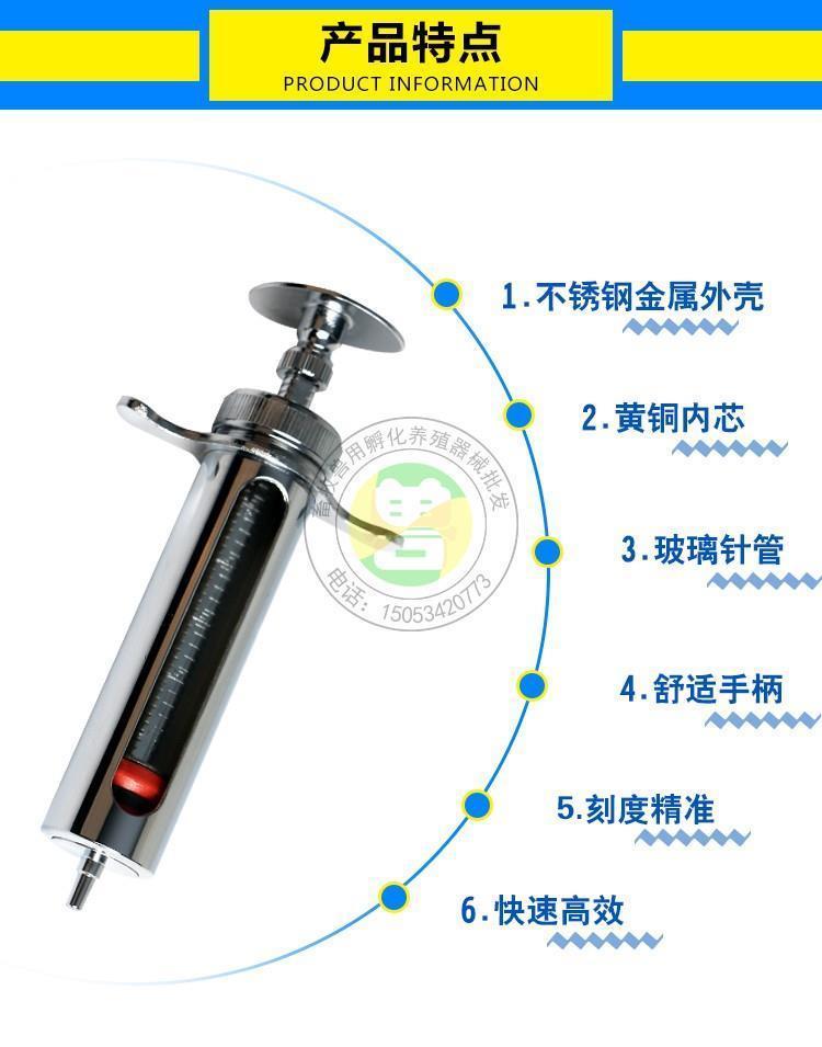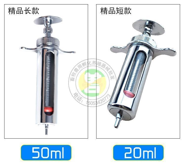 Chaoming (CHAOMING) stainless steel metal glass pig poultry chicken injection veterinary syringe breeding vaccine needle large long metal syringe 50ML