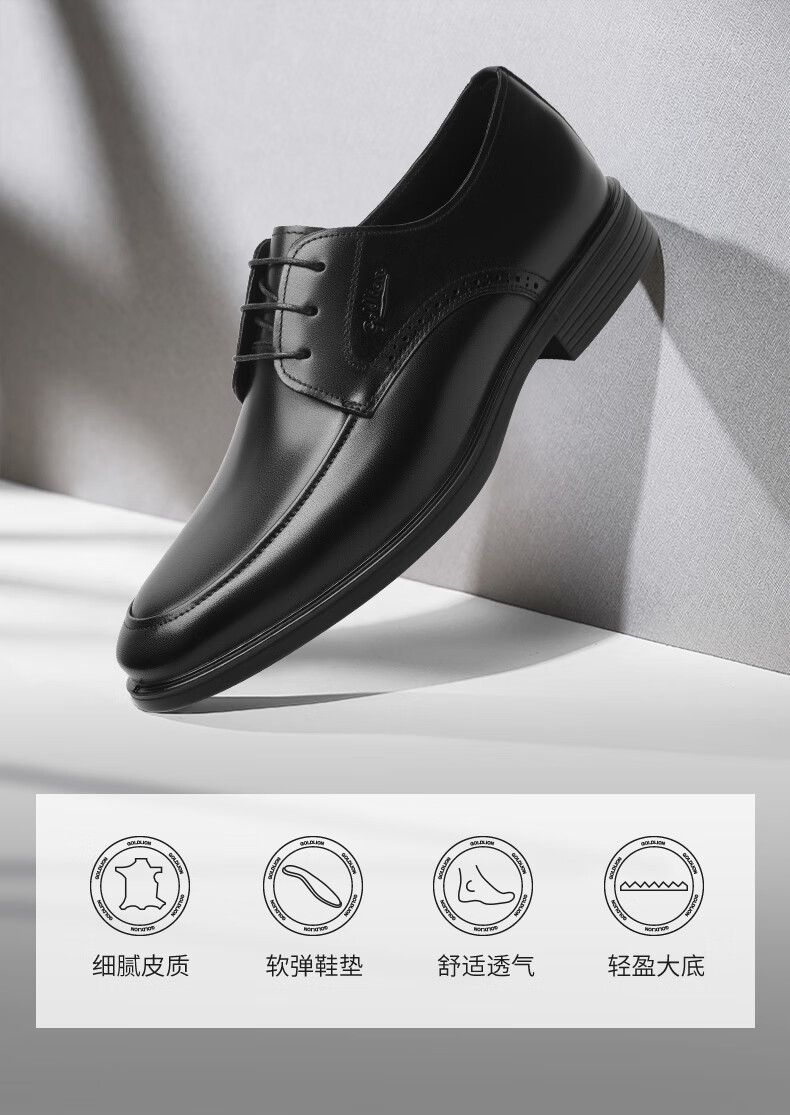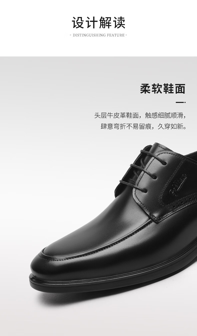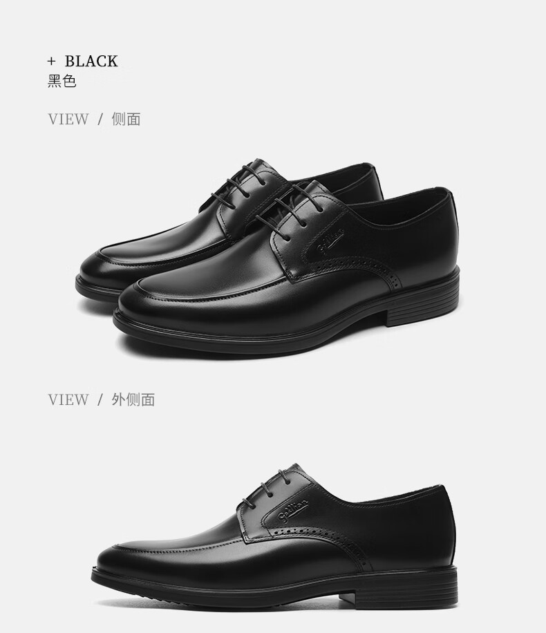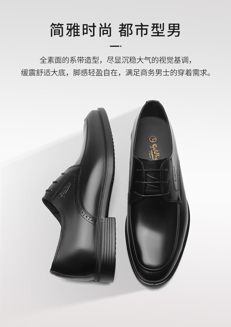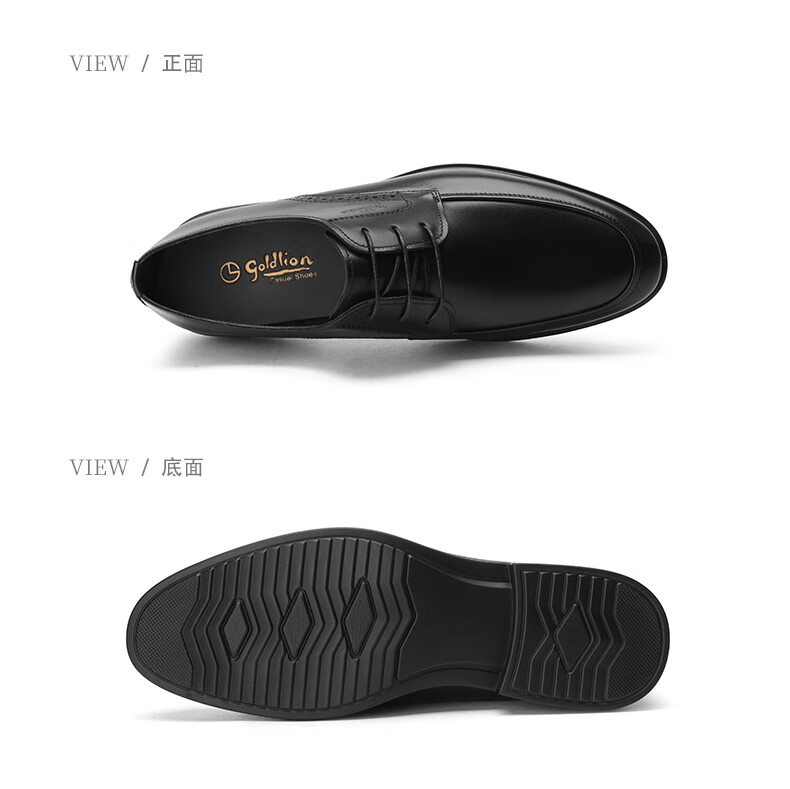 Goldlion Men's Shoes 2025 Autumn New Light Sole Business Formal Lace Up Soft Leather Soft Sole Genuine Leather Casual Men's Leather Shoes for Men Black G596410070 41
