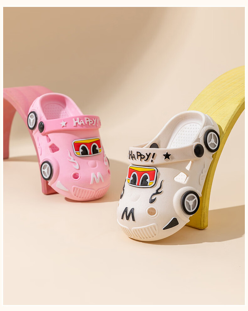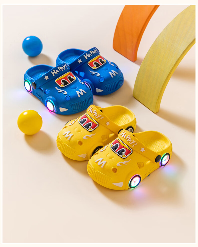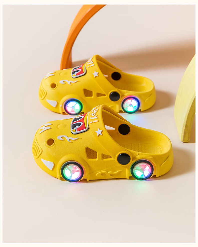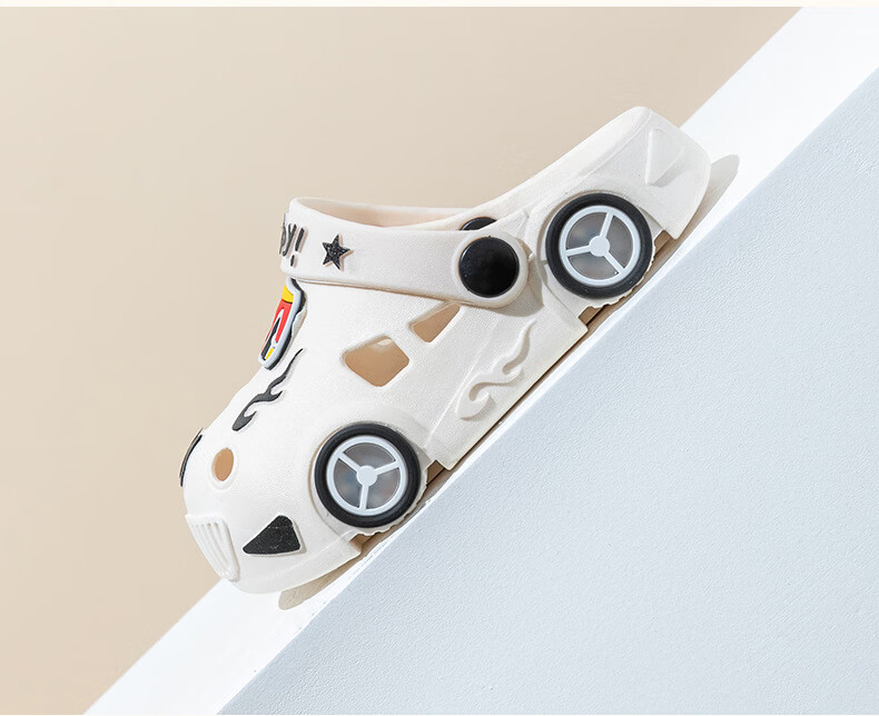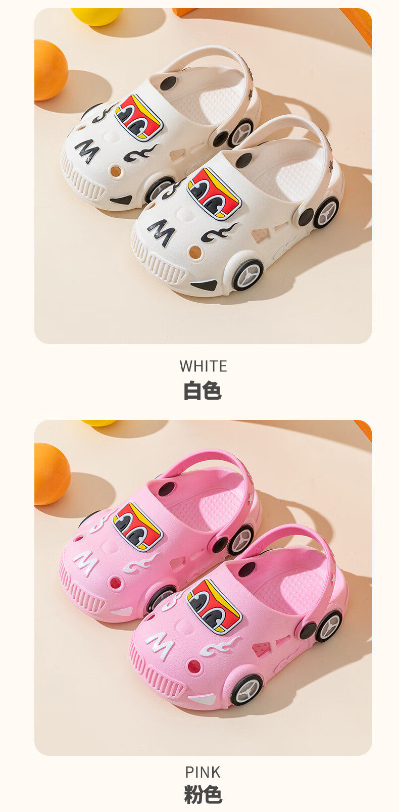 G.duck children's slippers summer boys and girls home non-slip indoor handsome cartoon car children's baby slippers (not lighted) white 24-25 yards inner length 15.5cm