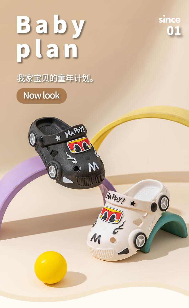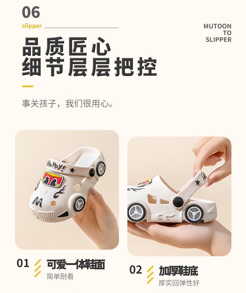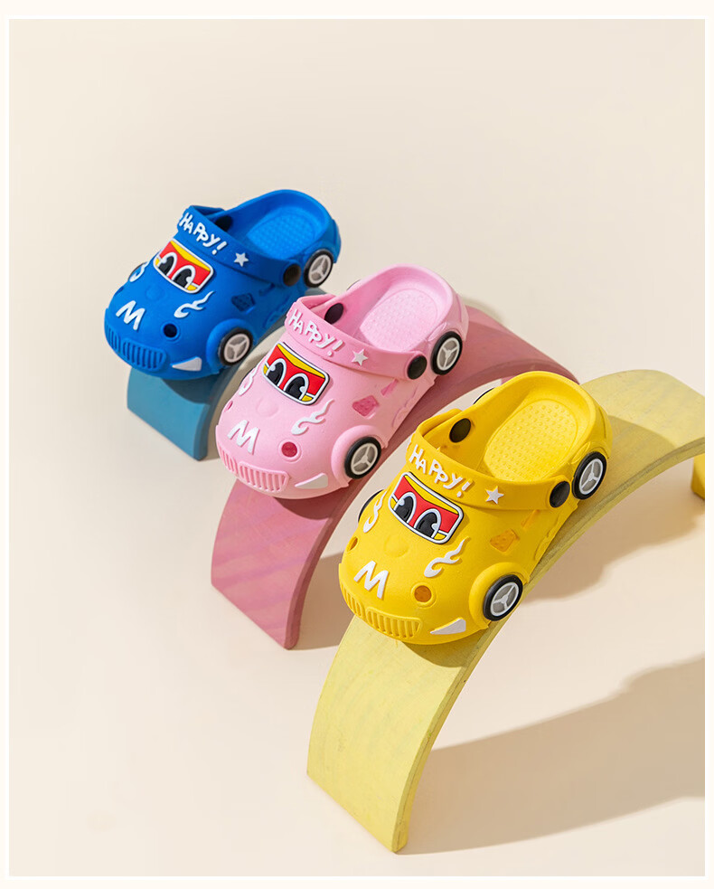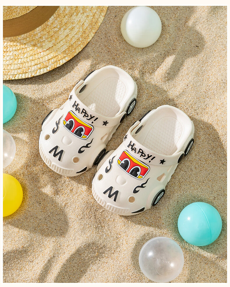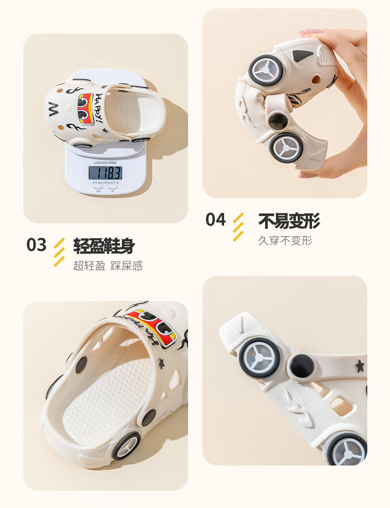 G.duck children's slippers summer boys and girls home non-slip indoor handsome cartoon car children's baby slippers (not lighted) white 24-25 yards inner length 15.5cm