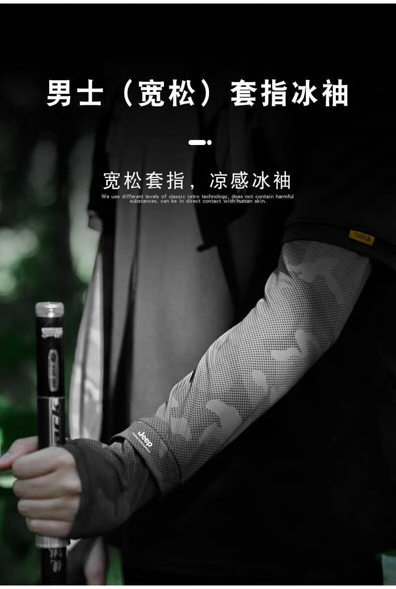JEEP Jeep Loose Finger Summer Ice Silk Sun Protection Sleeves Men's Large Size Ice Sleeve Sleeves Fishing Arm Sleeves Driving Ice Sleeves