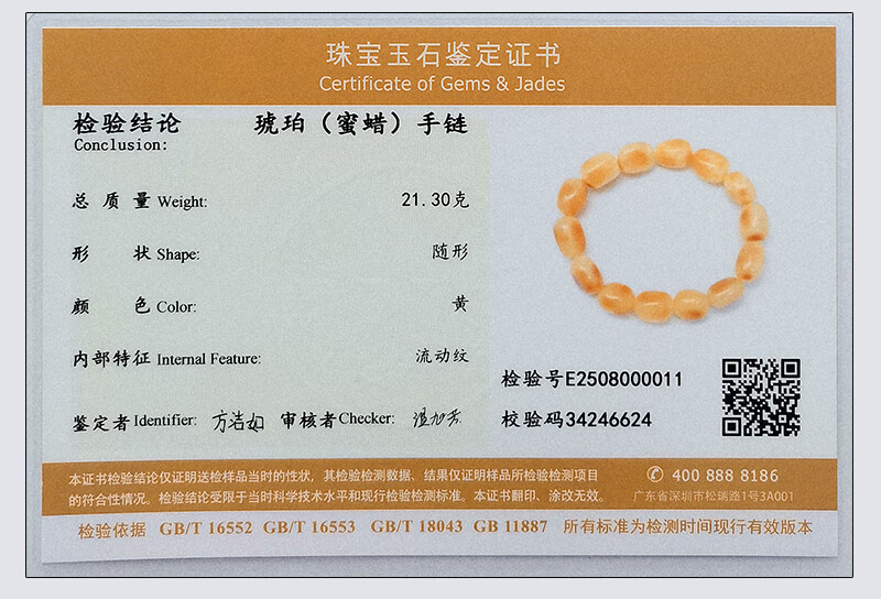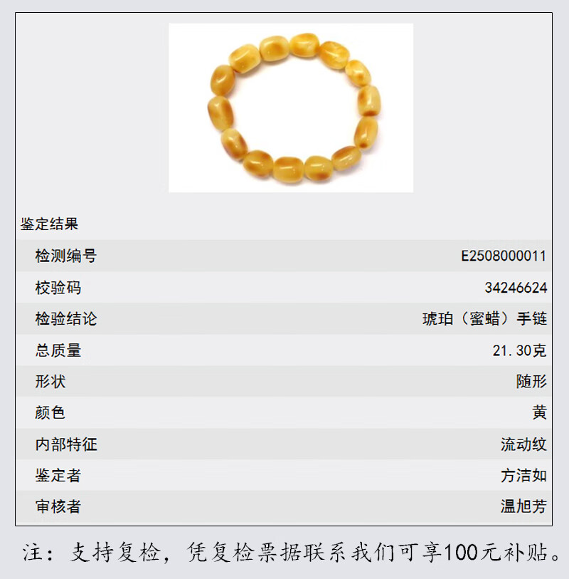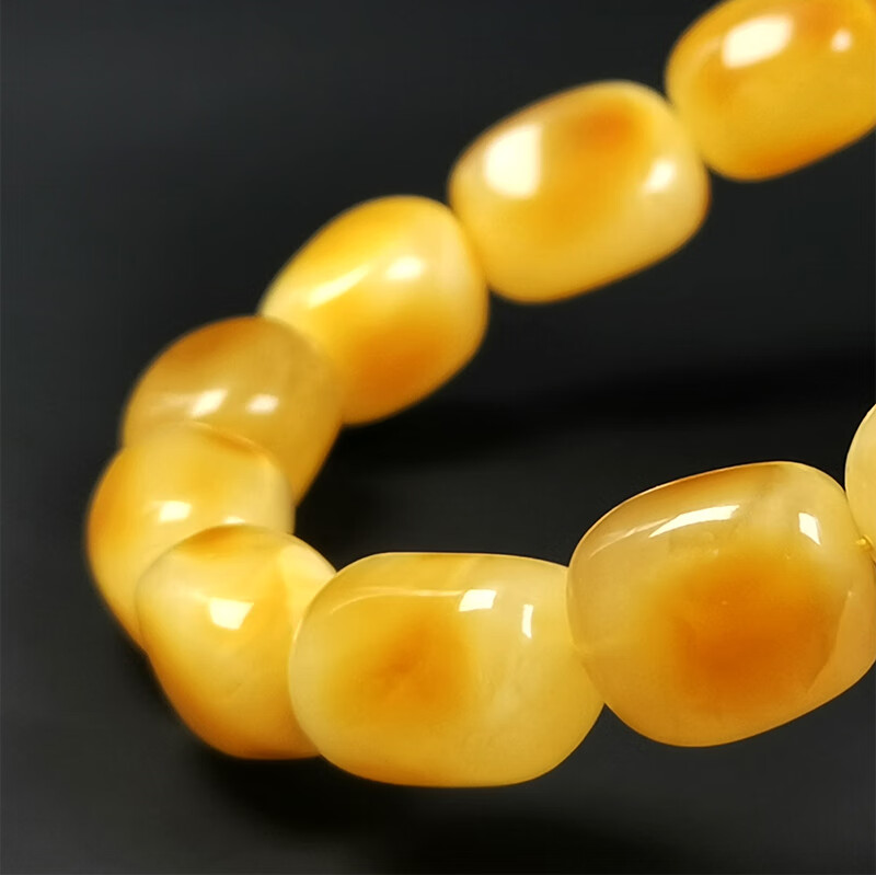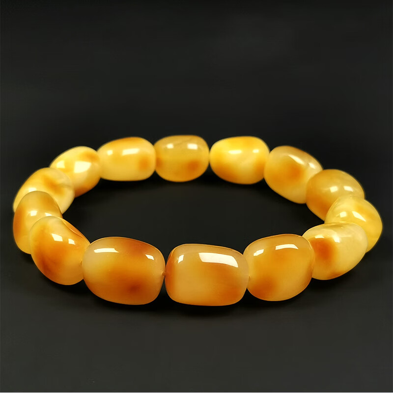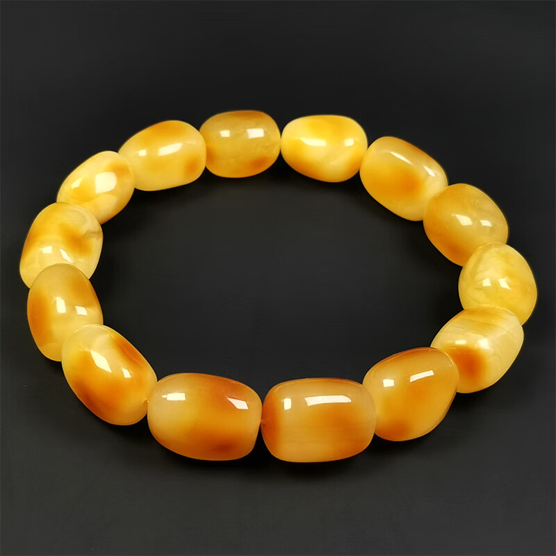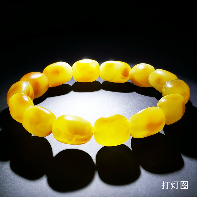 Amber Pai, one thing, one picture, one certificate, natural amber, Russian material, chicken fat, yellow beeswax bracelet for men and women, no cracks, 21.3g, 11*15mm