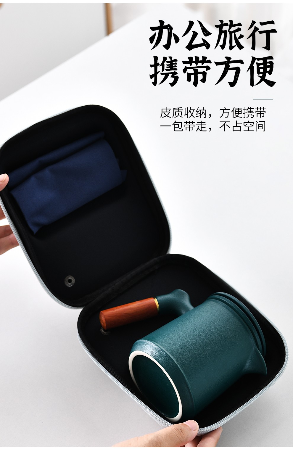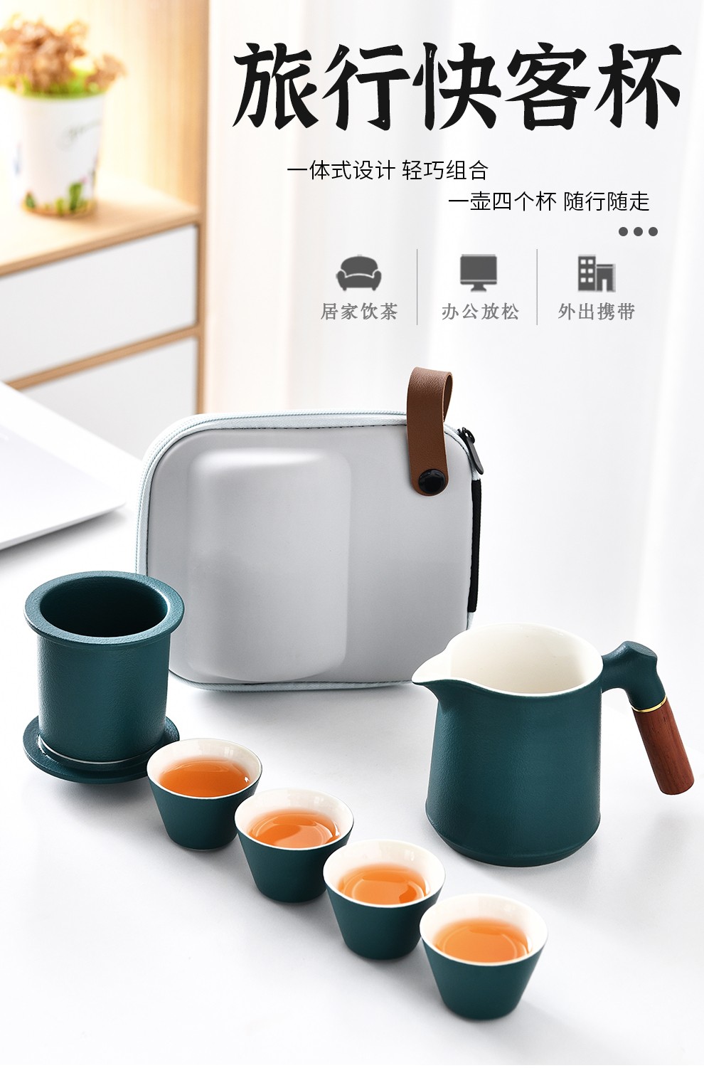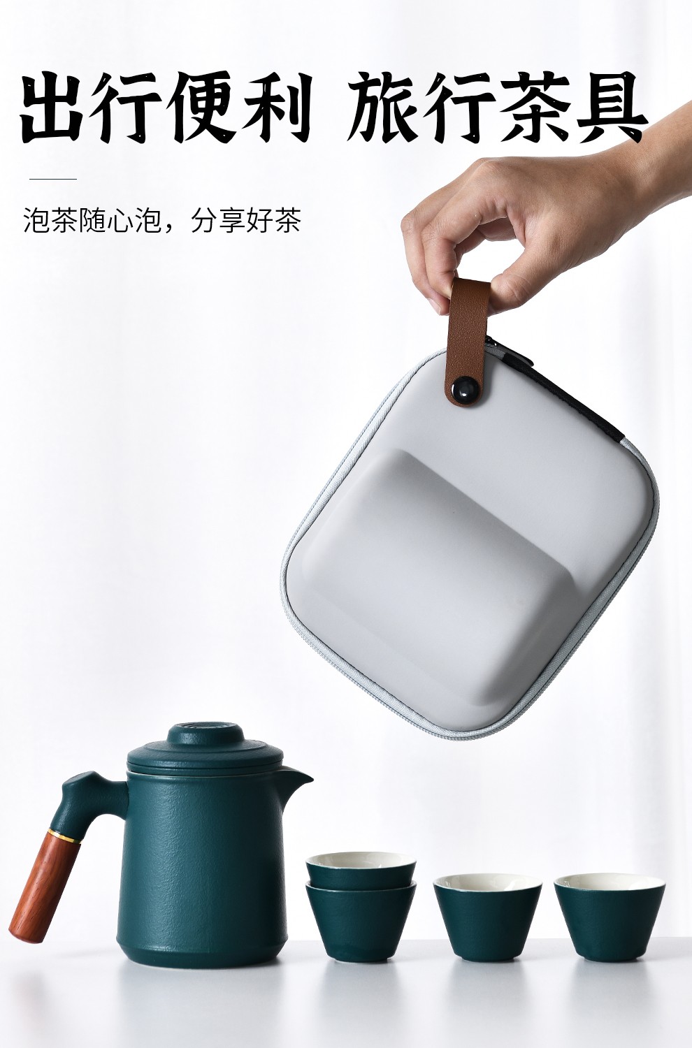 Qixuanyuan Travel Tea Set Portable Kung Fu Tea Set Quick Cup Ceramic Teapot Tea Cup Anti-scalding Outdoor Customized LOGO Zisha Mountain Shadow Handheld Pot Three Cups 4-piece Set