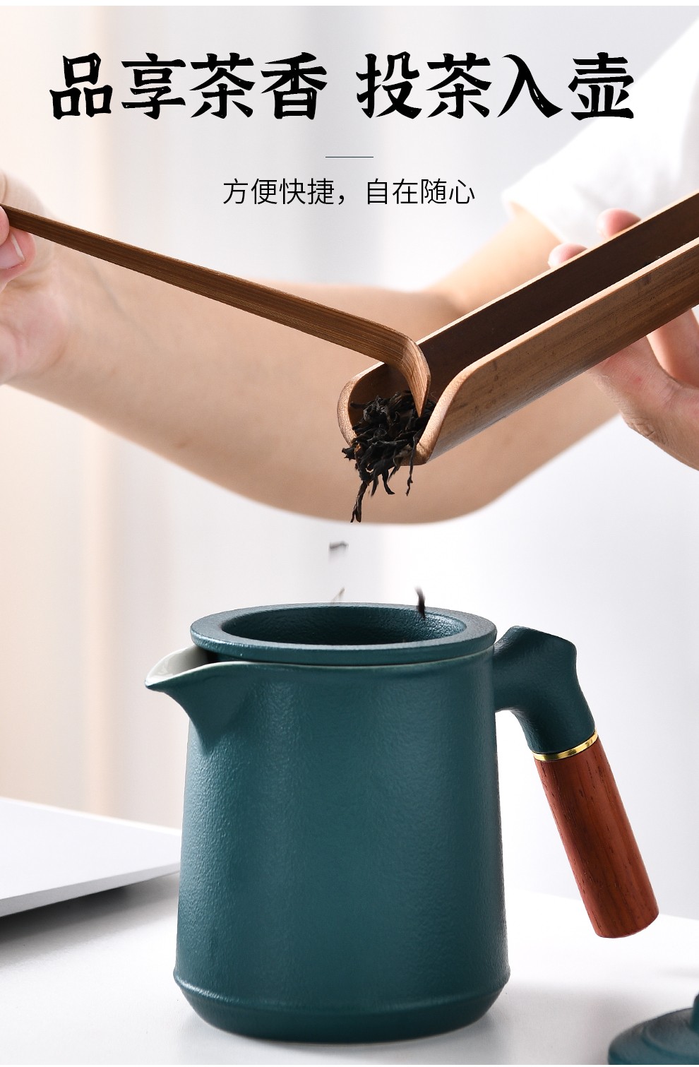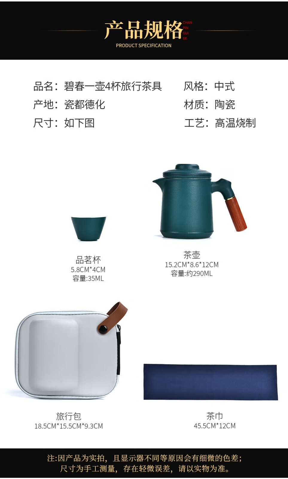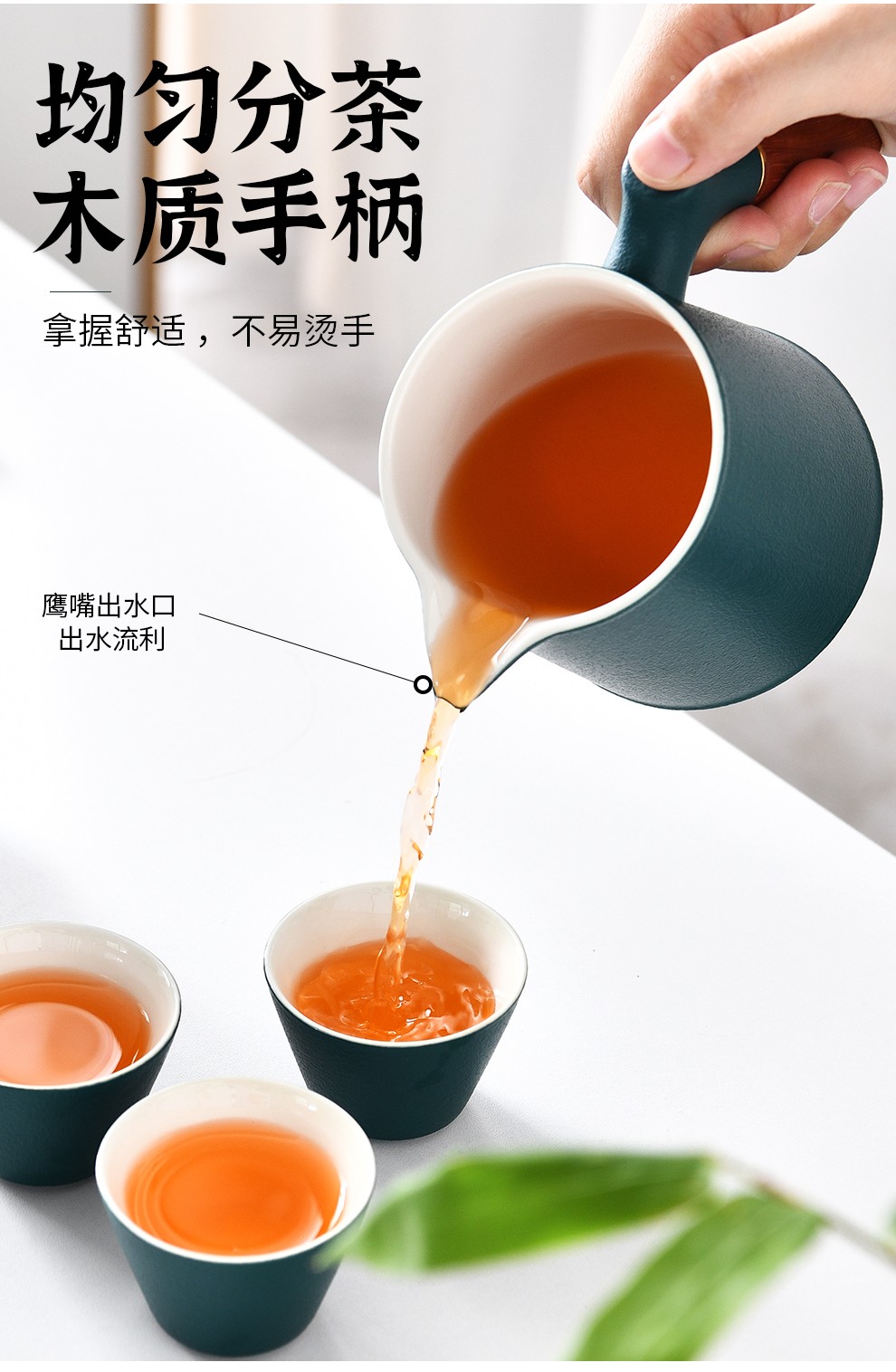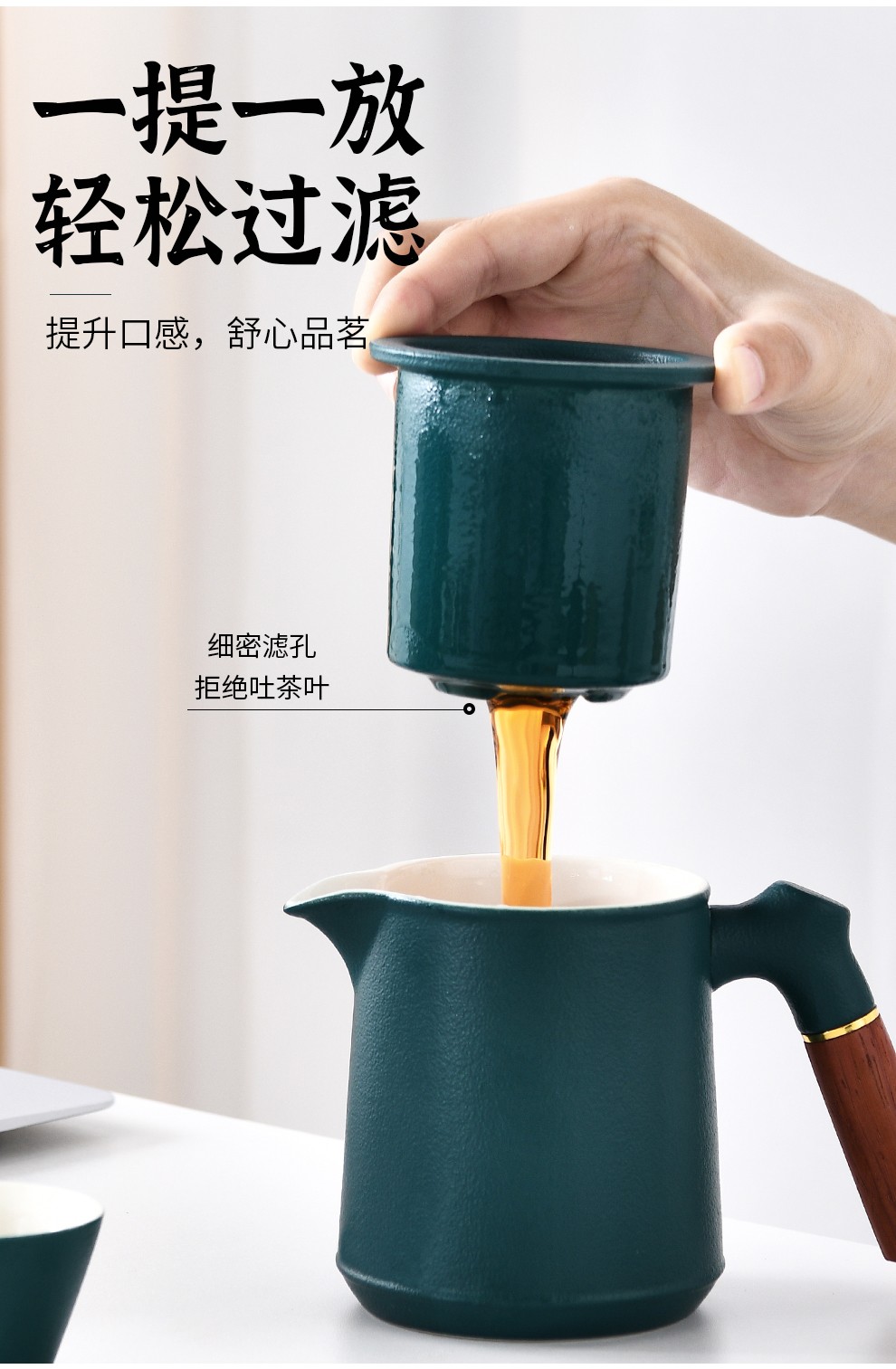 Qixuanyuan Travel Tea Set Portable Kung Fu Tea Set Quick Cup Ceramic Teapot Tea Cup Anti-scalding Outdoor Customized LOGO Zisha Mountain Shadow Handheld Pot Three Cups 4-piece Set