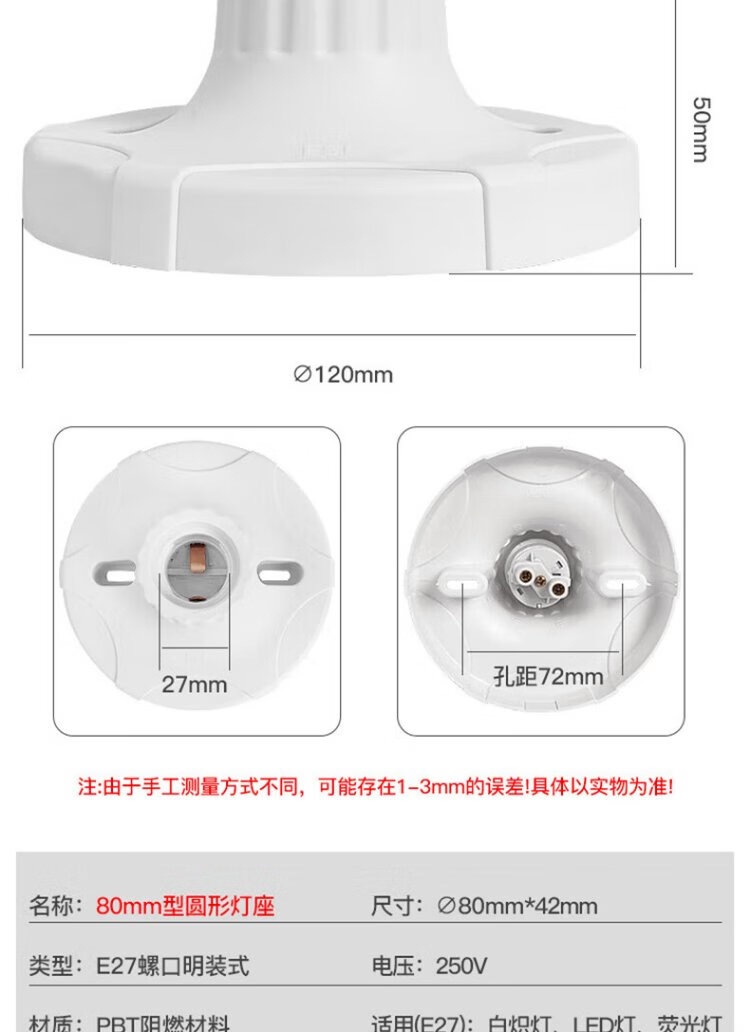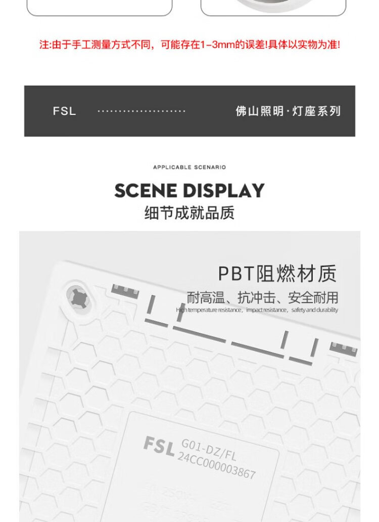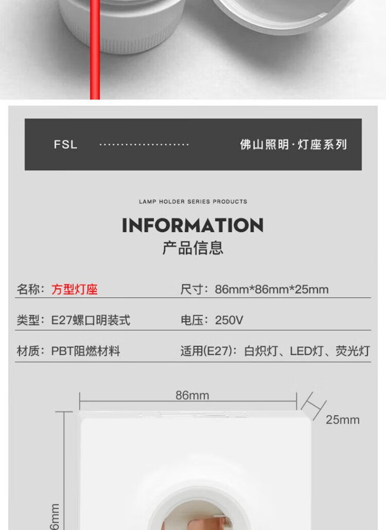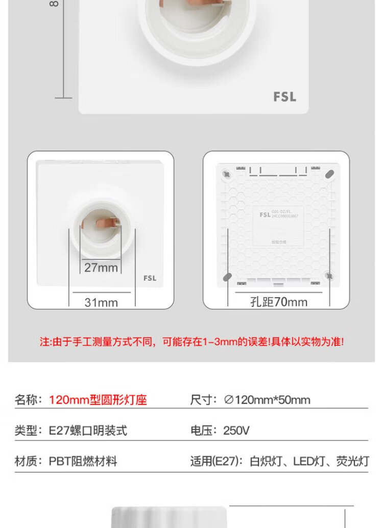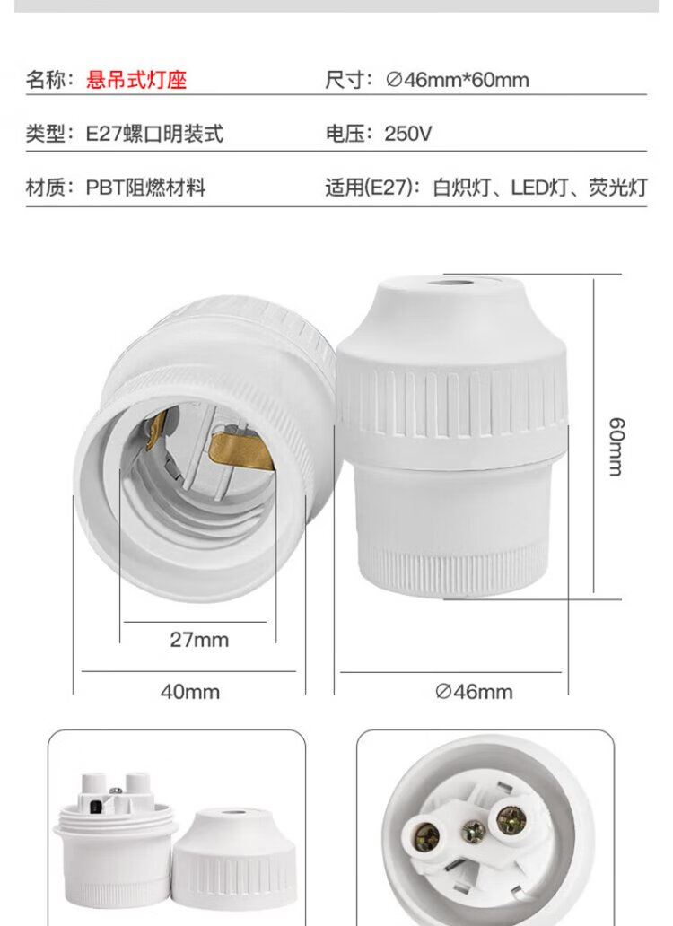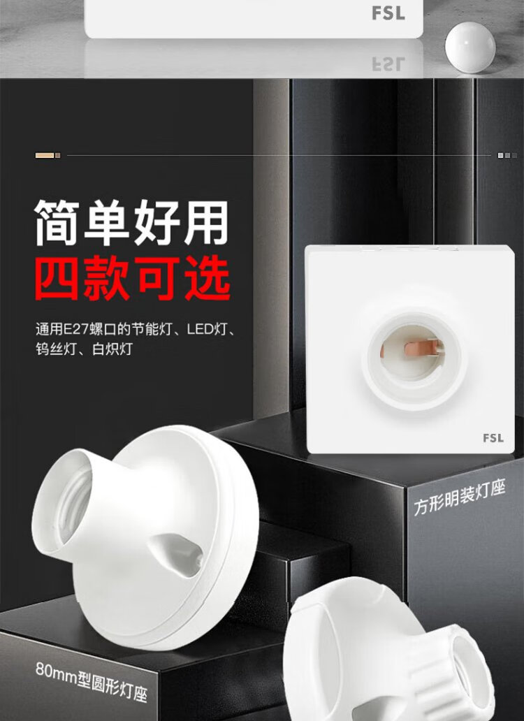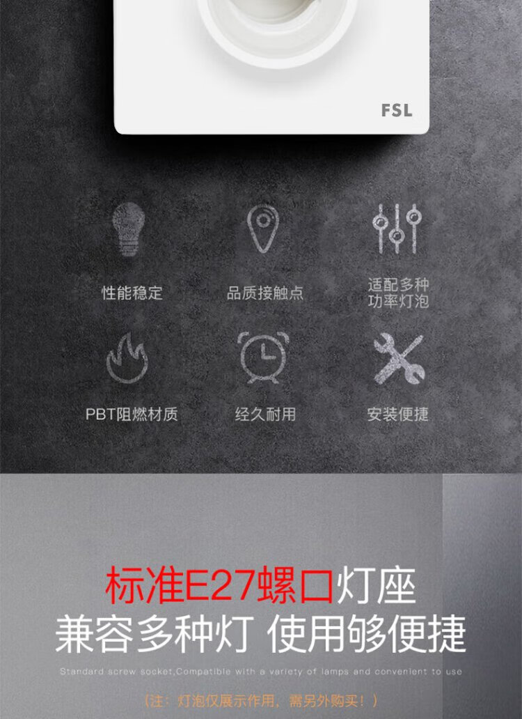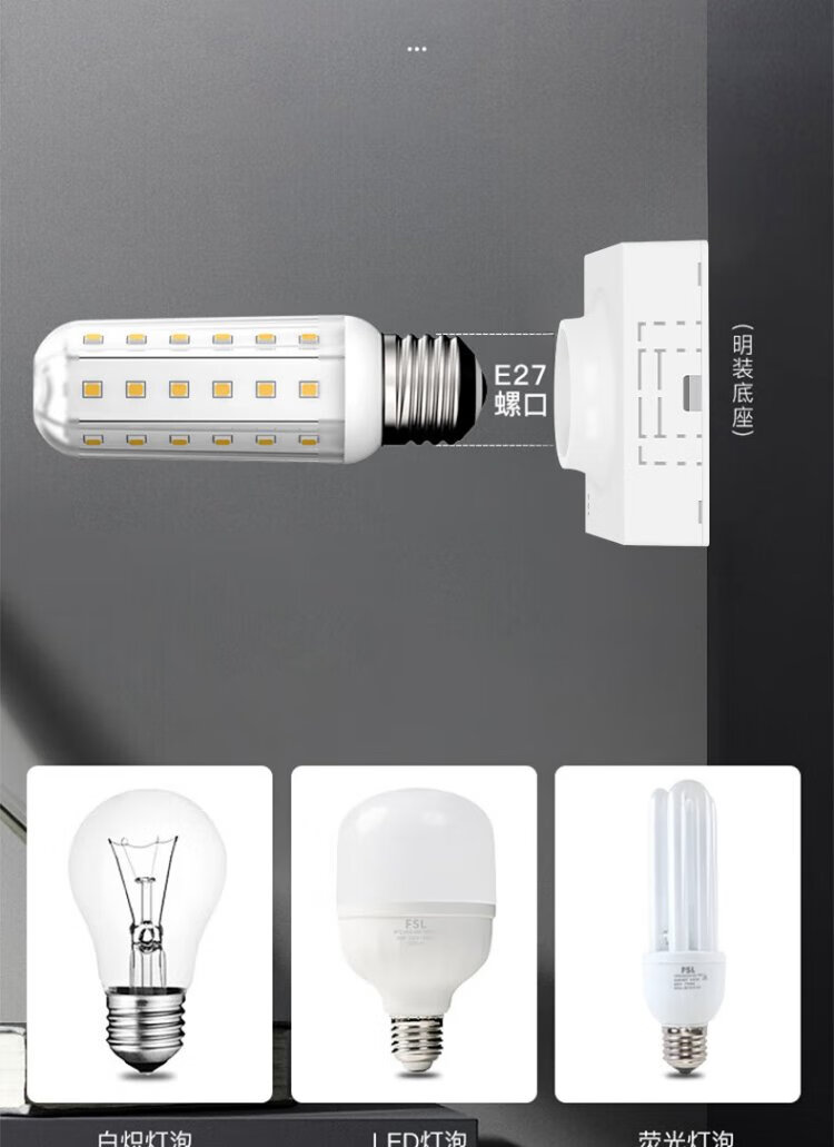 FSL Foshan Lighting surface-mounted socket screw lamp holder E27 bulb base lamp holder (screw not included) E27 screw chandelier holder height 60mm 1 piece
