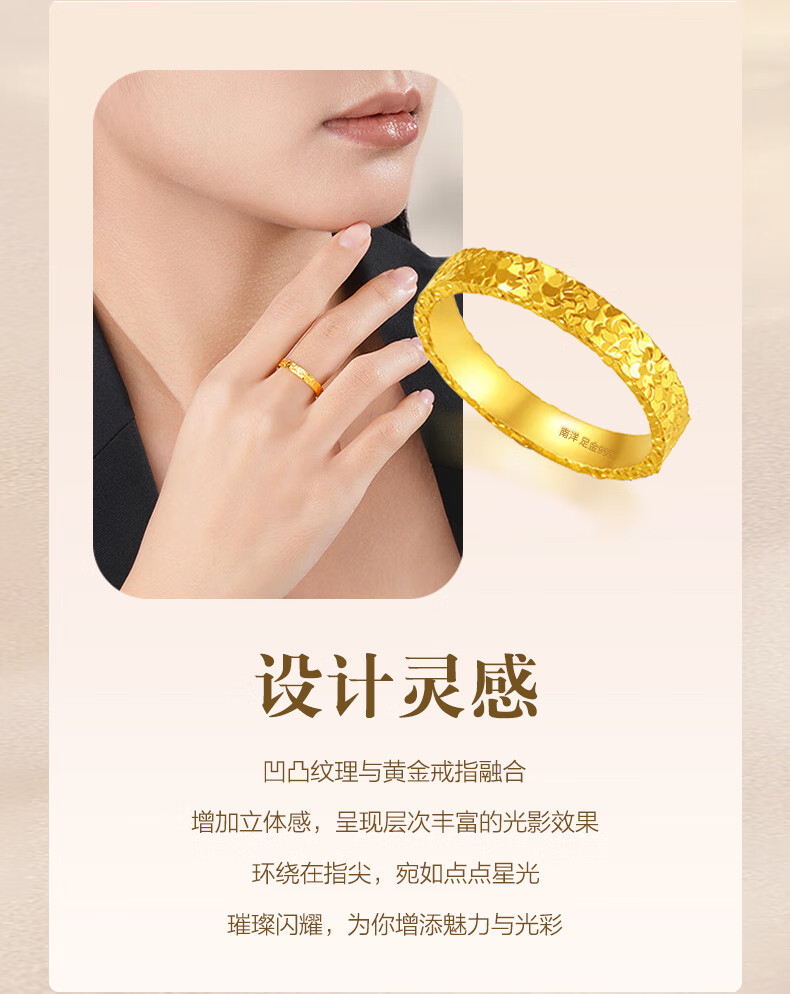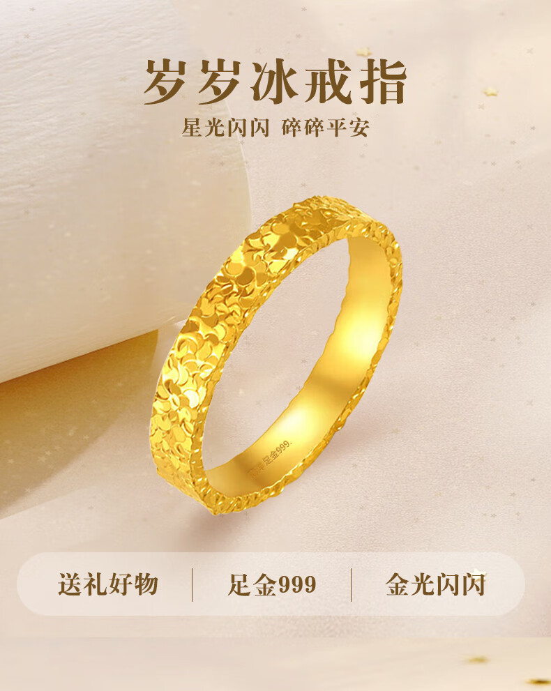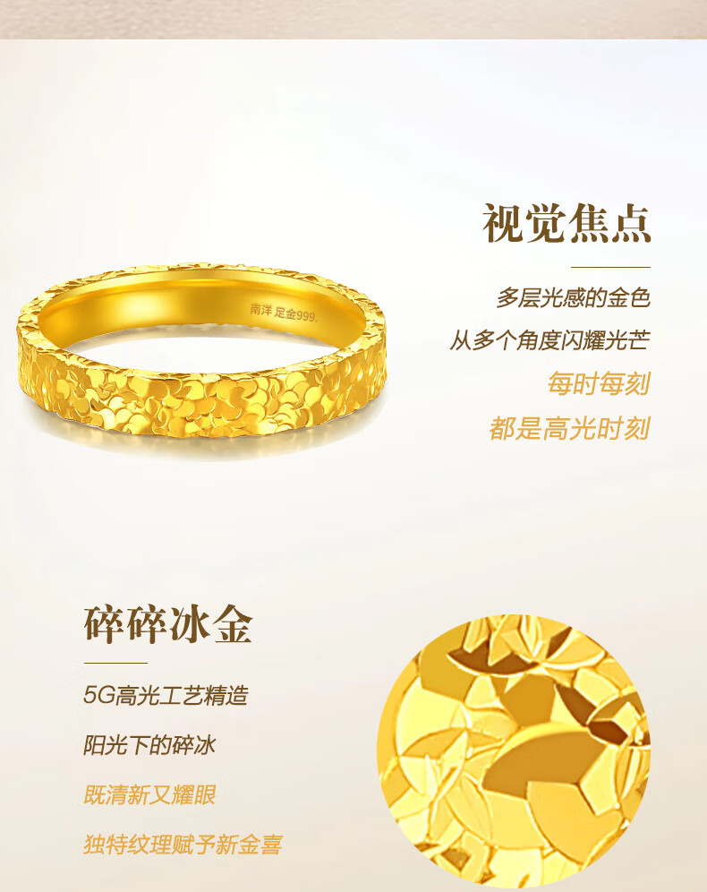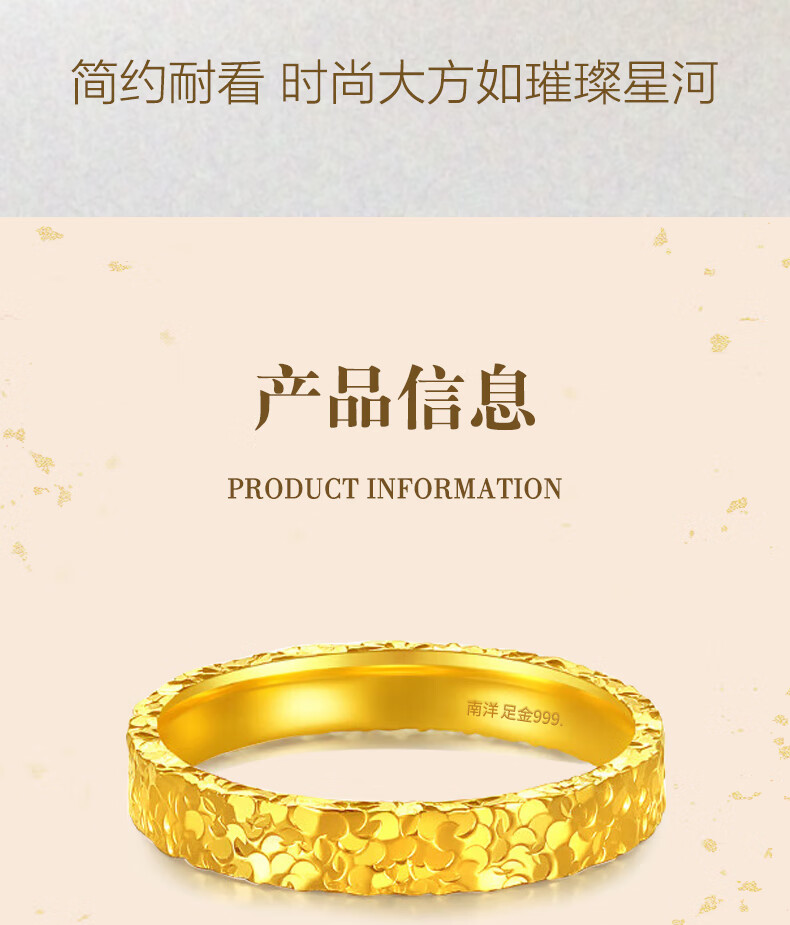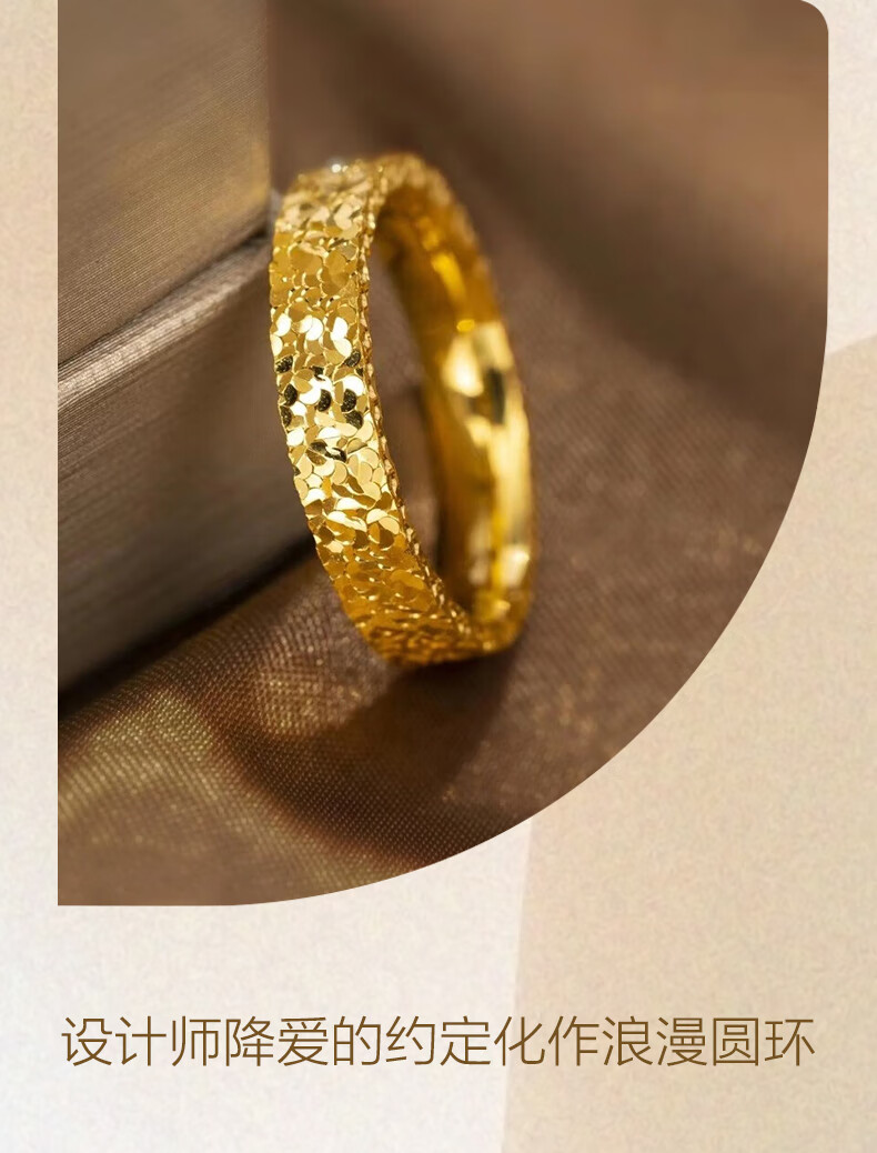 Nanyang Exquisite Exploding Crushed Ice Crushed Gold Pure Gold Gold Ring Couple Style Pure Gold Ring 4.5g Birthday Gift Crushed Ice Ring Gold Weight 4.5g
