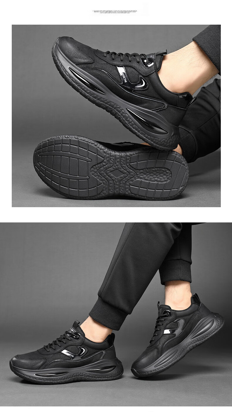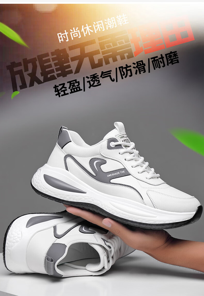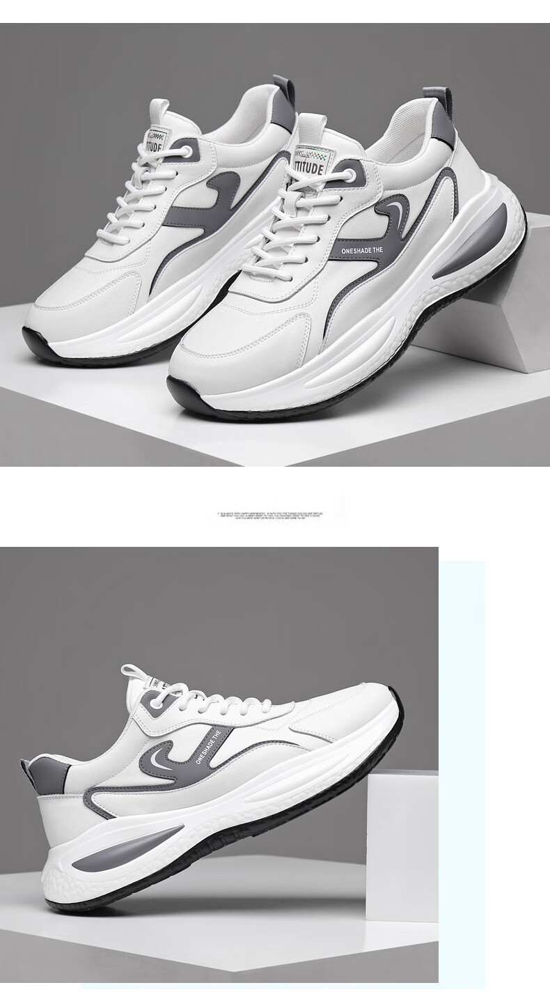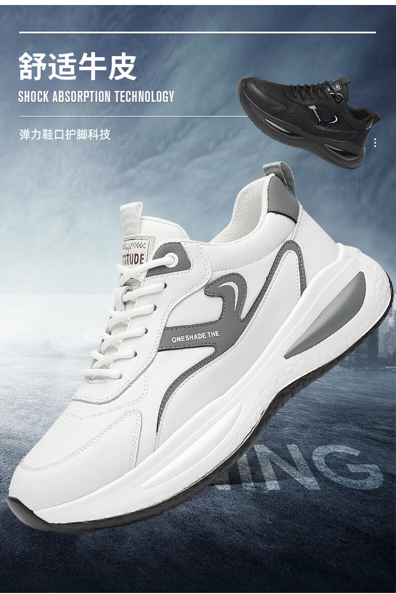 Woodpecker men's shoes genuine leather top layer cowhide 2025 new versatile sports and casual shoes white shoes men's thick sole travel dad shoes white 42 (standard leather shoe size)