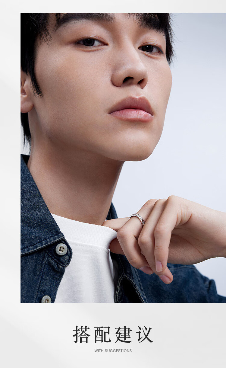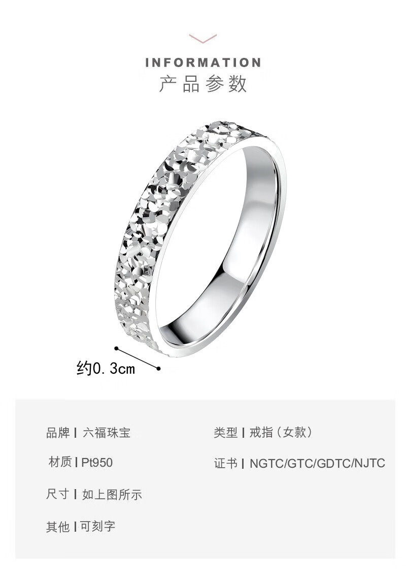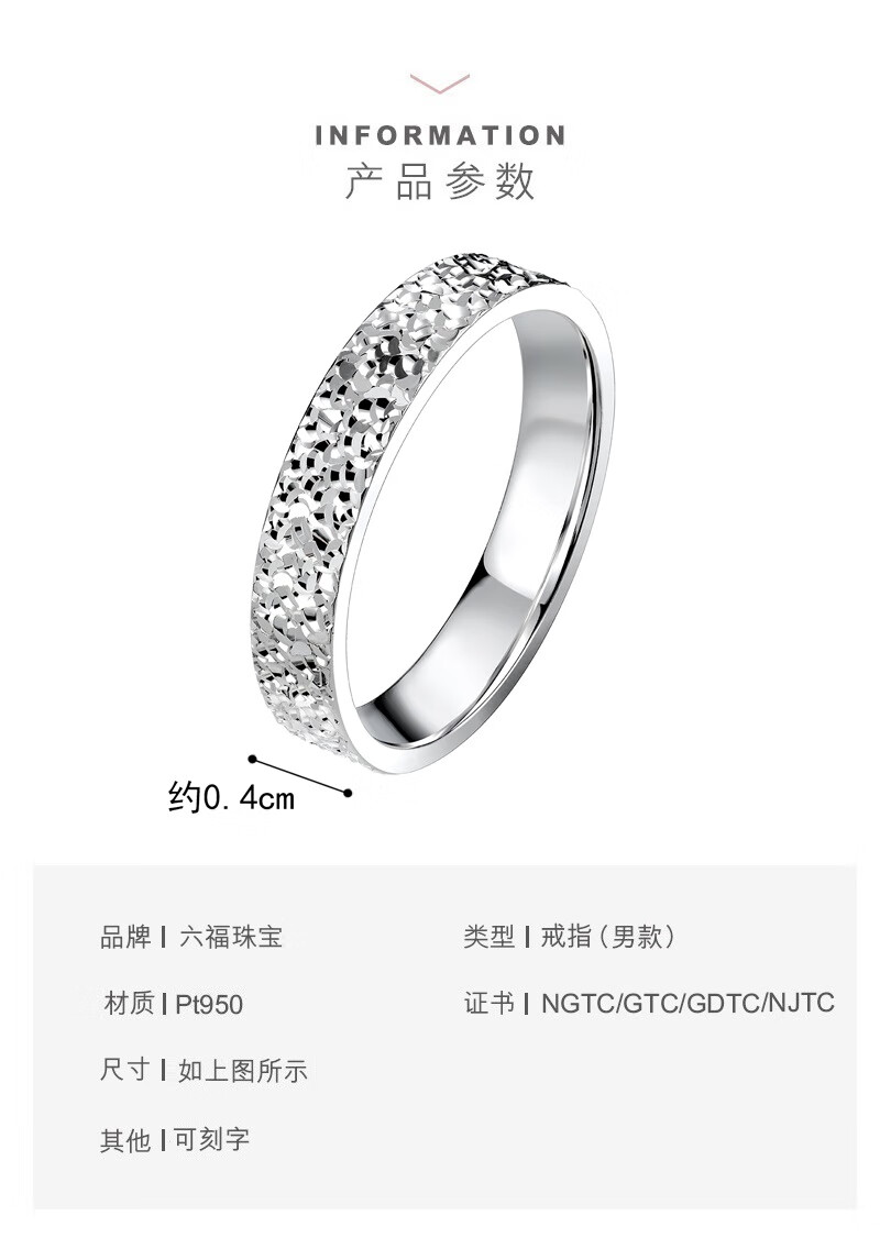 Lukfook Jewelry Platinum 950 Crushed Ice Platinum Ring Couple Wedding Pair Ring Single Price G07TBPR0020 No. 19 - 7.07g (including labor cost 636 yuan) Men's model