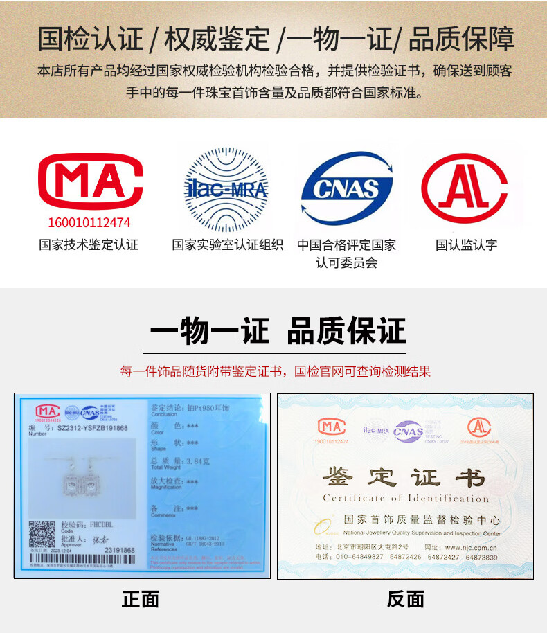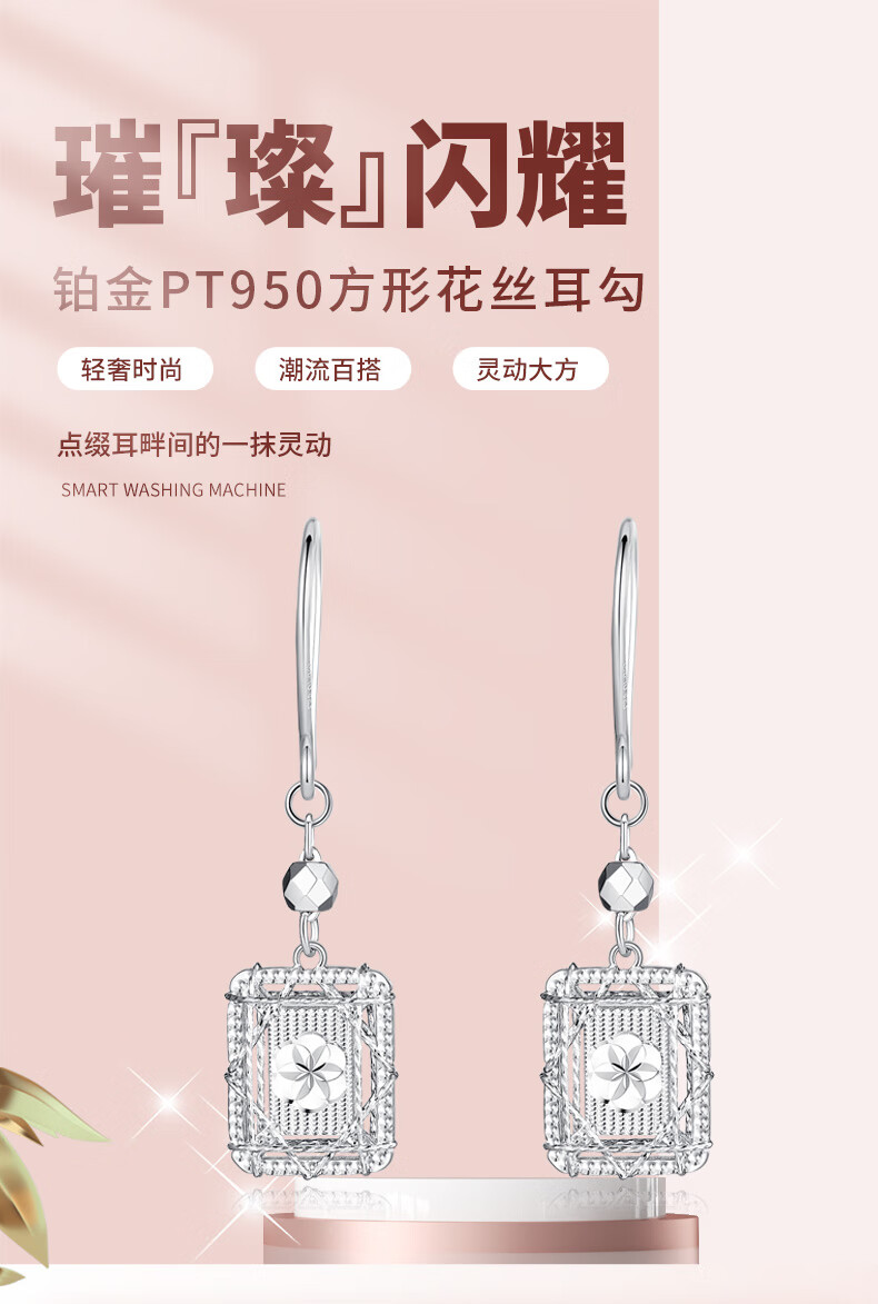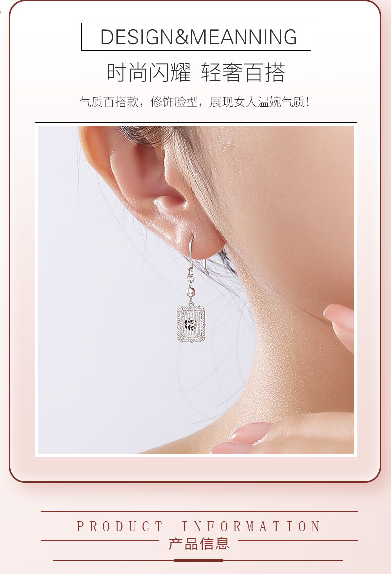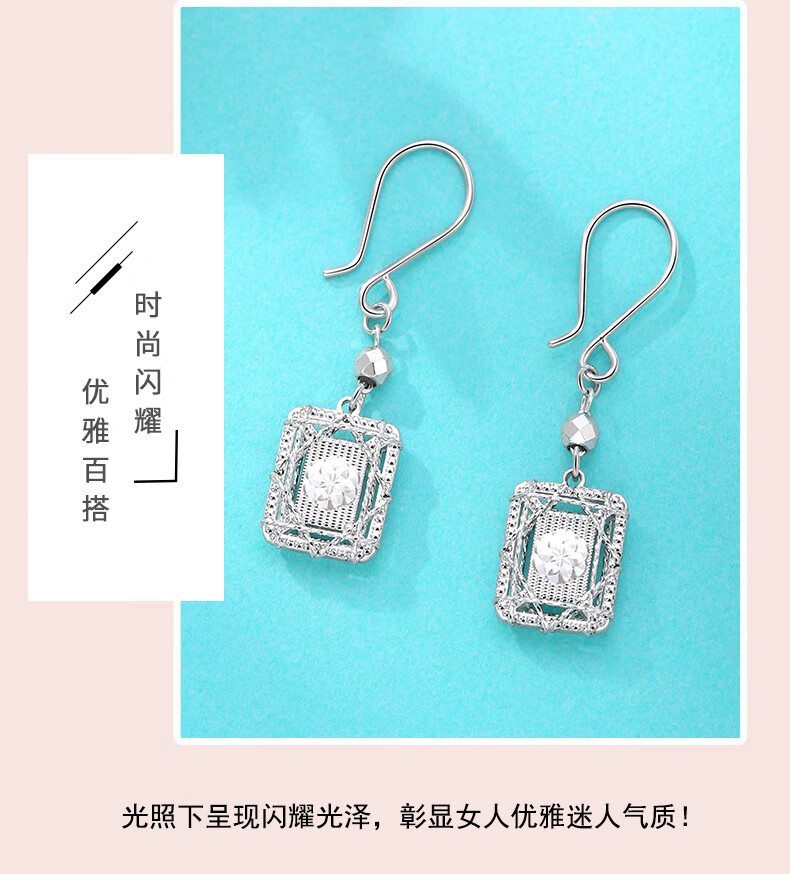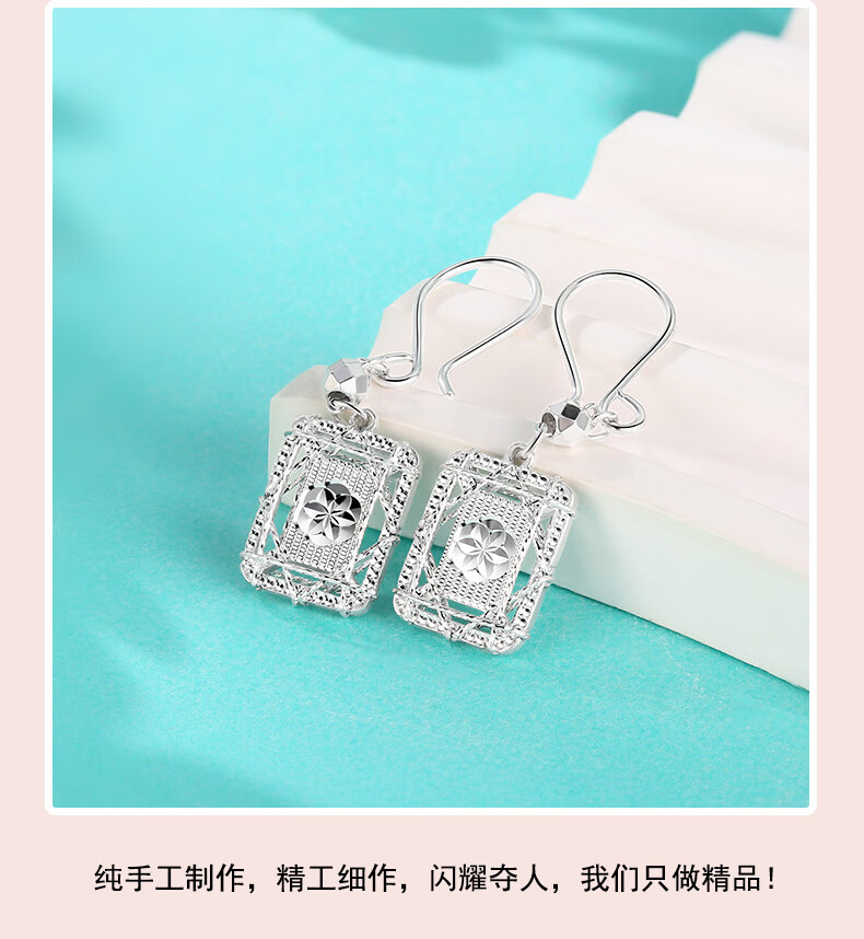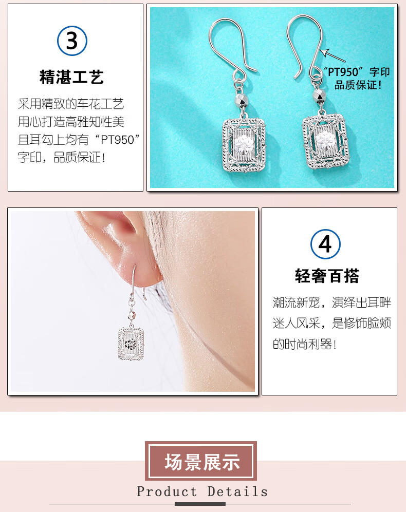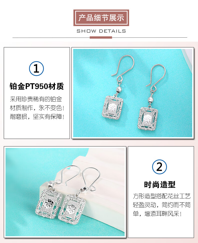 Yuan Shengfu's new PT950 fashionable square filigree platinum ear hooks platinum earrings earrings earrings 3.67 g