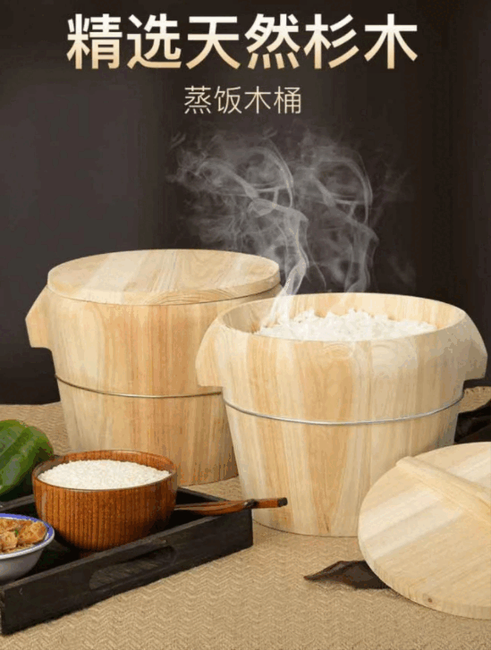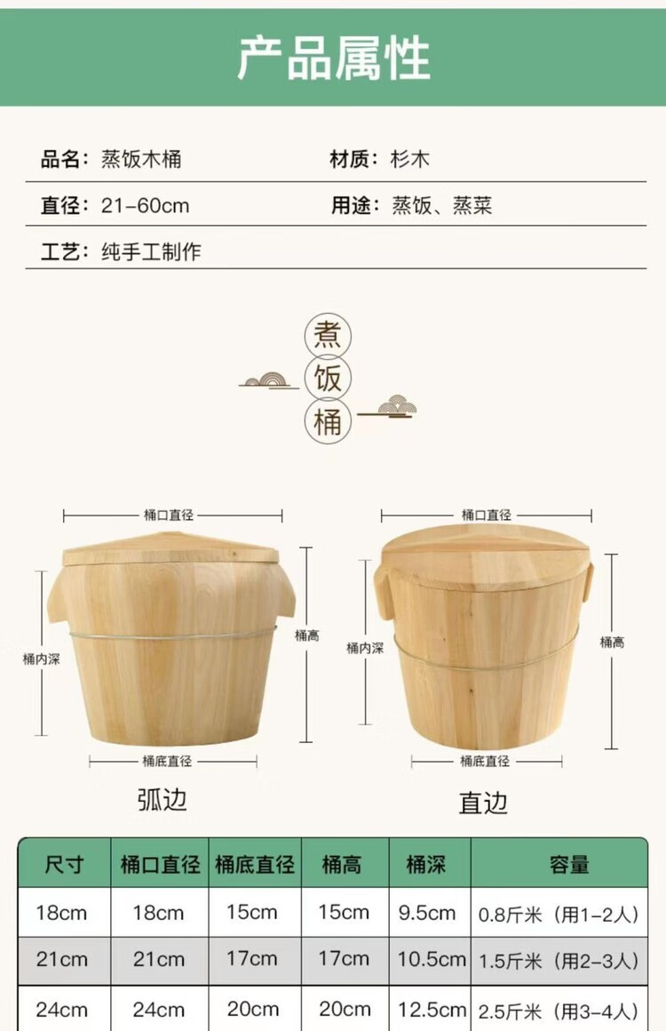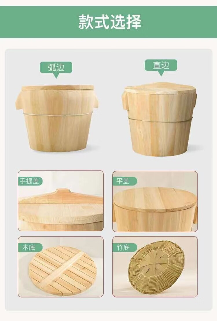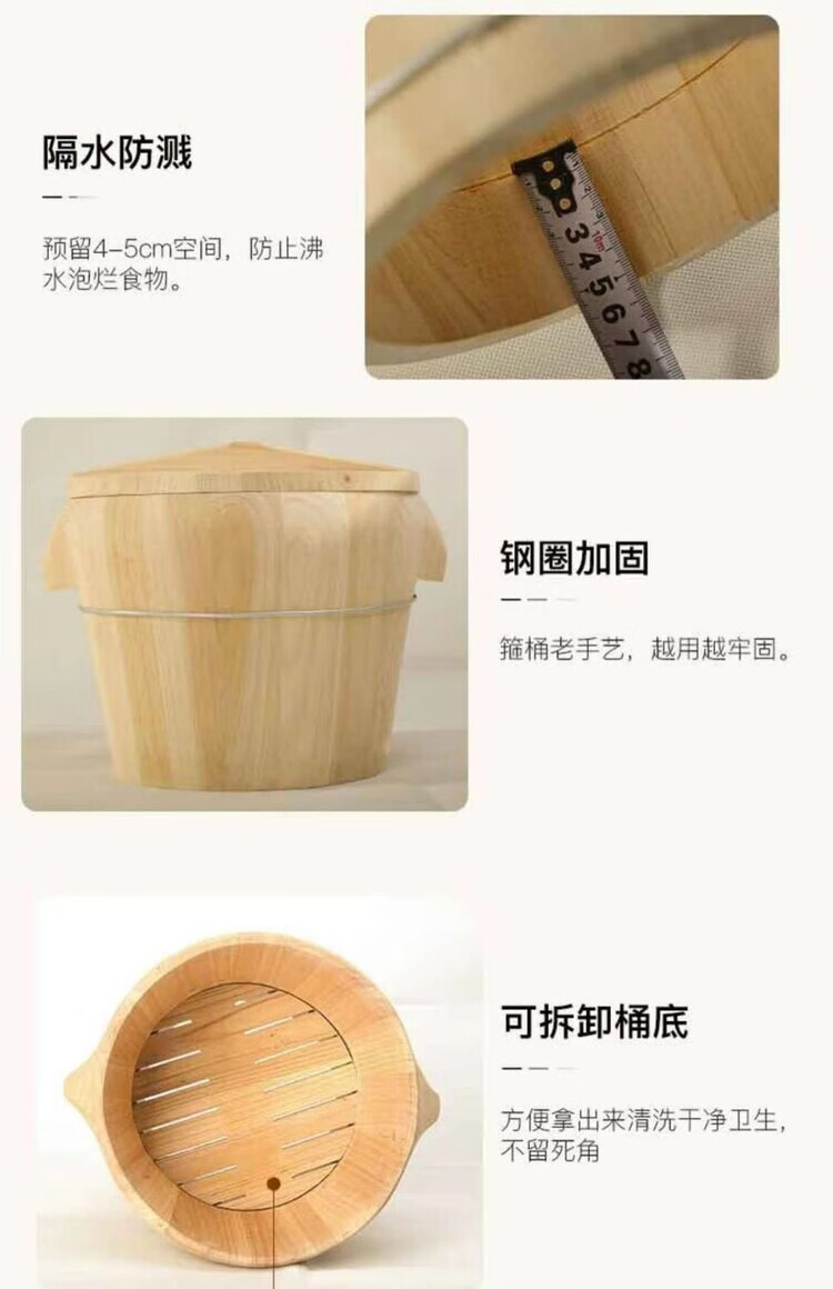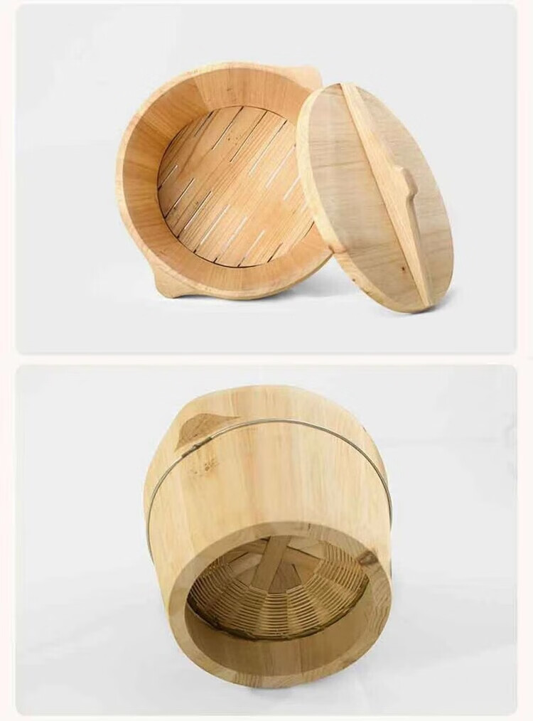 Steamed rice wooden barrel, fir wood steamed rice barrel, kitchen large and small rice steaming artifact, household commercial steamer, handmade, low sugar, 24cm wooden bottom with lid, steamed about 2.5Jin, Jin is equal to 0.5kg of rice