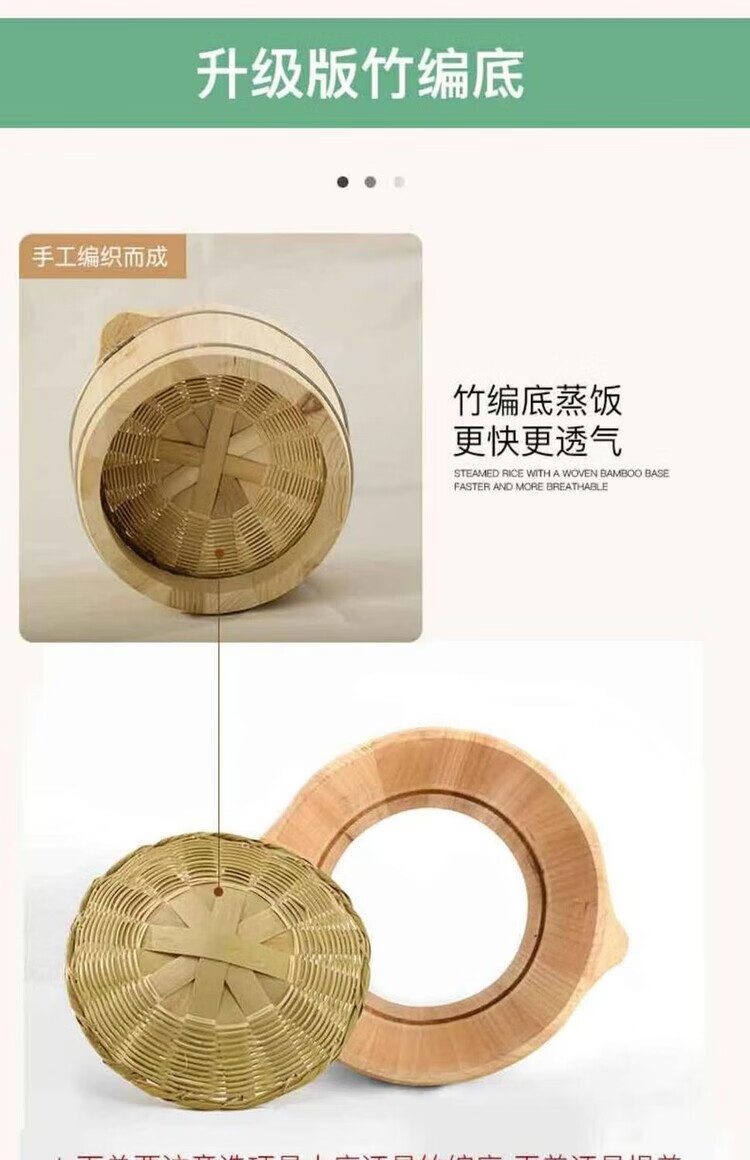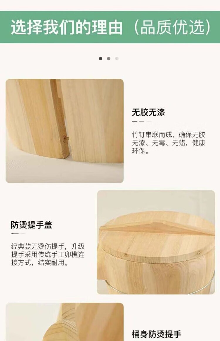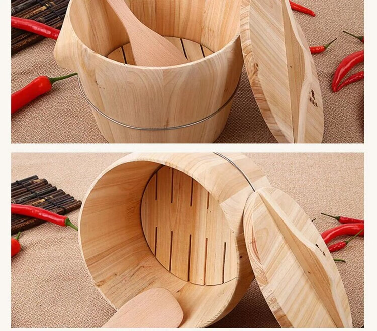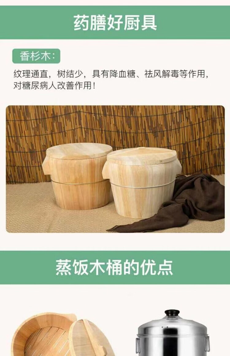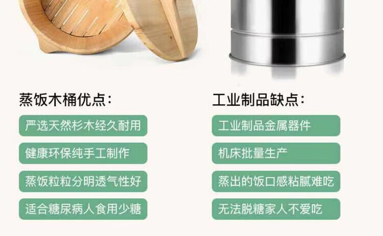 Steamed rice wooden barrel, fir wood steamed rice barrel, kitchen large and small rice steaming artifact, household commercial steamer, handmade, low sugar, 24cm wooden bottom with lid, steamed about 2.5Jin, Jin is equal to 0.5kg of rice