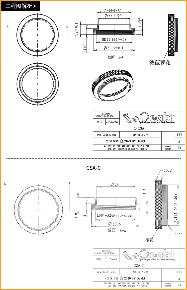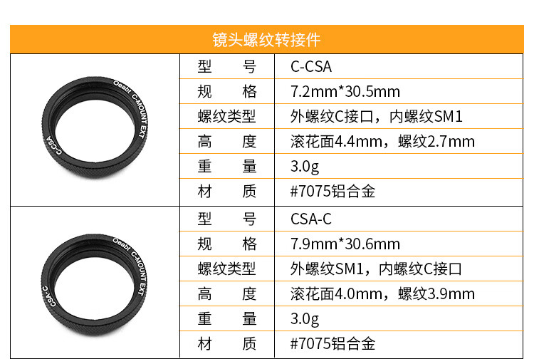 C-CSA C-mount adapter CCD camera lens adapter SM1 threaded adapter sleeve 1-inch base optical C-CSA
