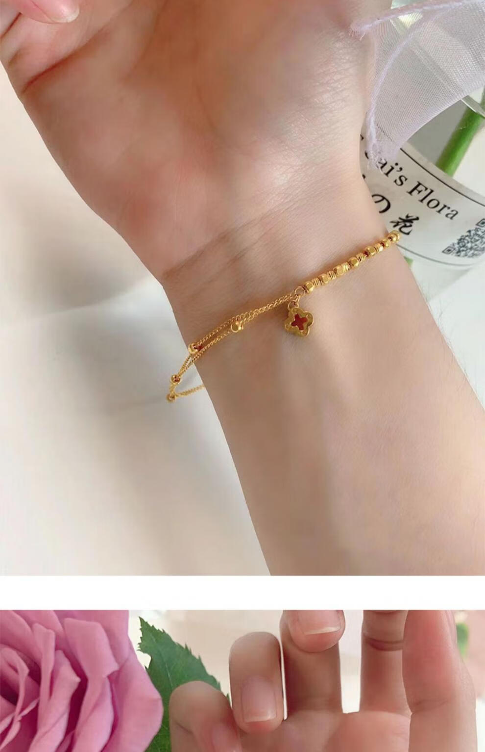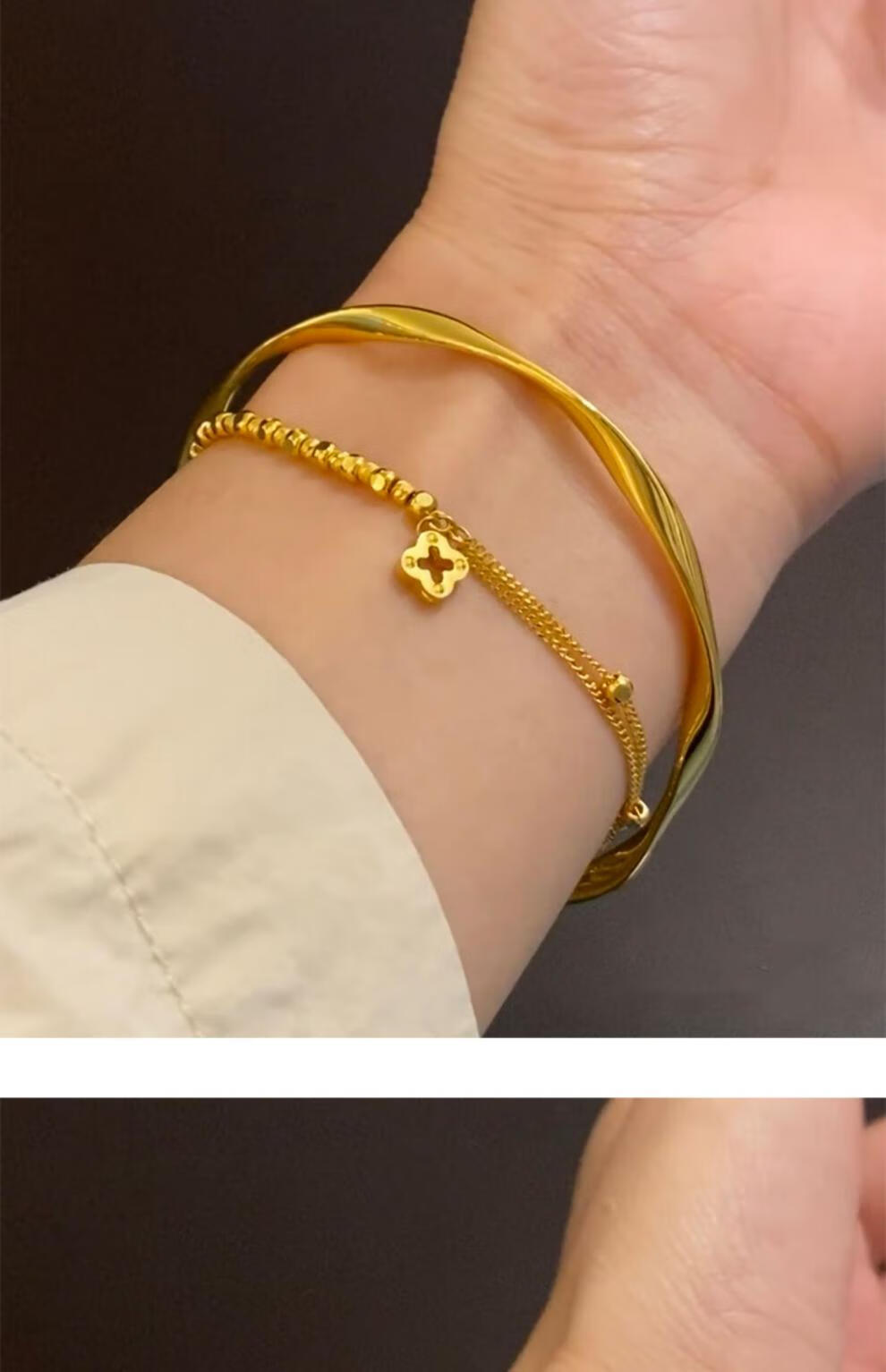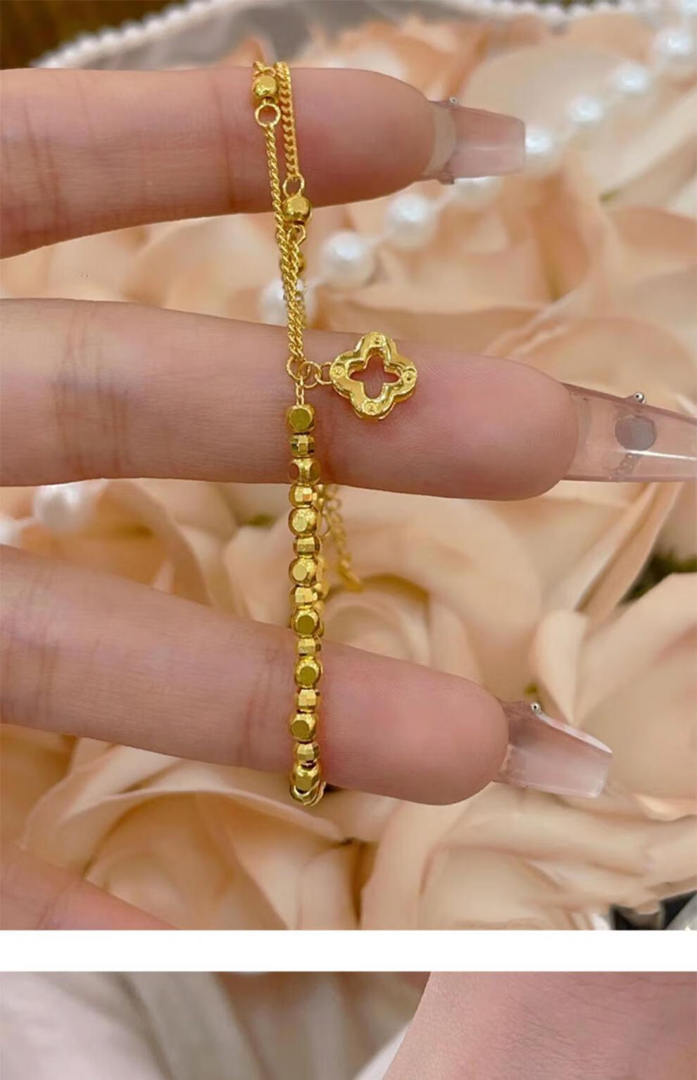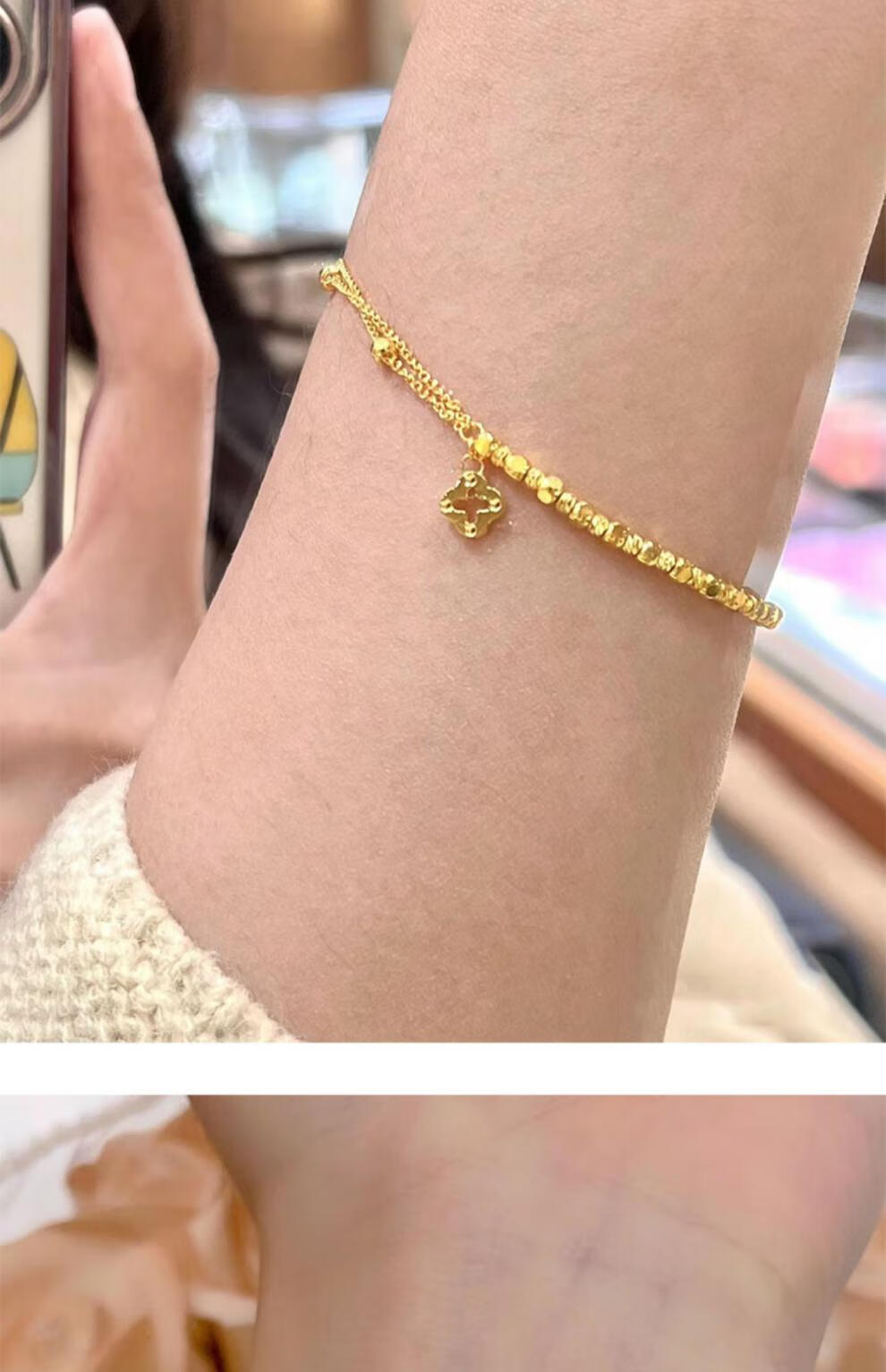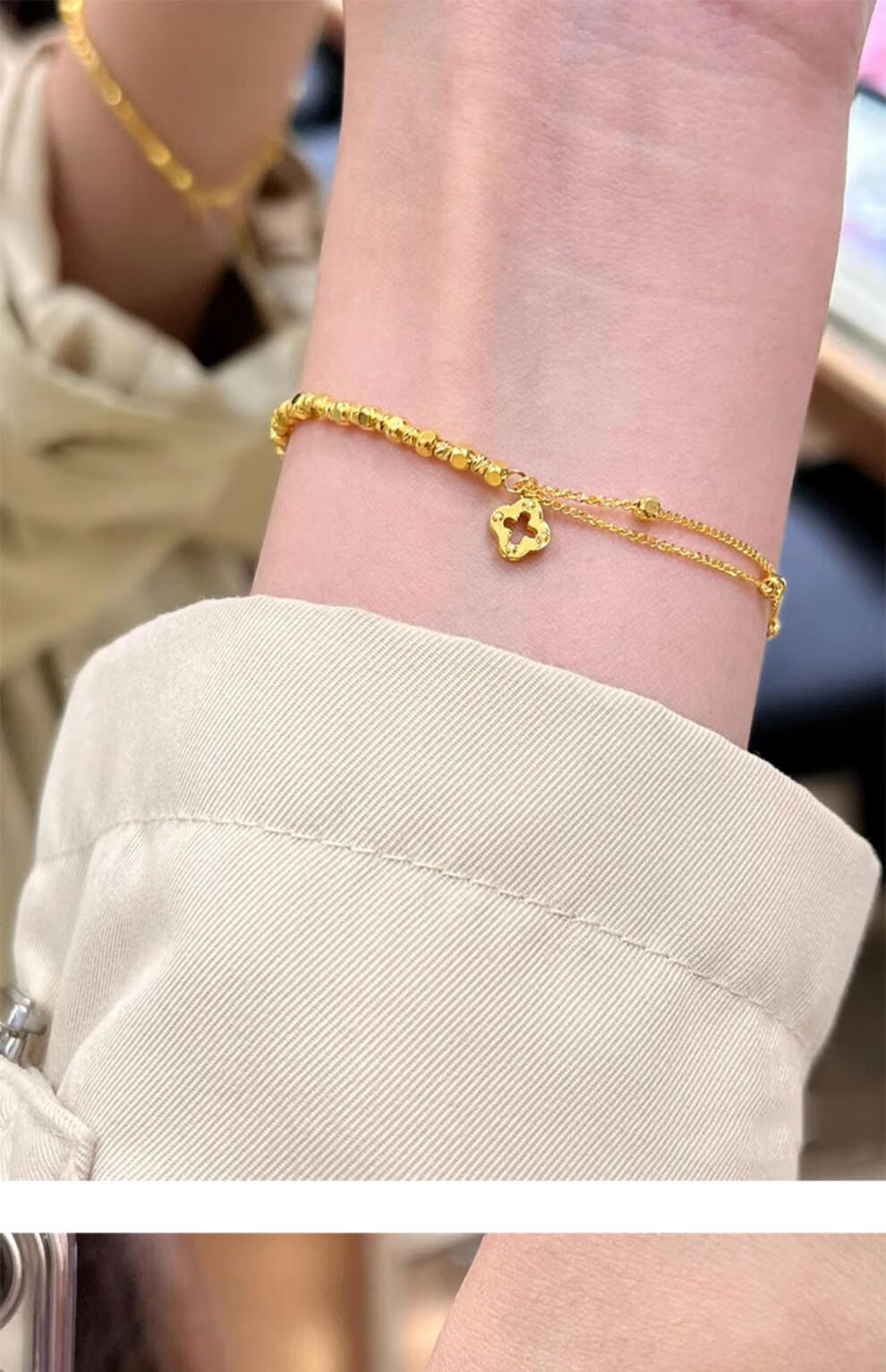 Fat Donglai's same style 18K gold crushed ice bracelet four-leaf clover bounce bracelet does not fade double layer exquisite crushed gold four-leaf clover bounce bracelet