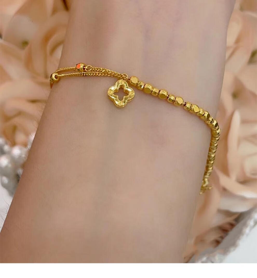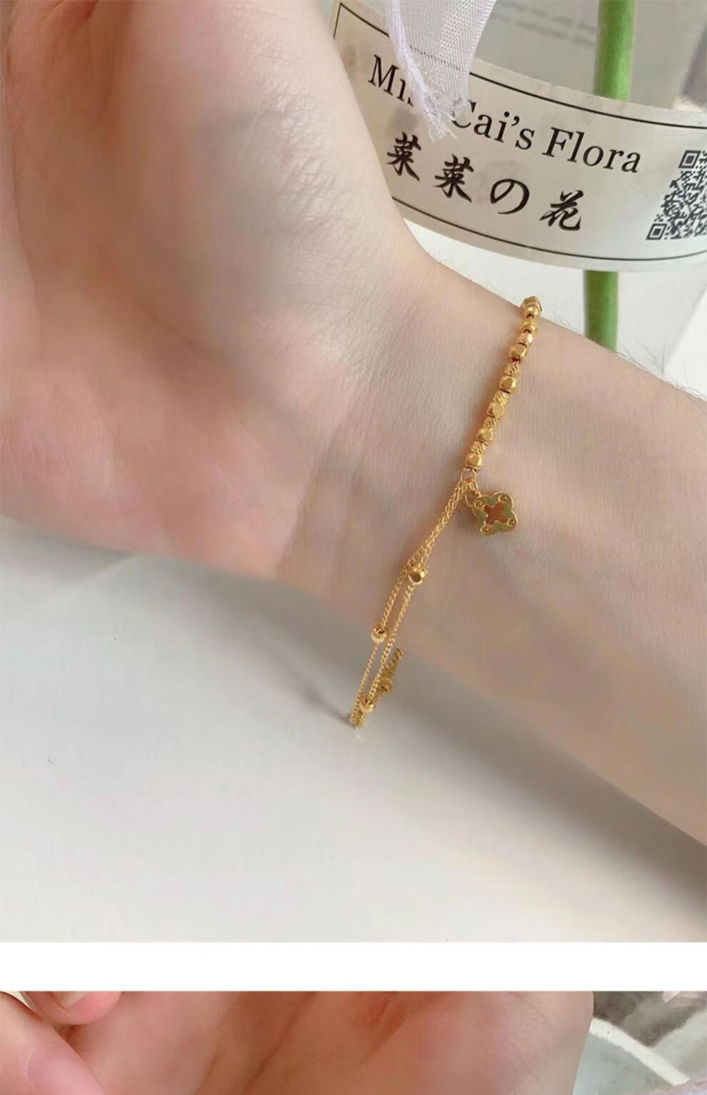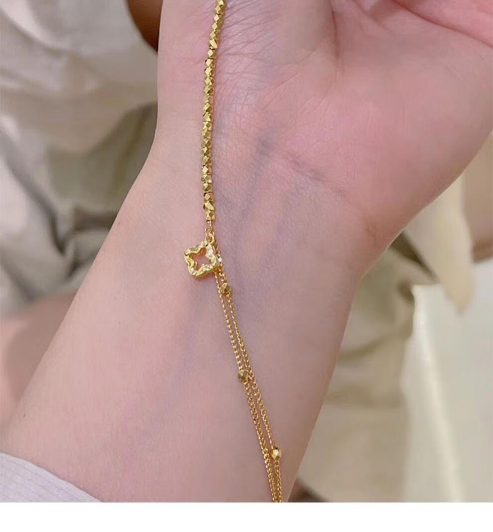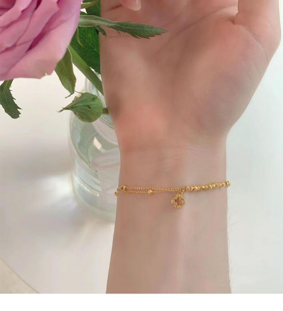 Fat Donglai's same style 18K gold crushed ice bracelet four-leaf clover bounce bracelet does not fade double layer exquisite crushed gold four-leaf clover bounce bracelet