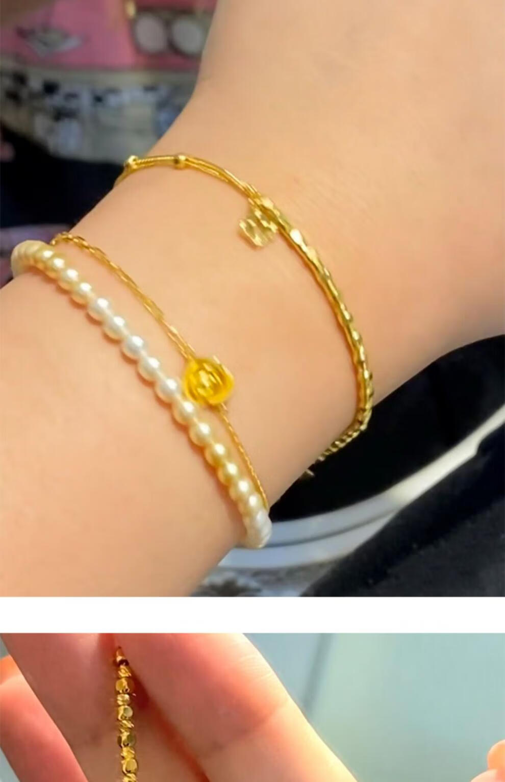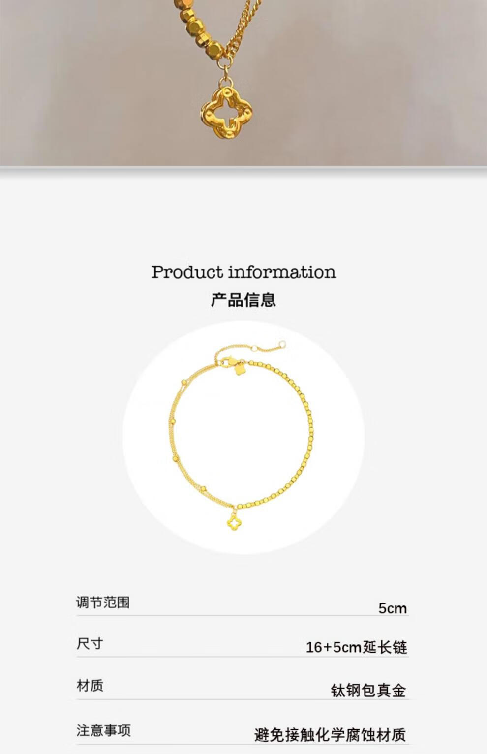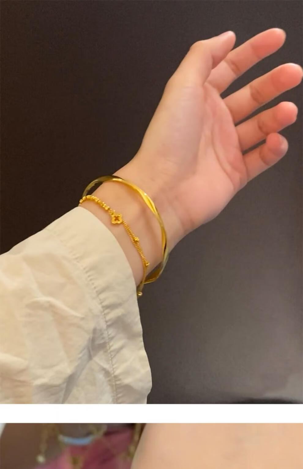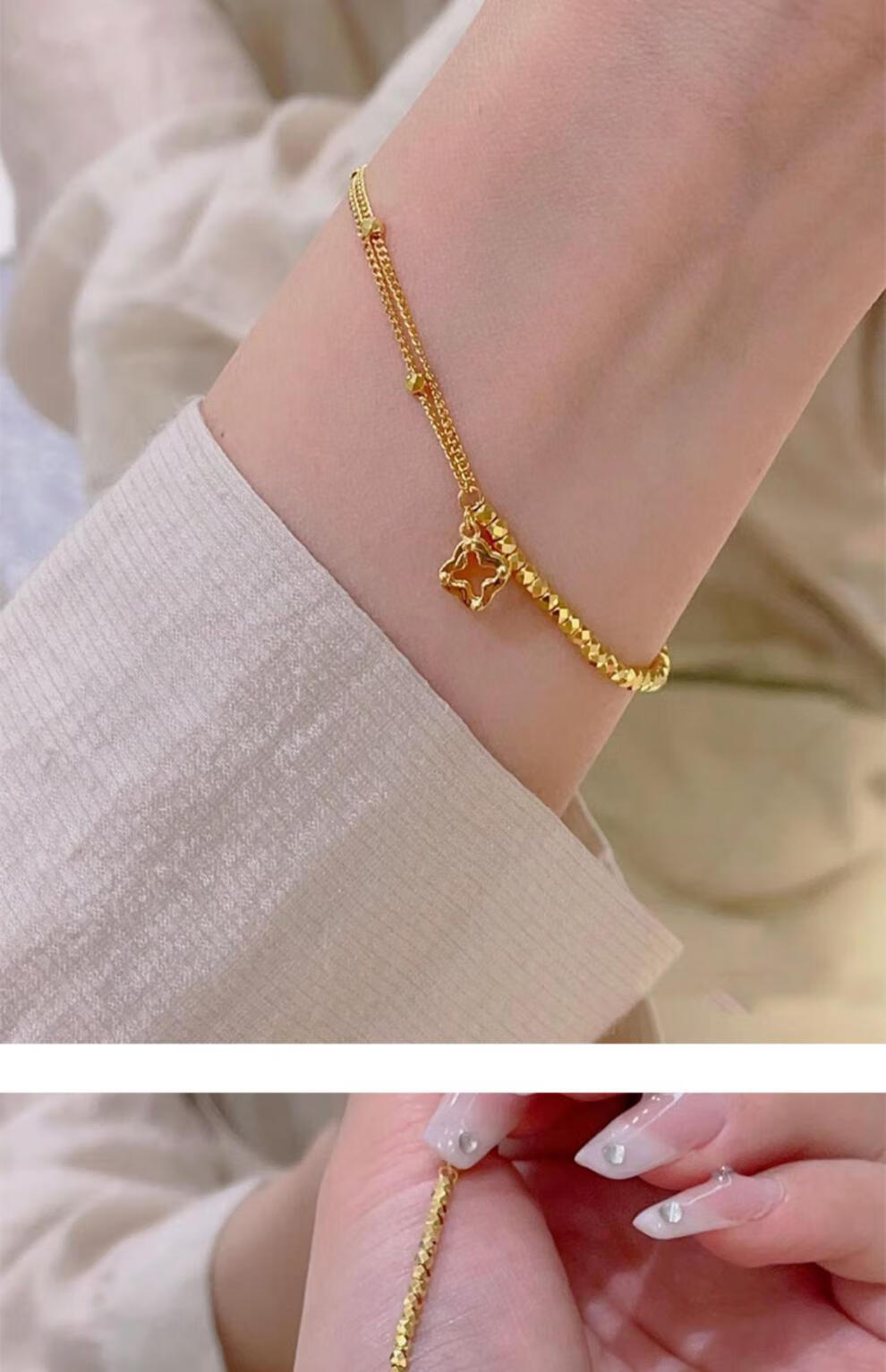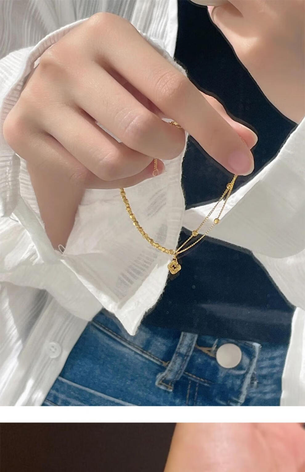 Fat Donglai's same style 18K gold crushed ice bracelet four-leaf clover bounce bracelet does not fade double layer exquisite crushed gold four-leaf clover bounce bracelet