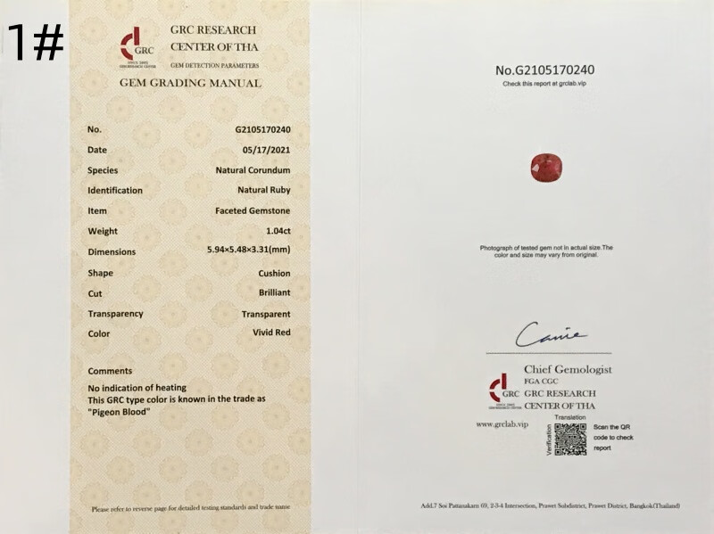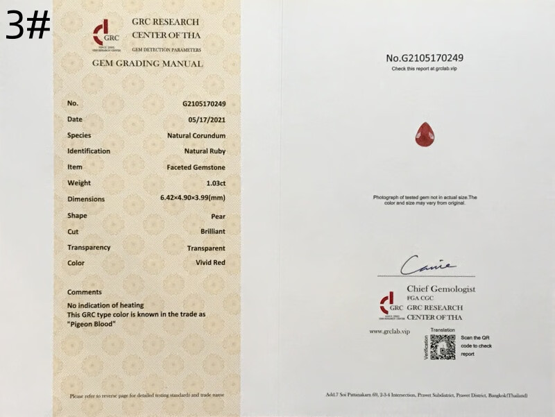 Blue Xianghe 3 unburned pigeon blood red ruby ring face loose stone international certificate inlaid 18K gold ring pendant earrings bracelet 1.31 carats 16#