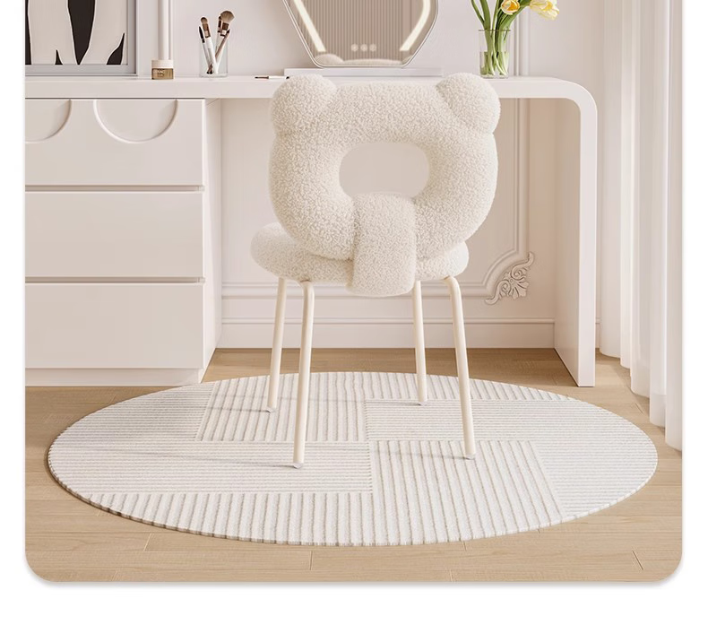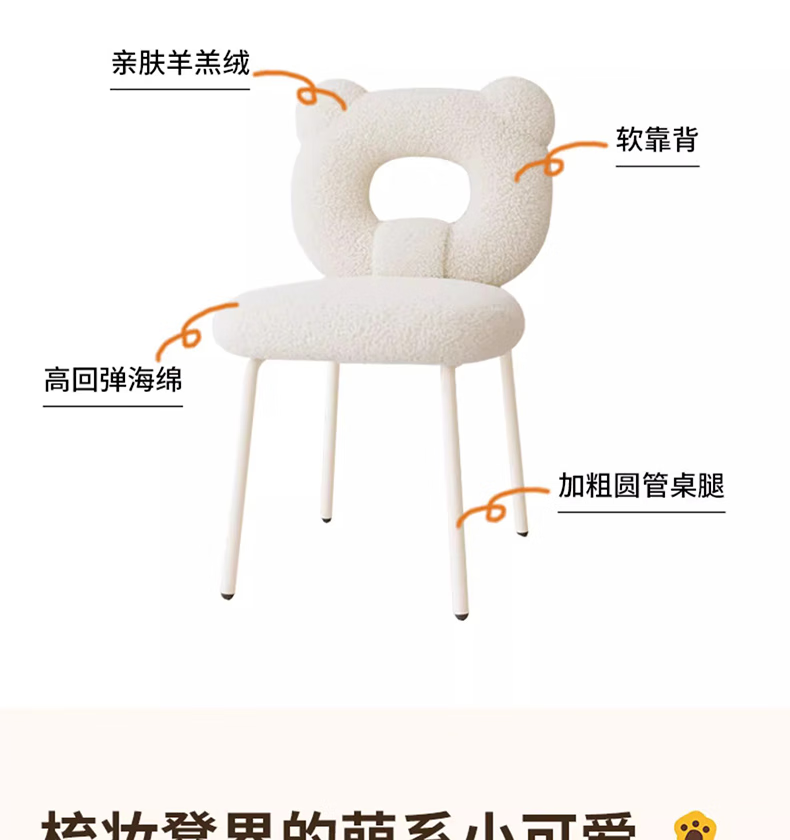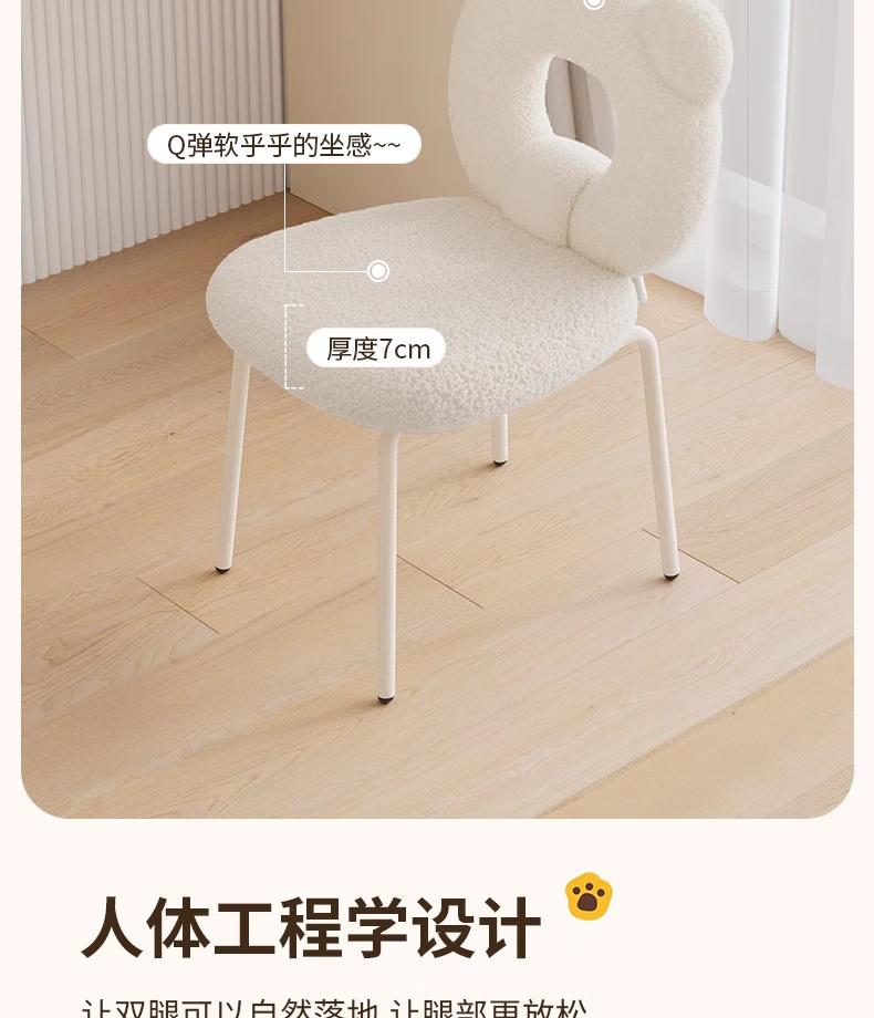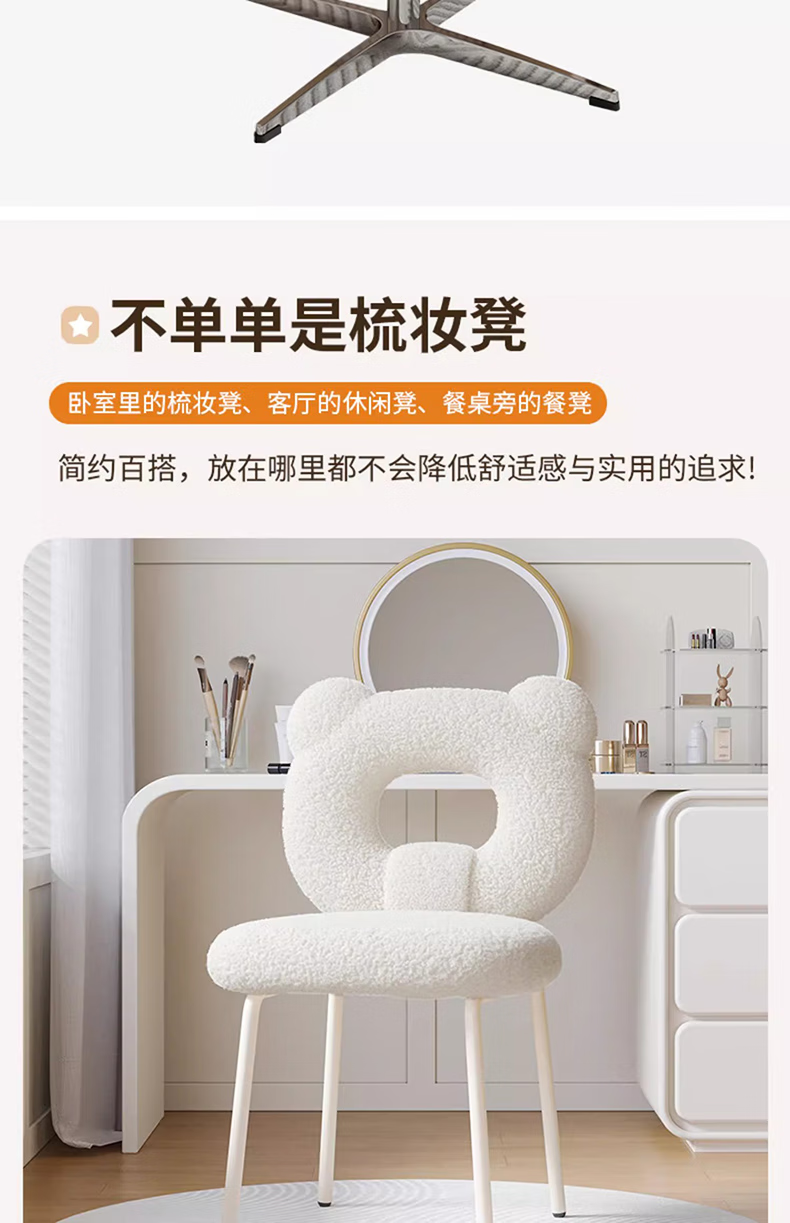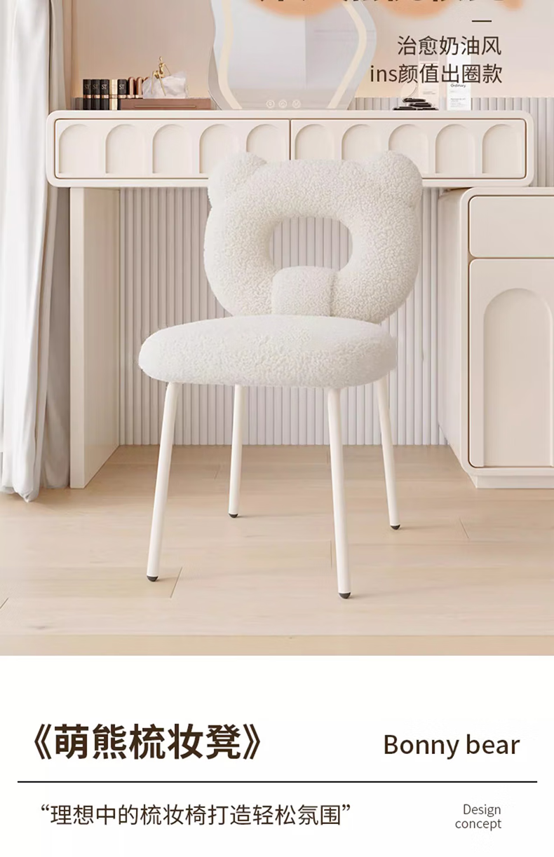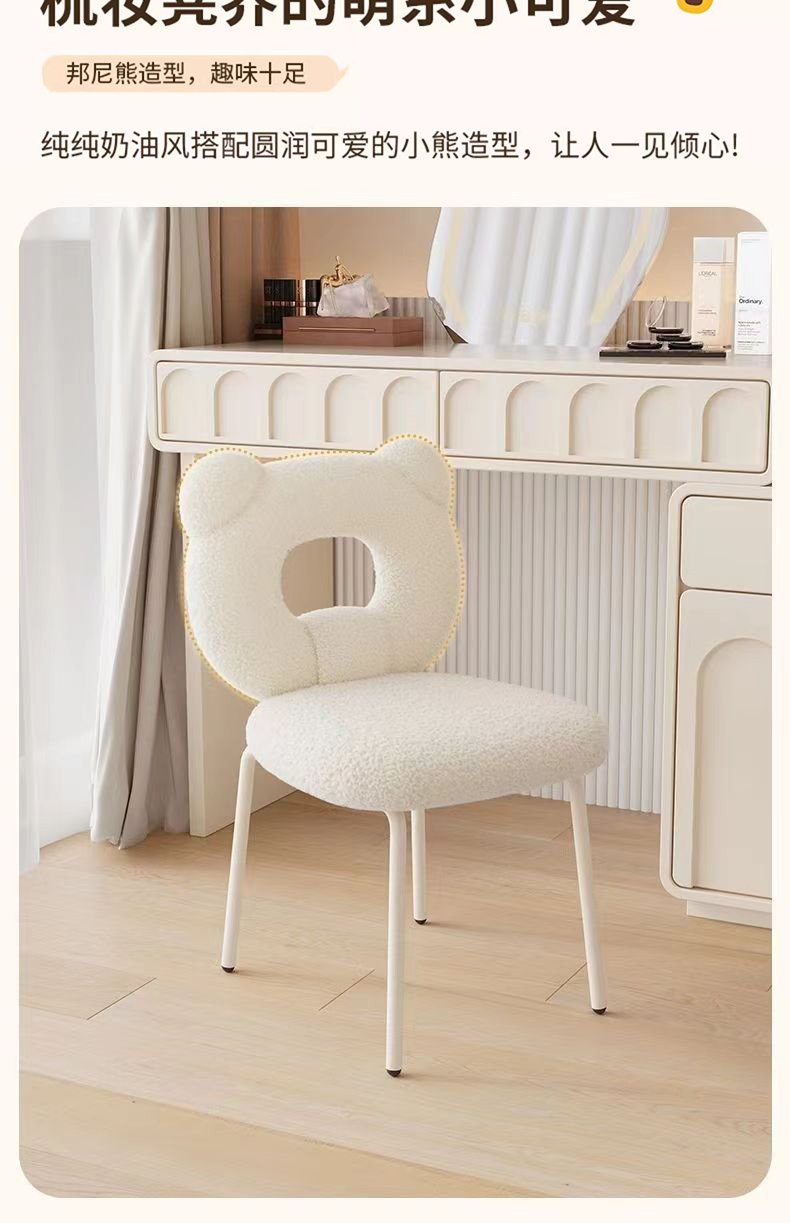 Guda makeup stool cream style makeup chair bedroom sherpa dressing table stool women's home backrest leisure office chair white sherpa fixed style